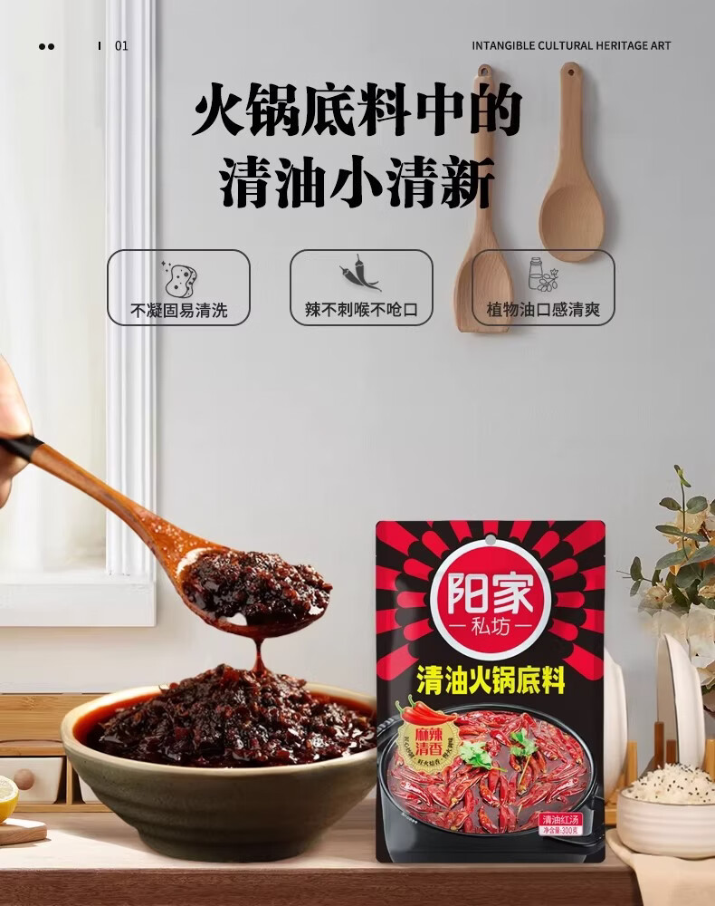 阳家私坊四川特色清油火锅底料家用麻辣香锅料清油商用冒菜麻辣烫小块底料 清油300克*30袋(整箱发) 麻辣清香