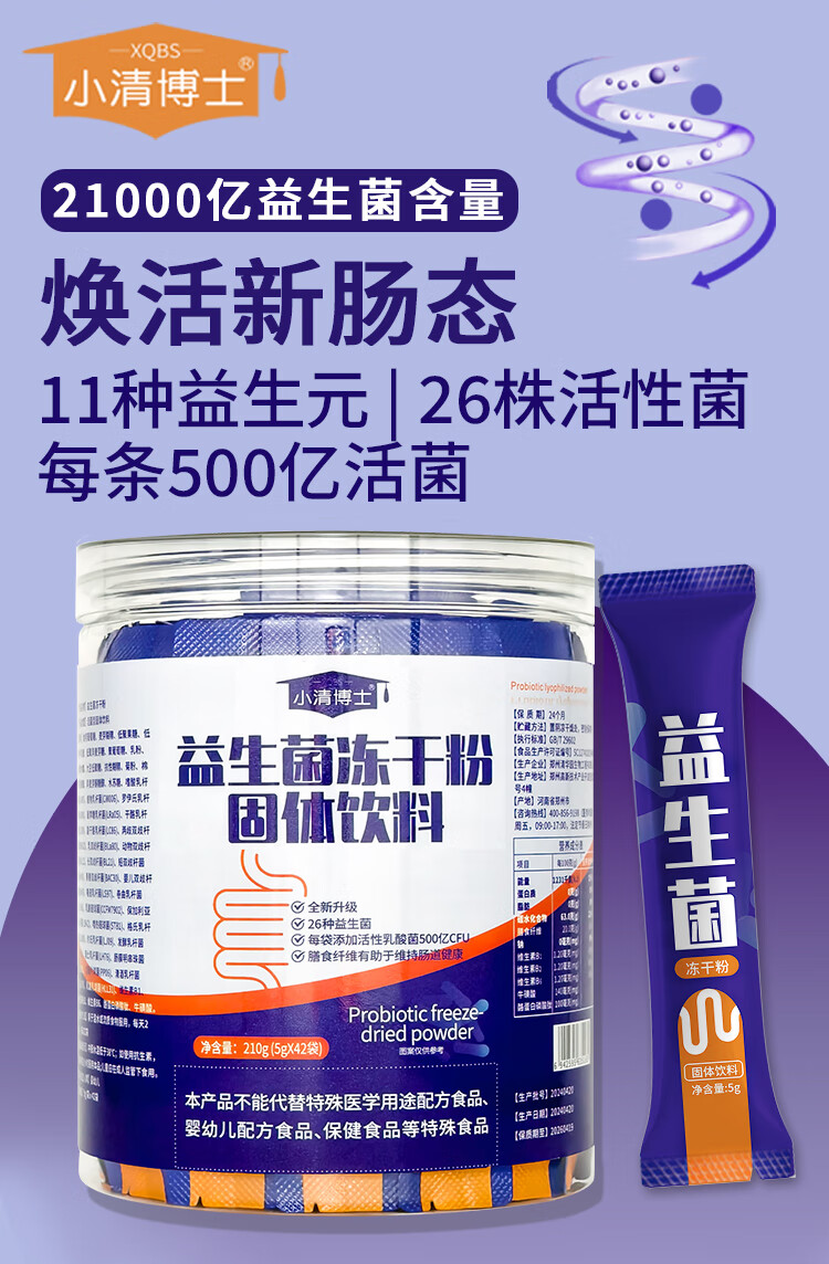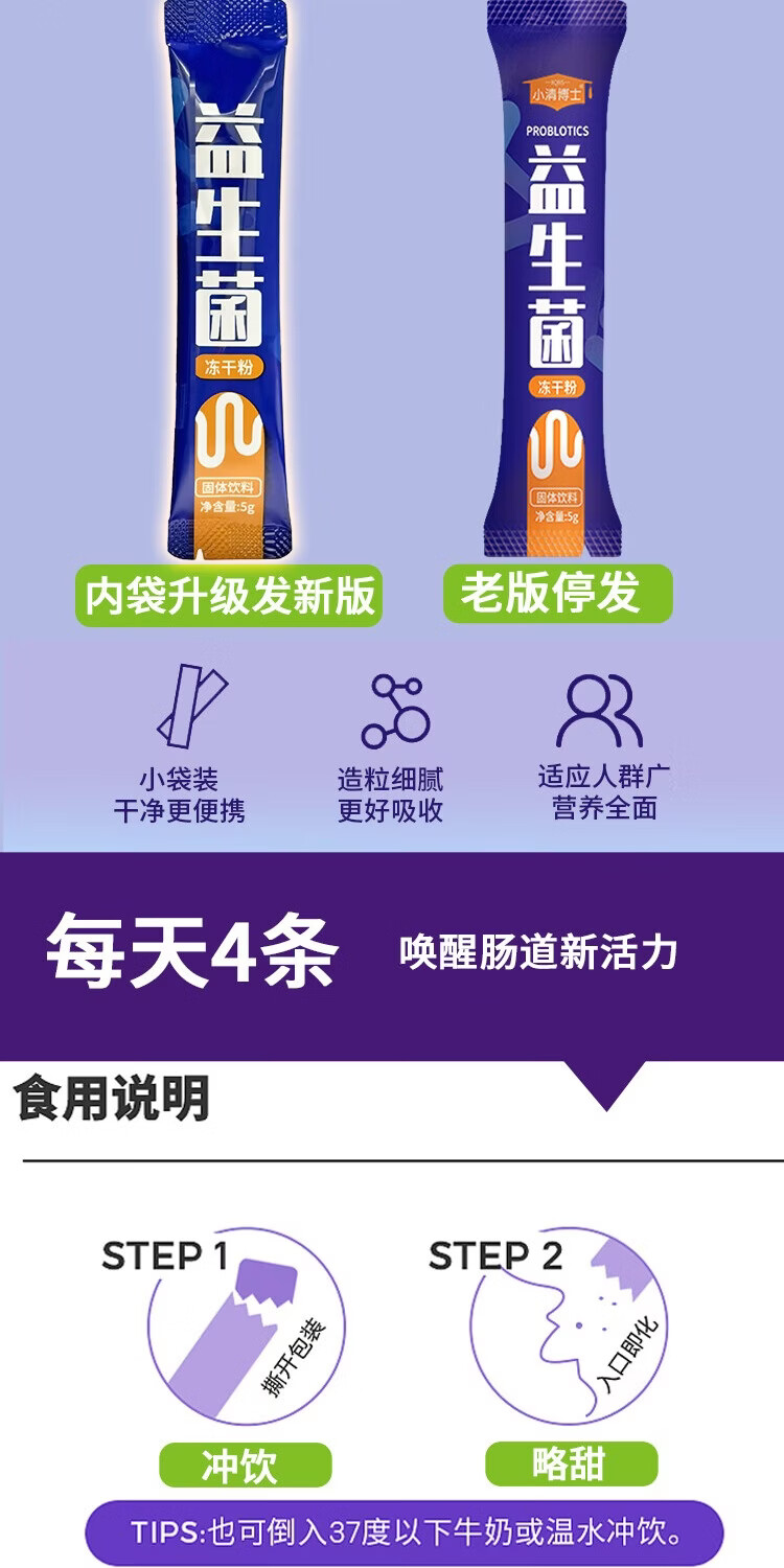 赛济堂84000亿益生菌冻干粉儿童成人女性呵护肠胃道益生元活性菌乳酸菌 出口企业生产-活性益生菌粉 5g*1袋 4罐168袋活性益生菌冻干粉
