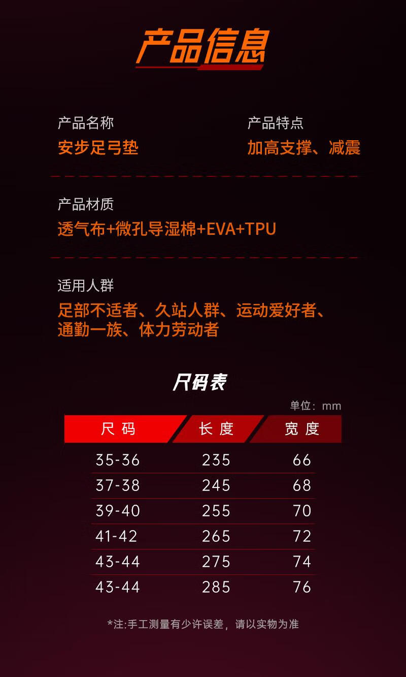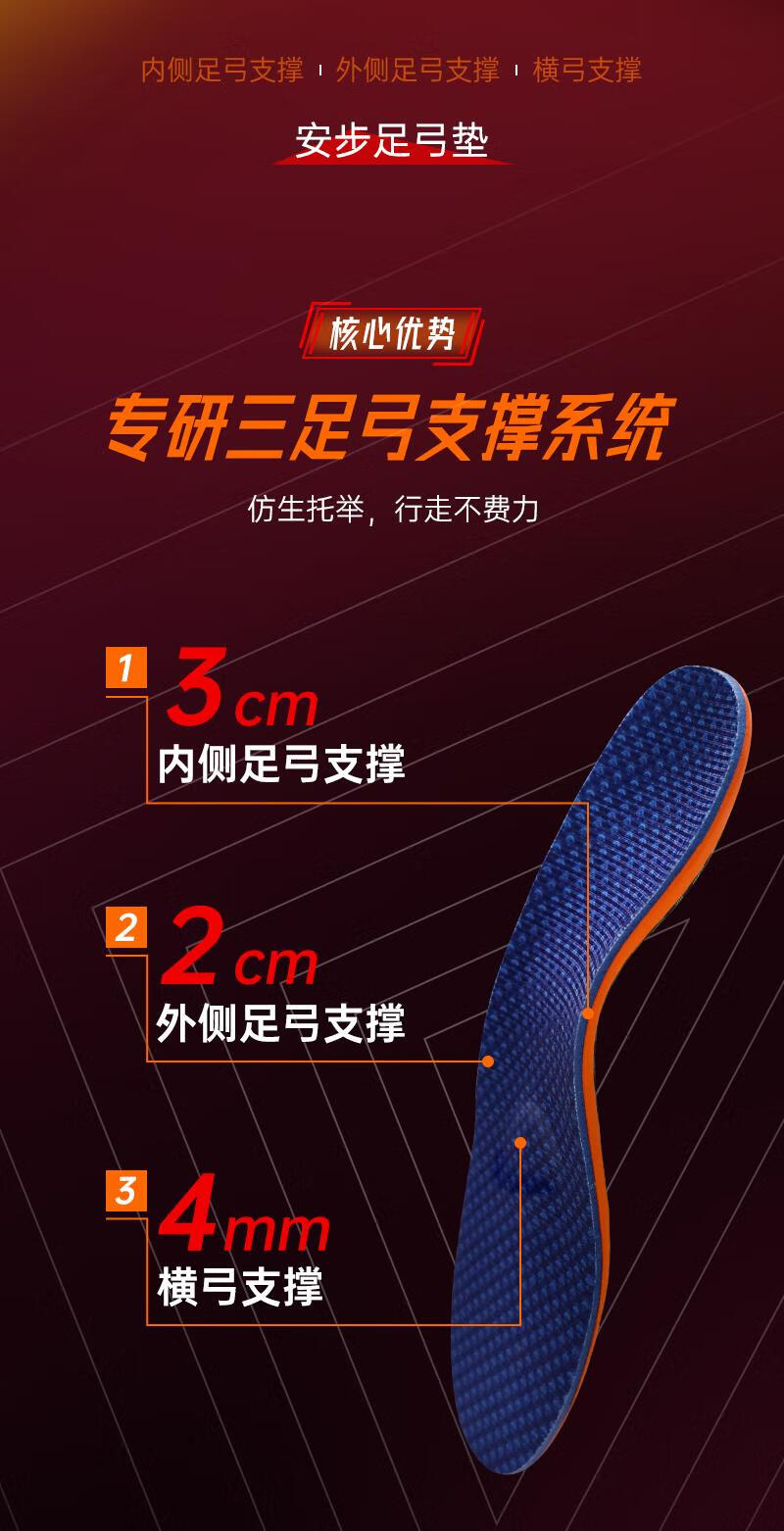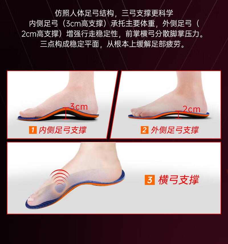 乐善乔安步足弓垫强支撑鞋垫足弓塌陷专用支撑防滑透气扁平足专用鞋垫 【安步足弓垫】蓝色2双 41-42