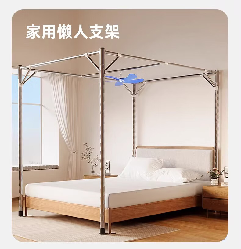 无印良品蚊帐架1.8x2米加粗加厚不锈钢家用老式落地宫廷坐床蚊帐支架全套 【25mm加粗支架整套+钢三通】 120cm*200cm*200cm 适用1.2m床【加粗支架 稳固不晃】