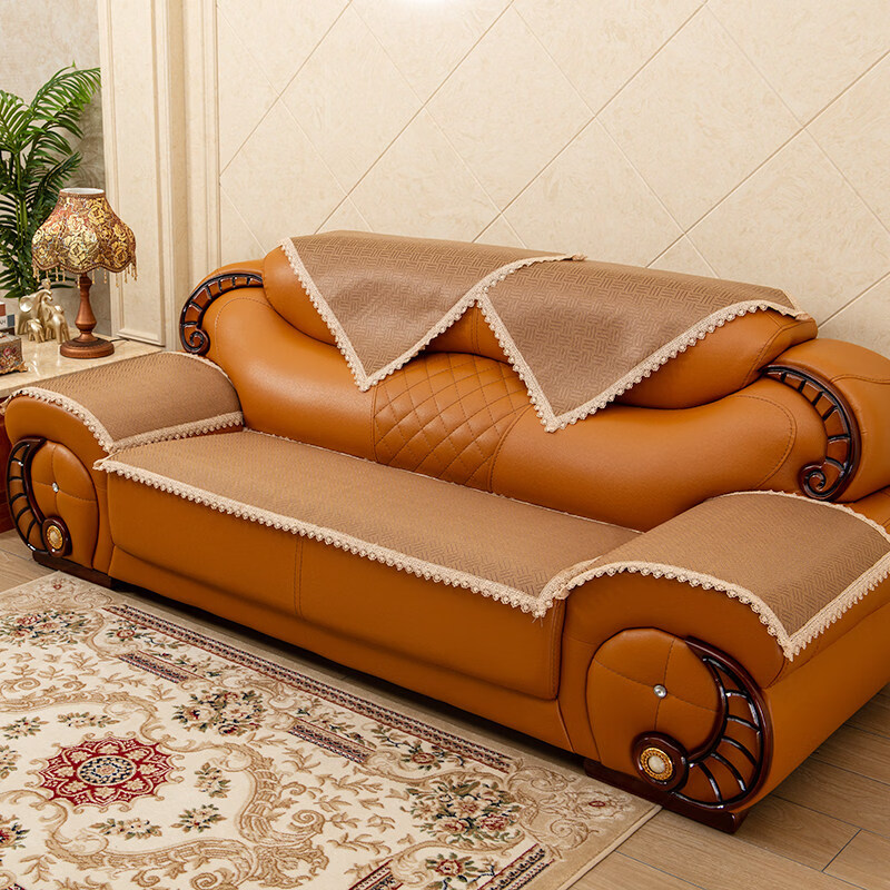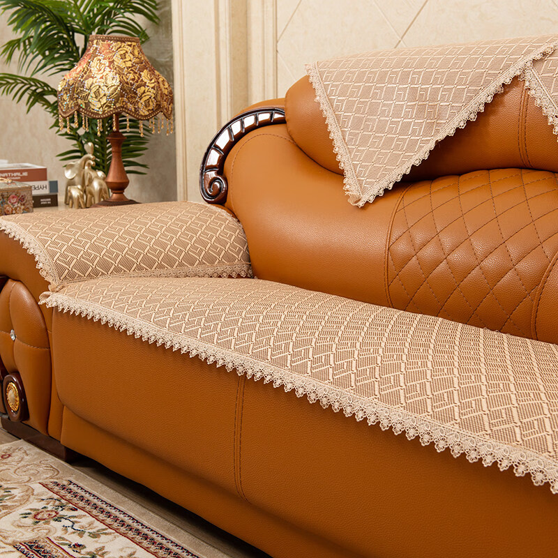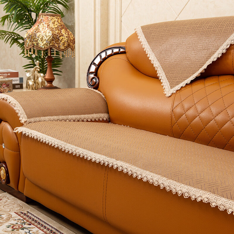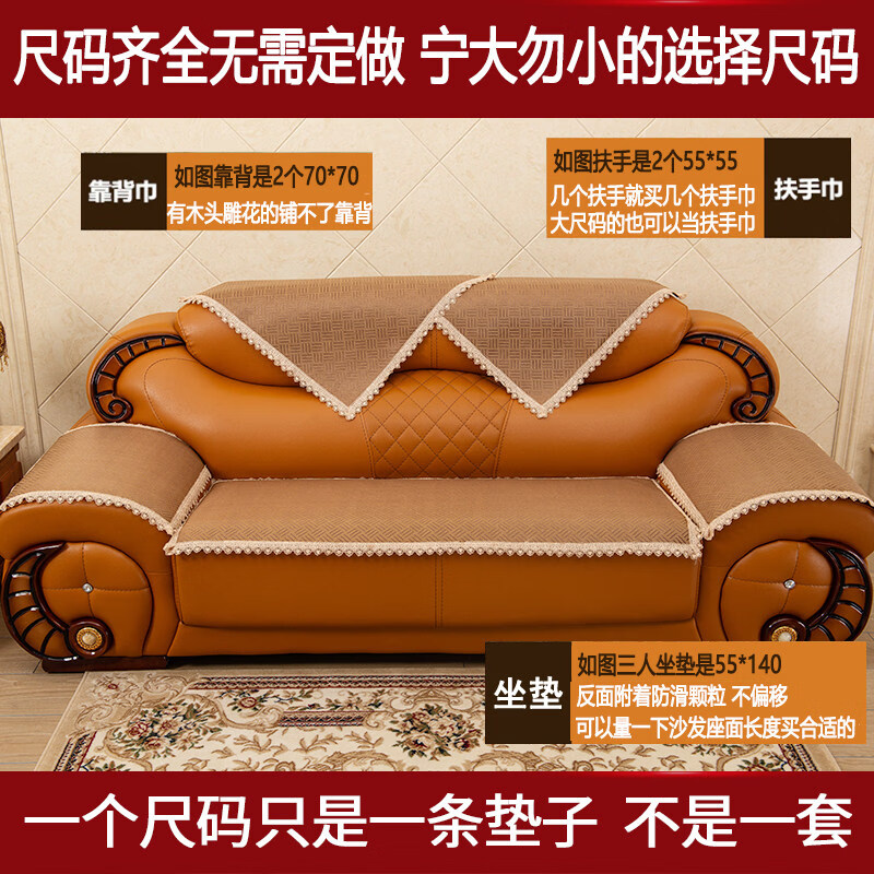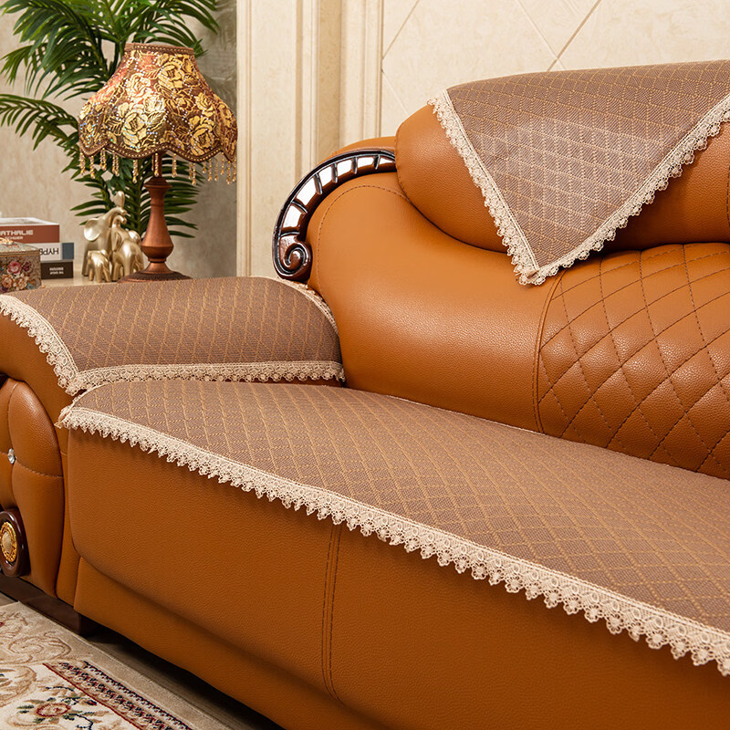 正圣沙发垫四季通用防滑2026年新款冰丝夏季沙发凉席沙发专用坐垫 花边冰咖 50cm*50cm