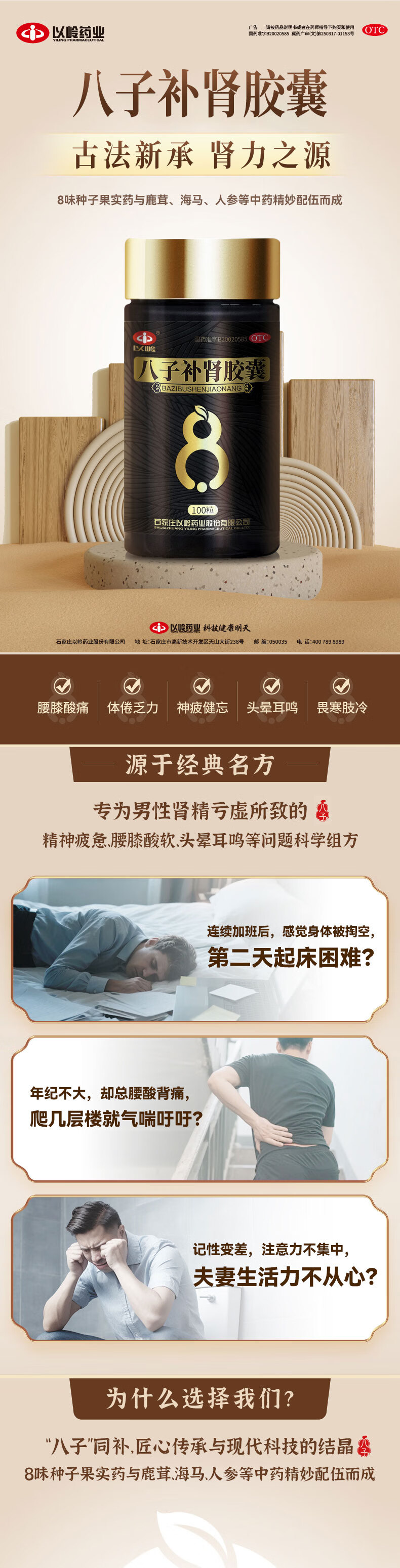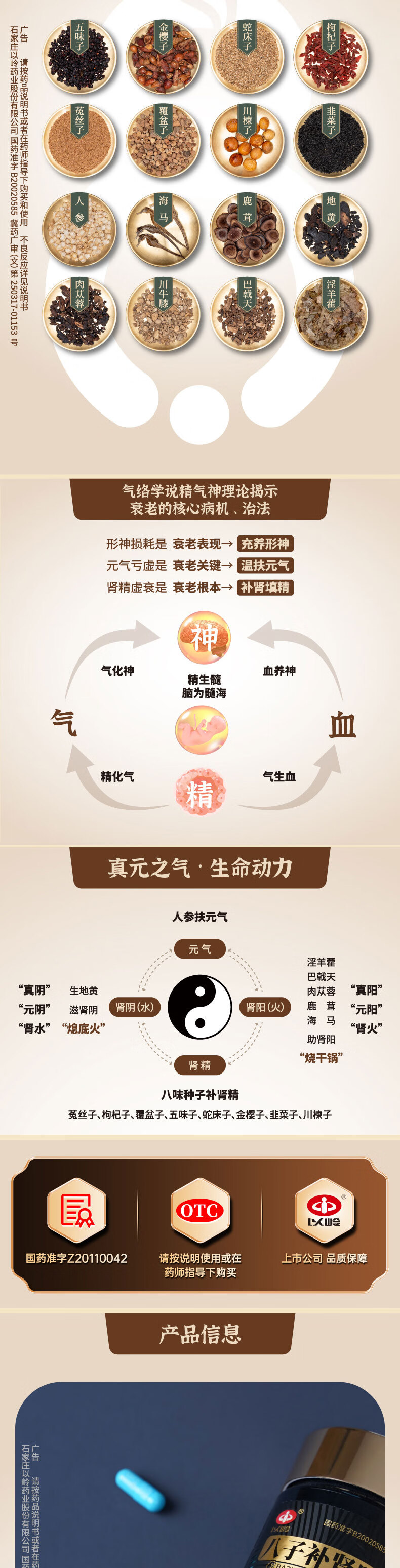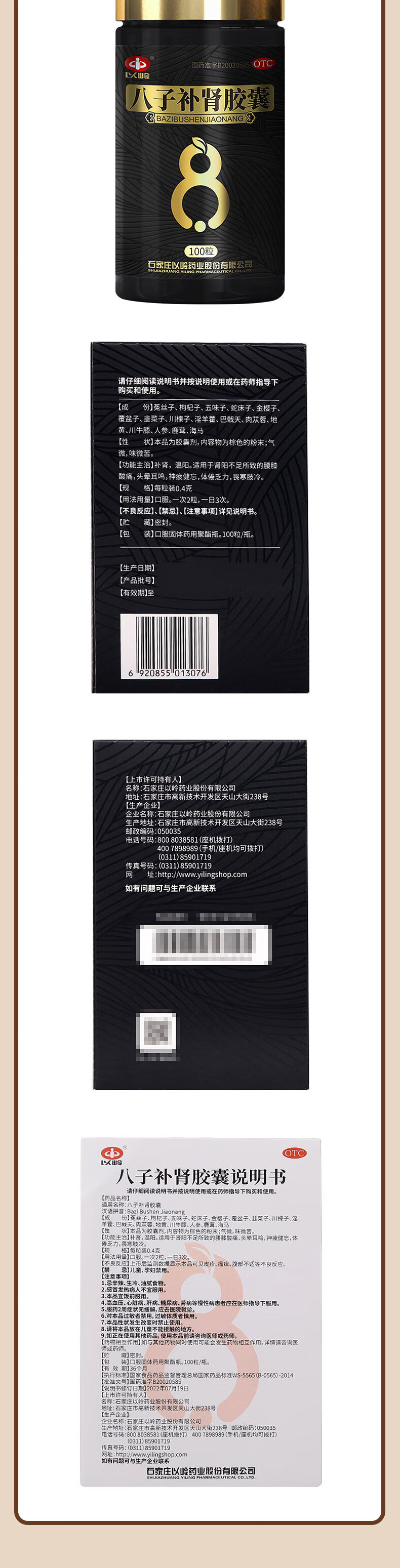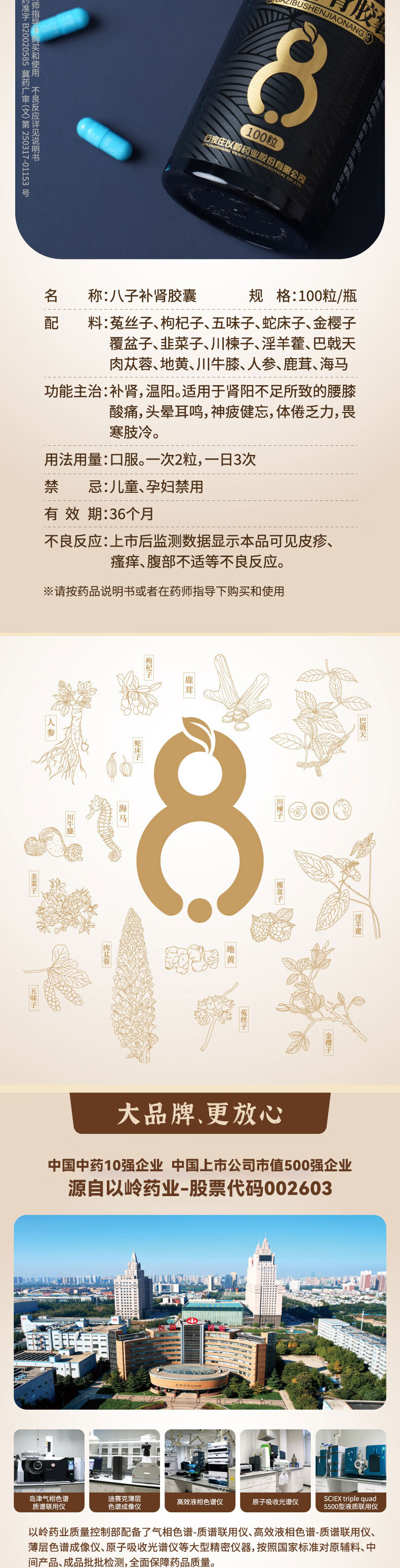 以岭八子补肾胶囊 0.4g*100粒 抗衰老中成药 补肾温阳 头晕腰膝酸软 记忆力减退精神不振 抗老nmn 长寿医学