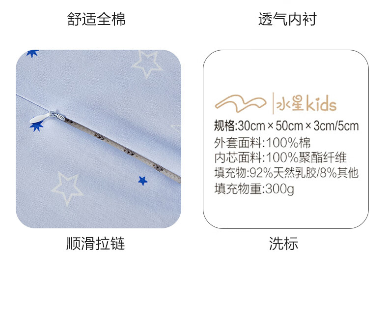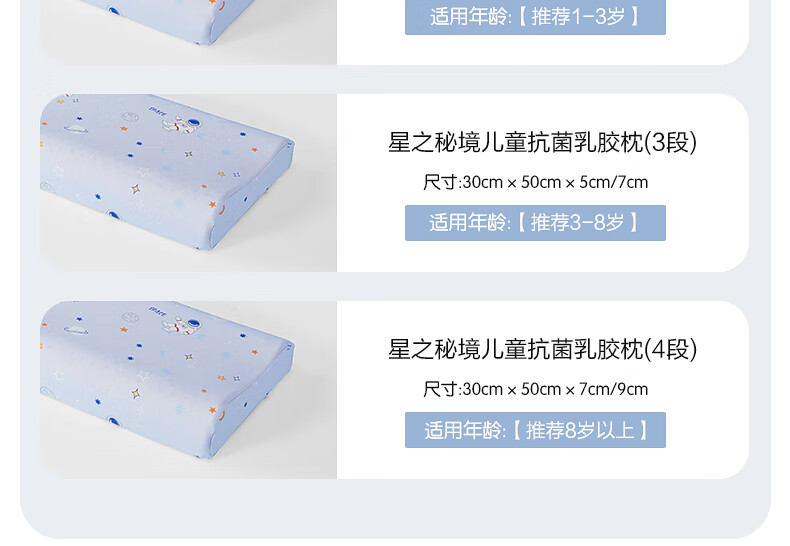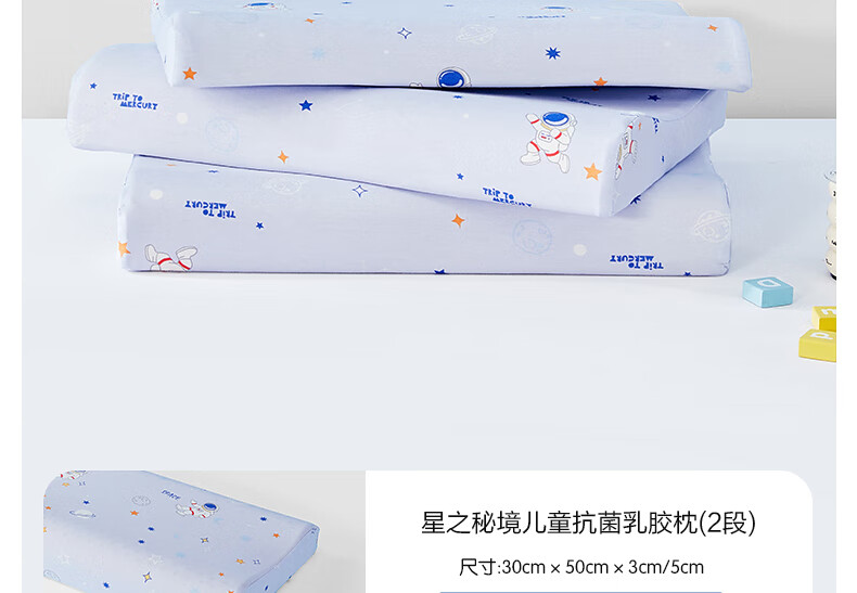 水星儿童(MERCURY Kids)星之秘境儿童抗菌泰国乳胶枕(2段)30cm×50cm×3cm/5cm 婴幼儿A类