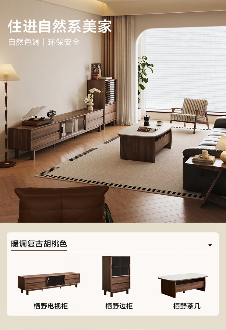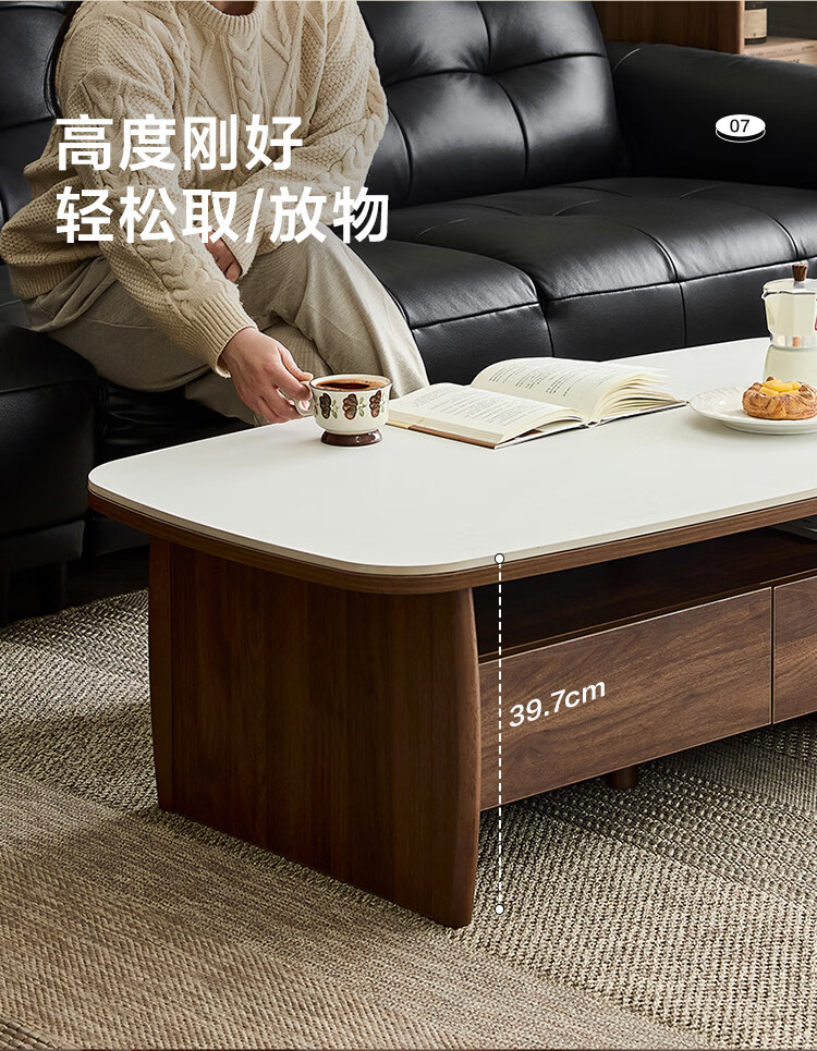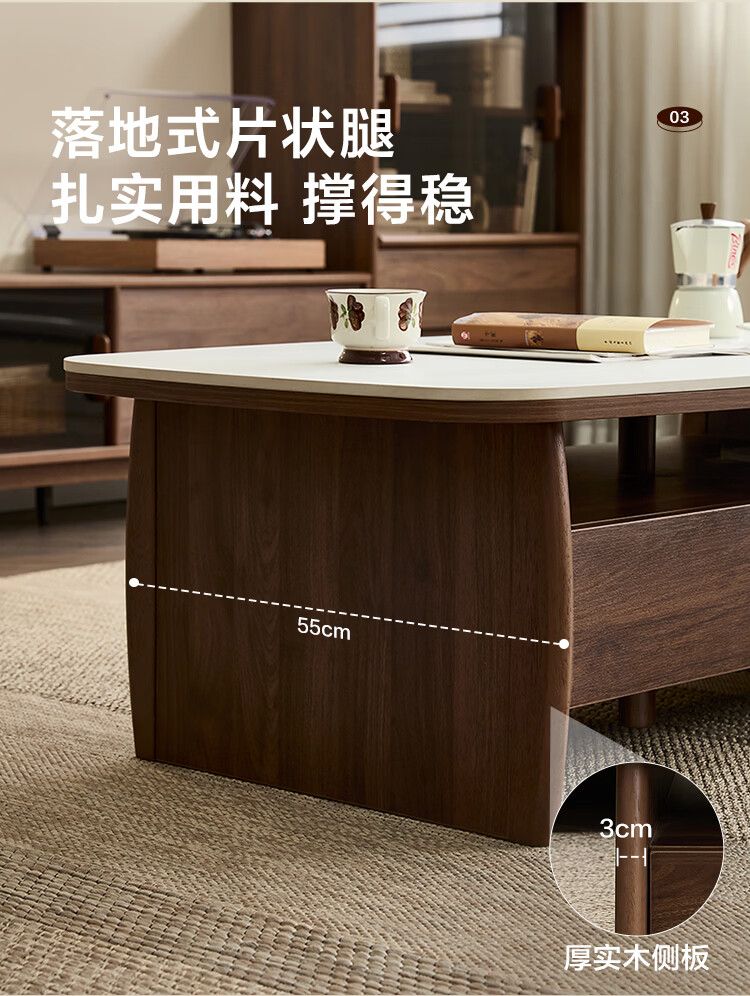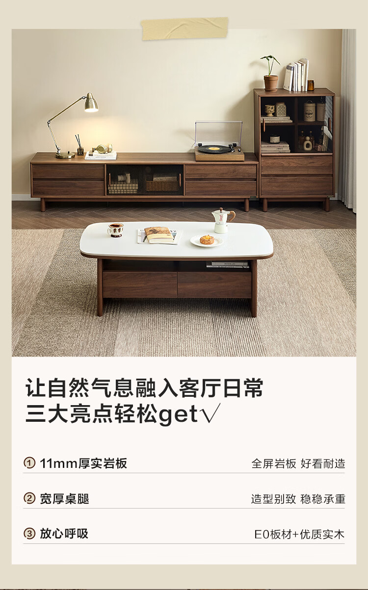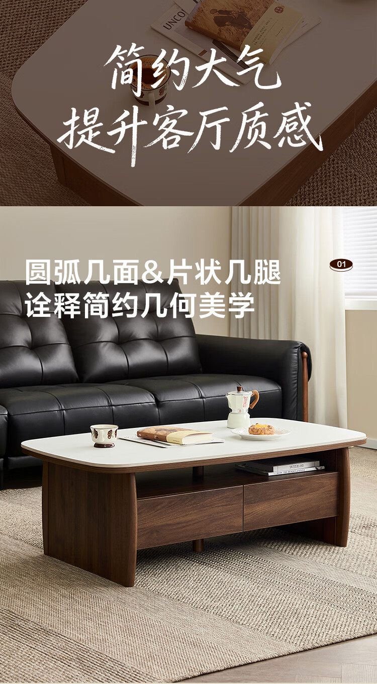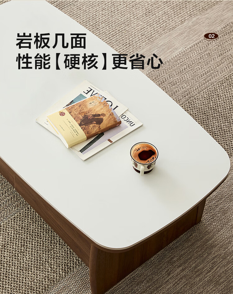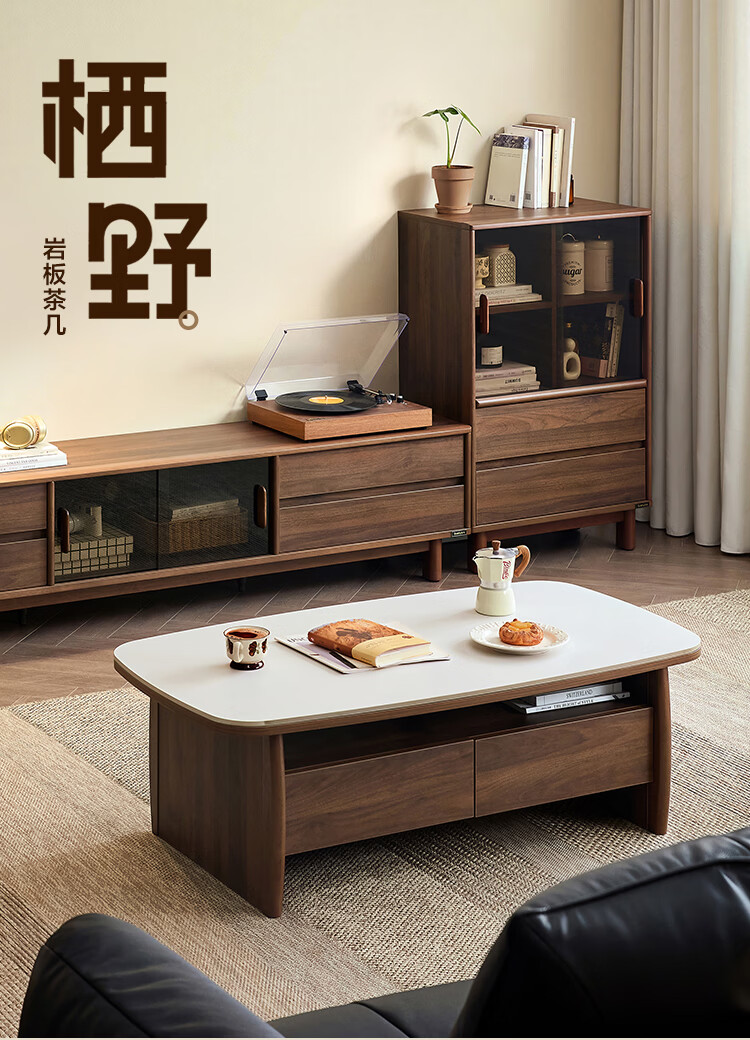 全友家居中古风茶几电视柜客厅轻奢高级感2026新款岩板桌面组合家具 【胡桃色 | 岩板】栖野茶几