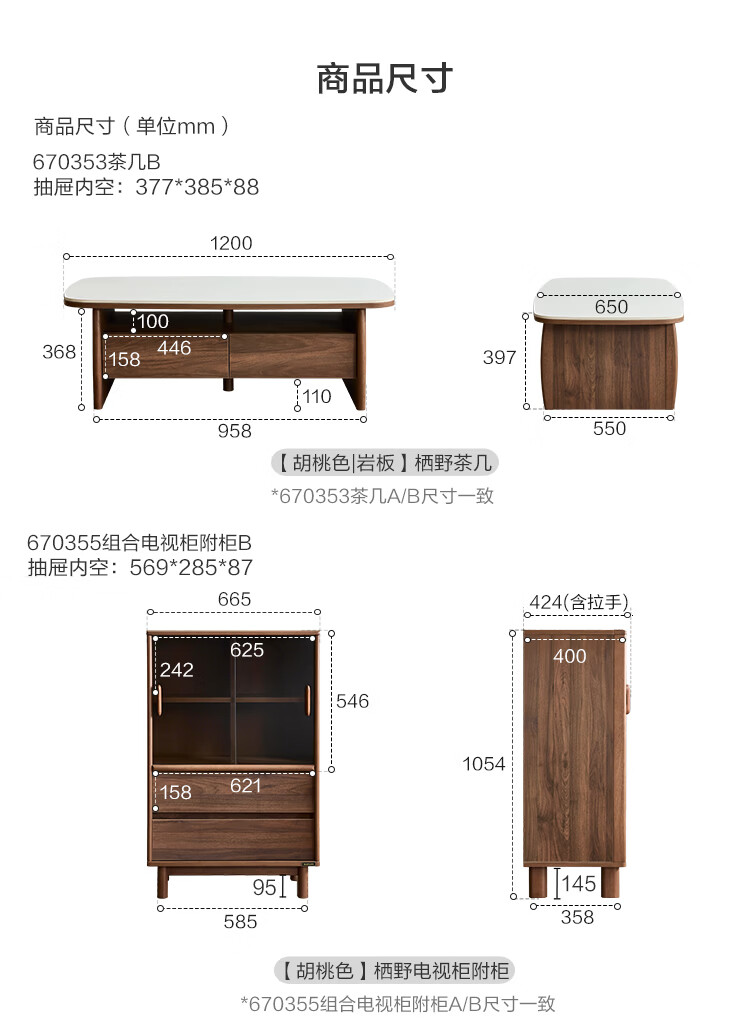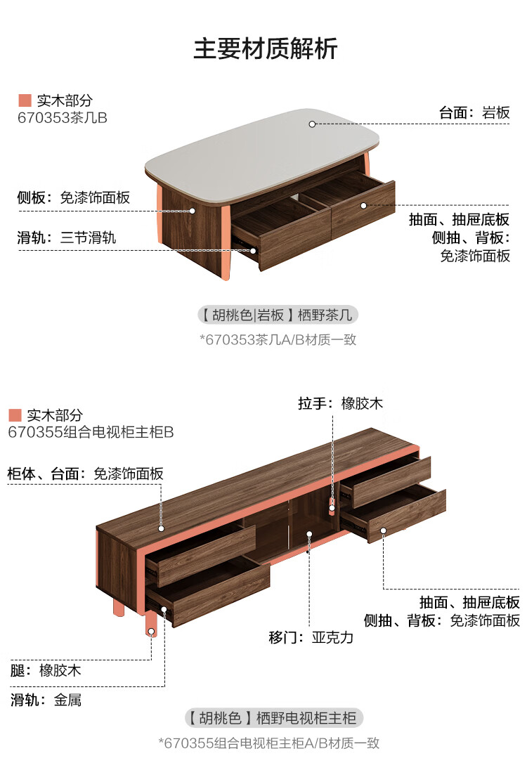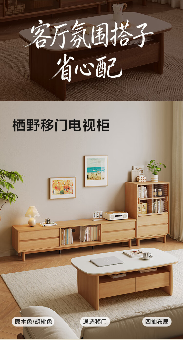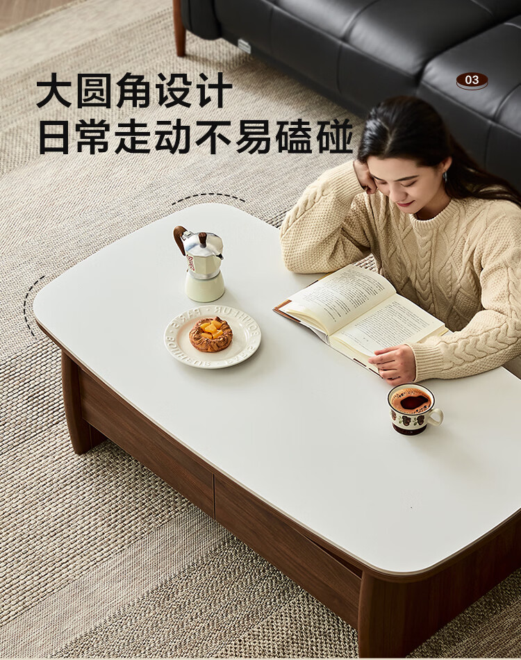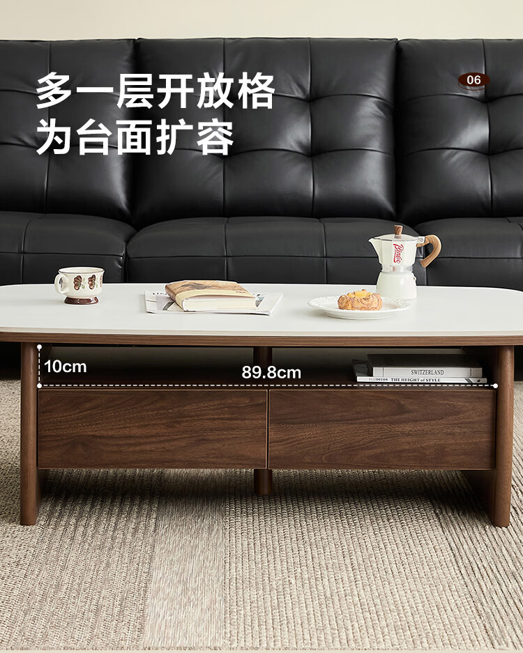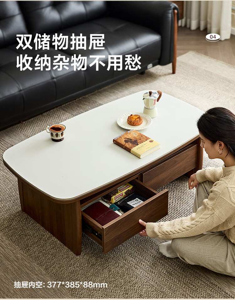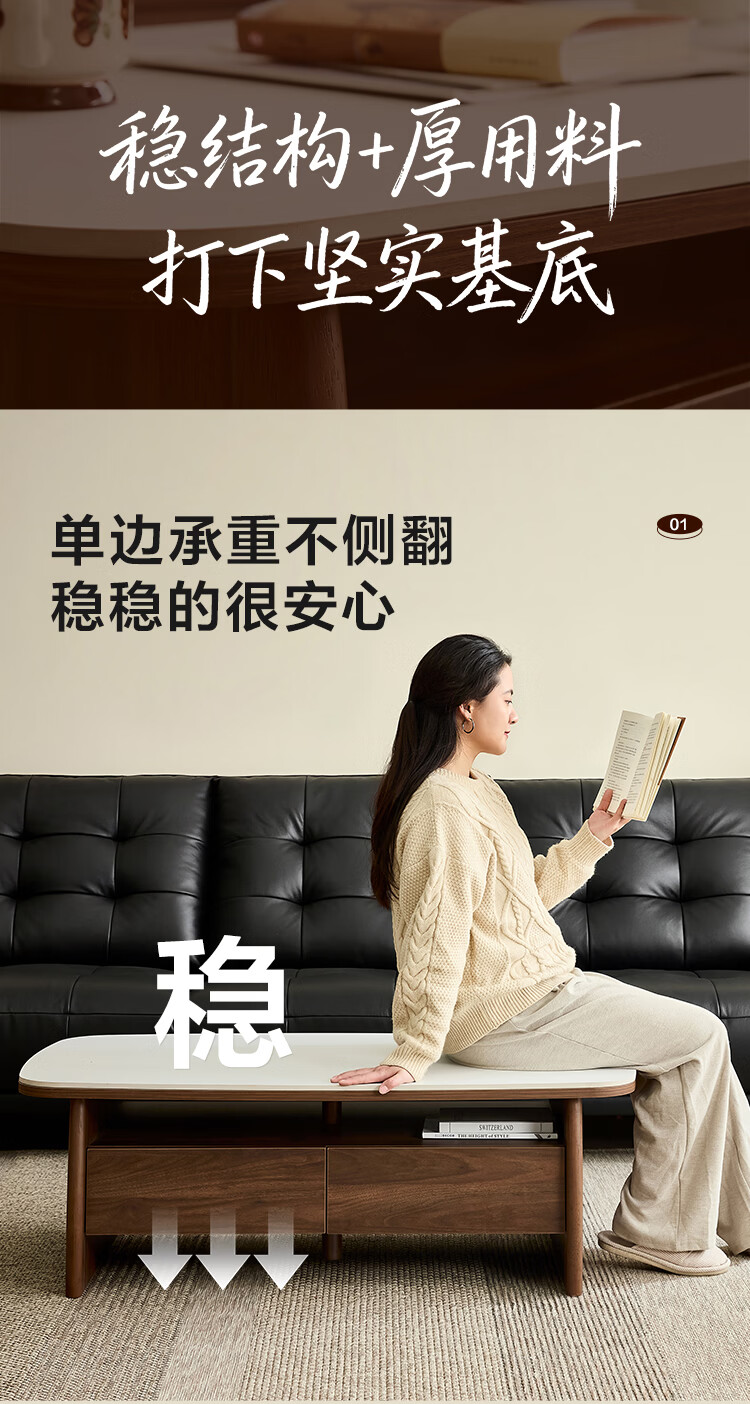 全友家居中古风茶几电视柜客厅轻奢高级感2026新款岩板桌面组合家具 【胡桃色 | 岩板】栖野茶几