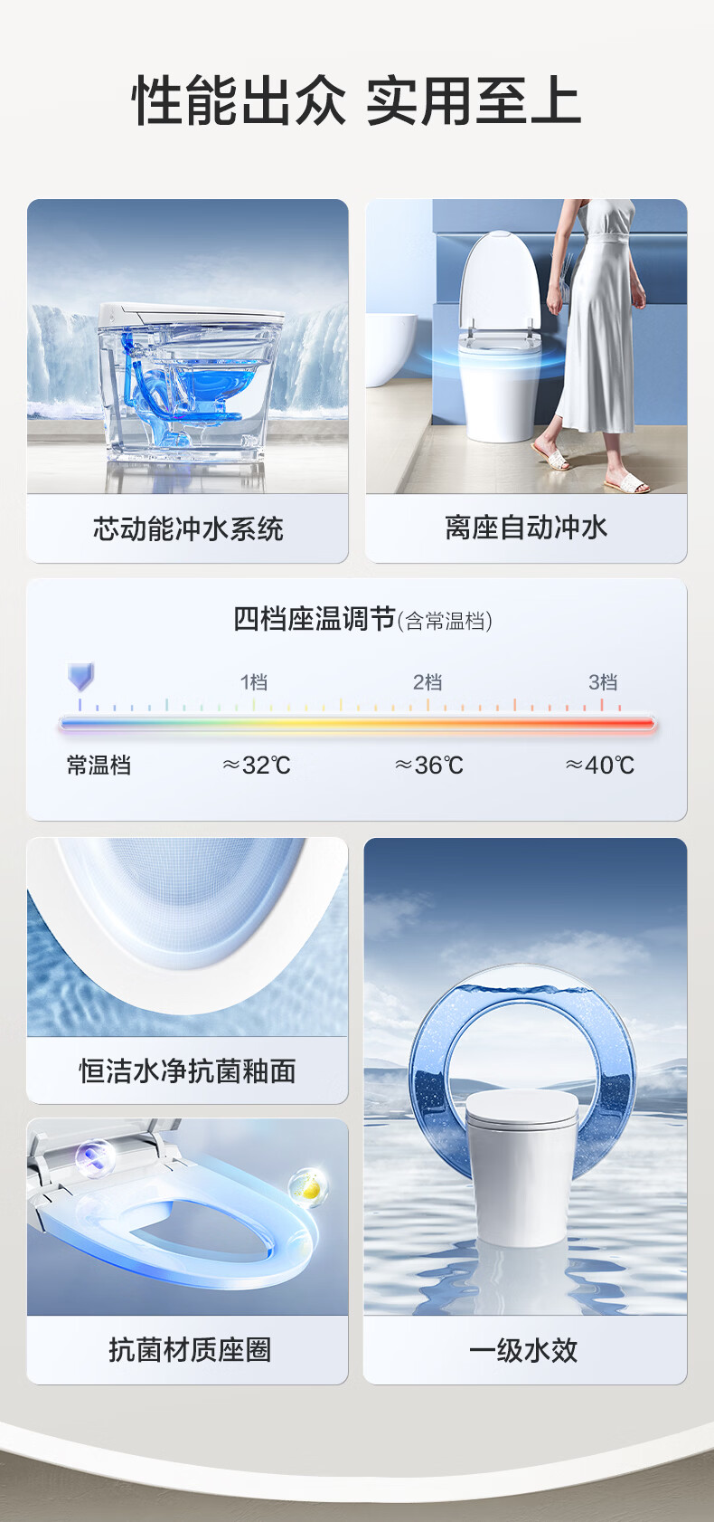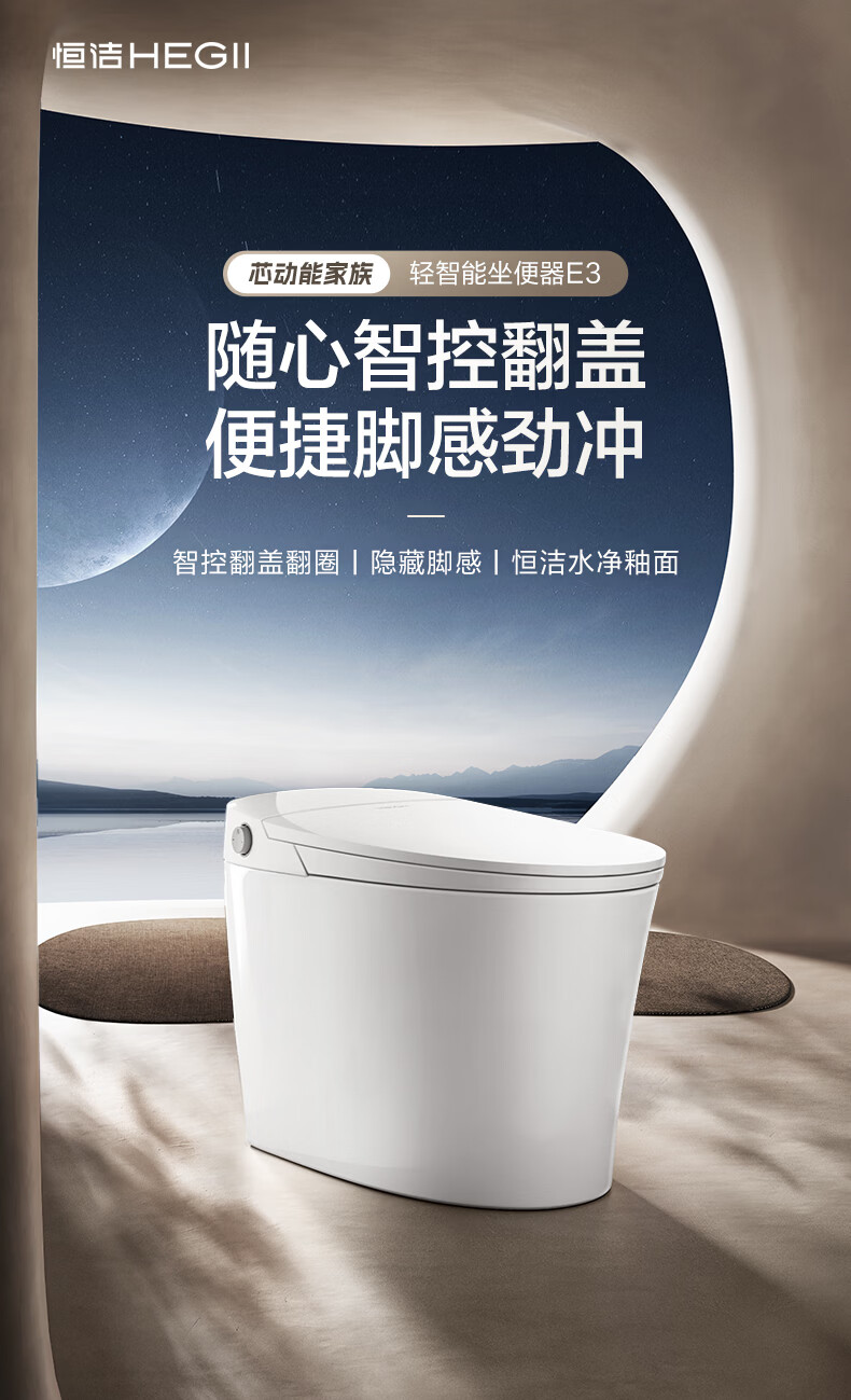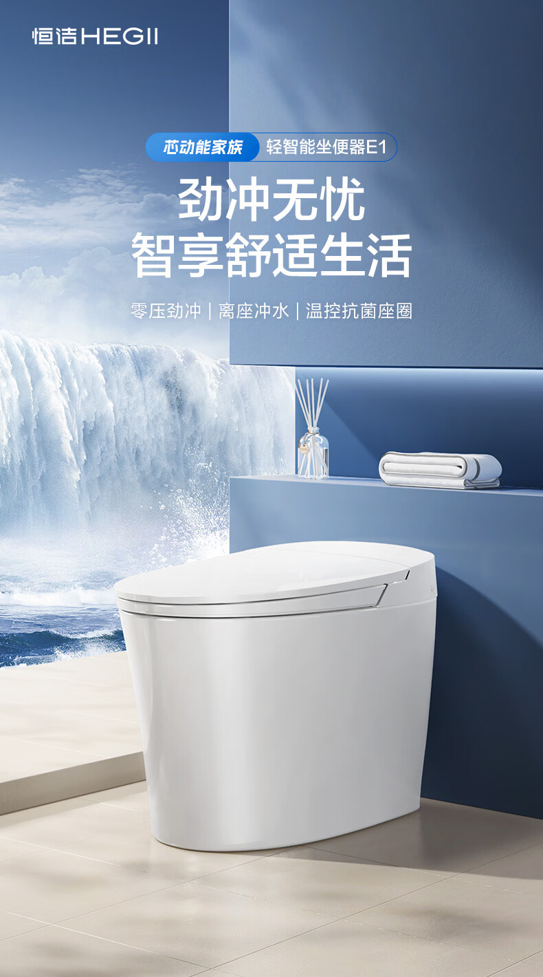 恒洁(HEGII)轻智能马桶带水箱虹吸式离座自动冲抗菌加热家用坐便器包安装送货 *【经典款】免测水压自动冲水E1 305坑距 (预留290-390mm)