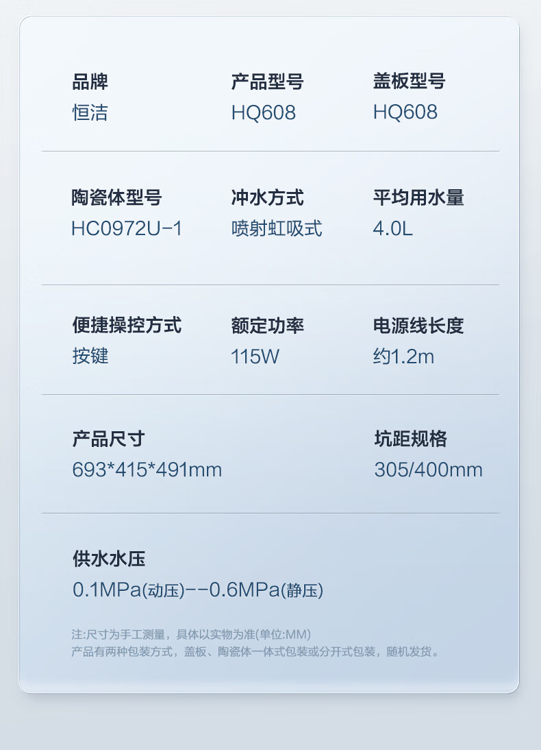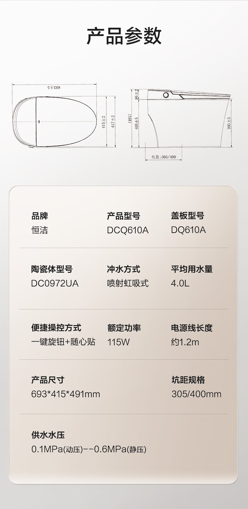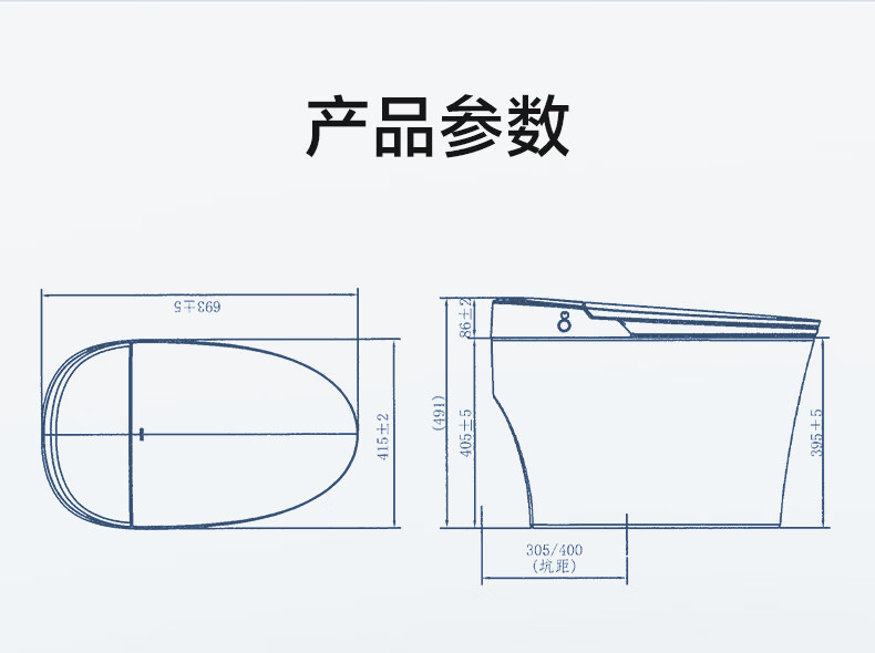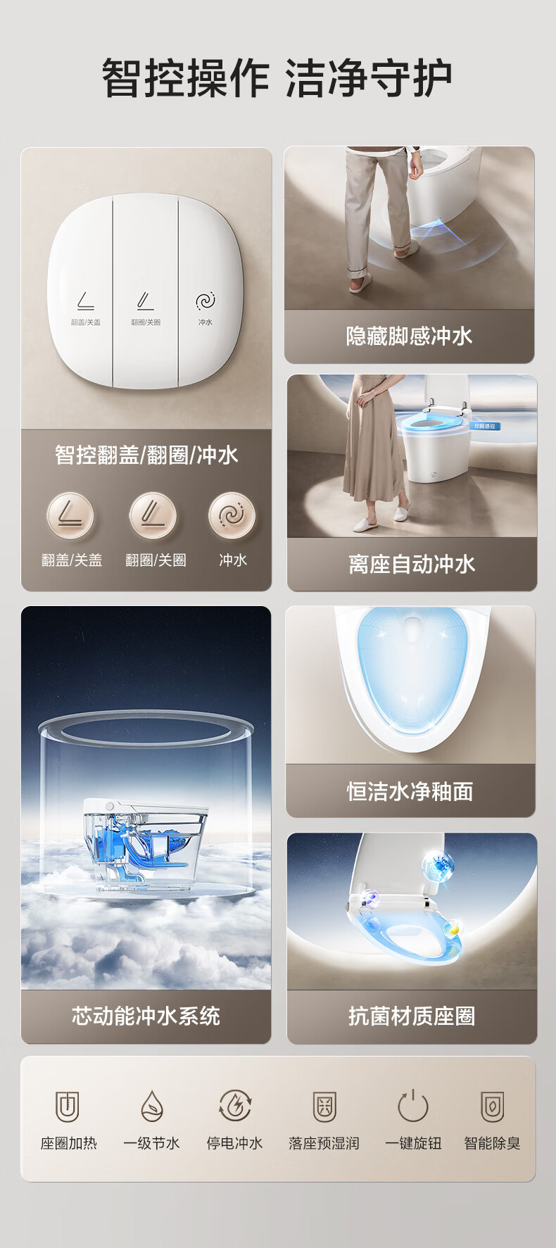恒洁(HEGII)轻智能马桶带水箱虹吸式离座自动冲抗菌加热家用坐便器包安装送货 *【经典款】免测水压自动冲水E1 305坑距 (预留290-390mm)