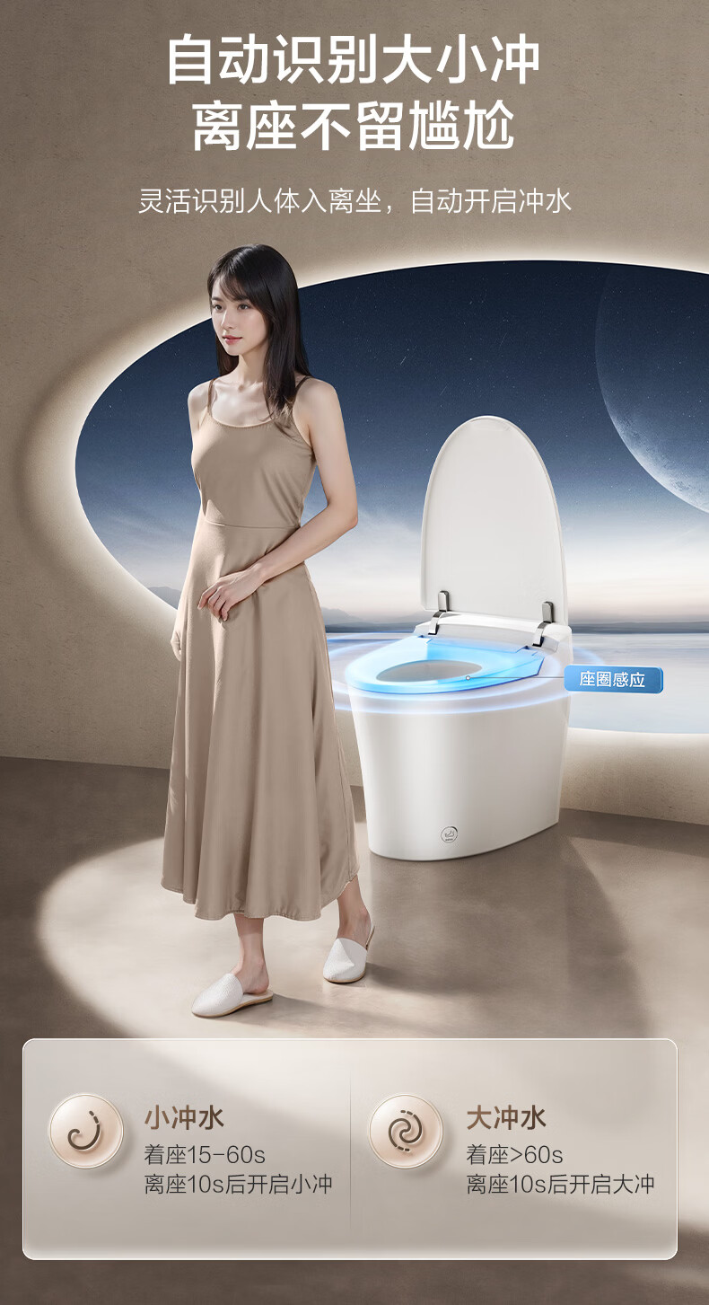 浪鲸(SSWW)卫浴全自动脚感智能马桶无棱内壁清洗烘干一体泡沫盾坐便器058 【058B全智能】升级感应翻盖+千次泡沫盾+UV杀菌 305/300mm