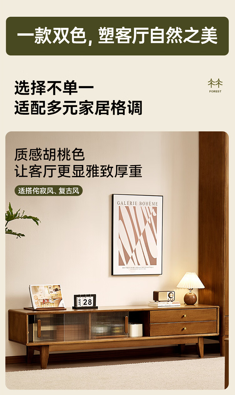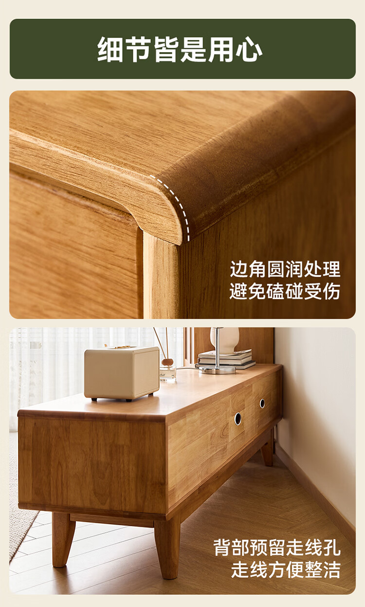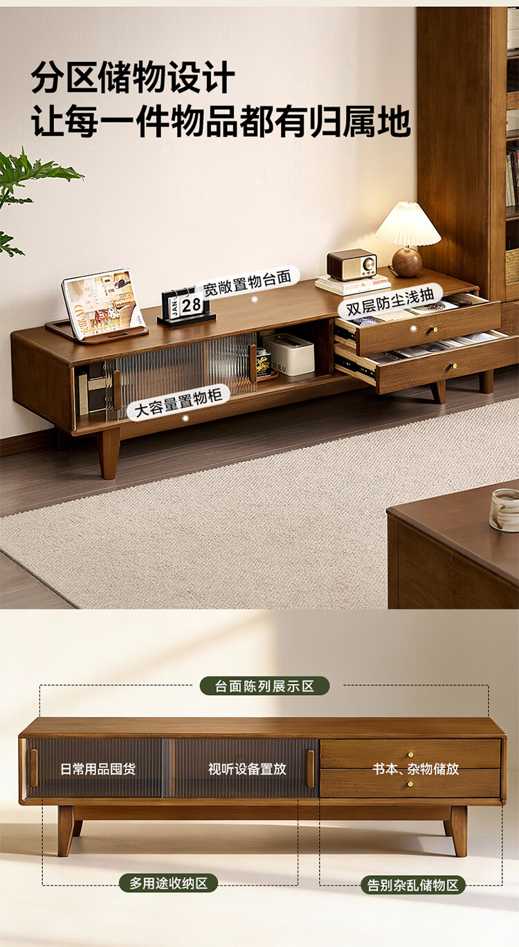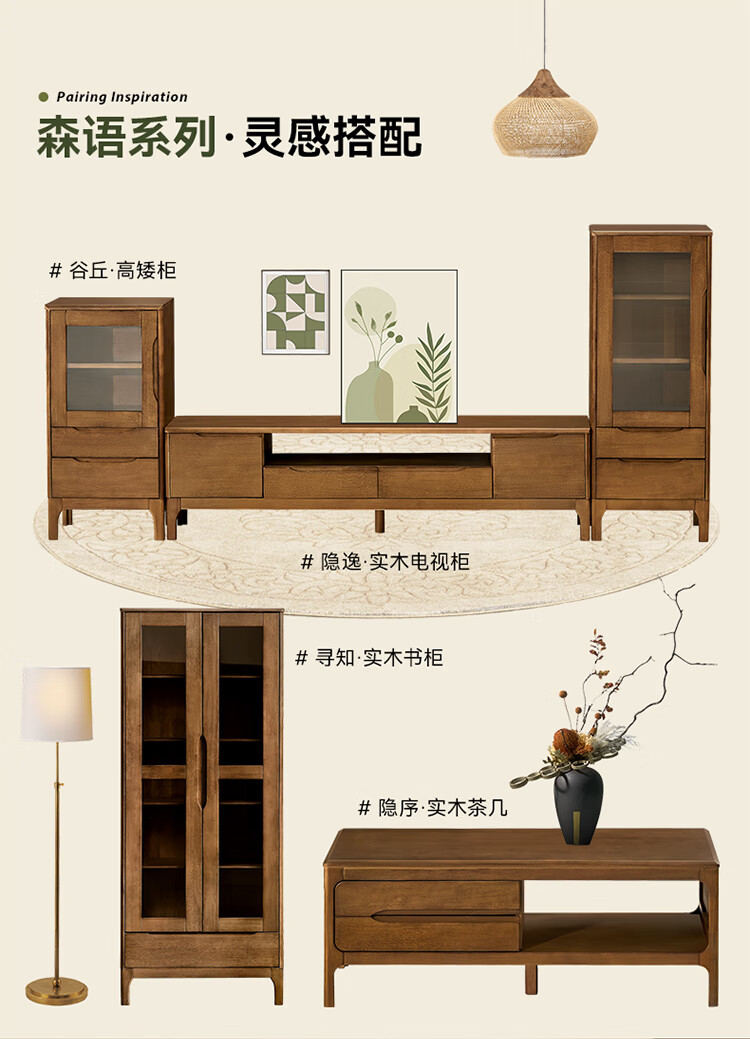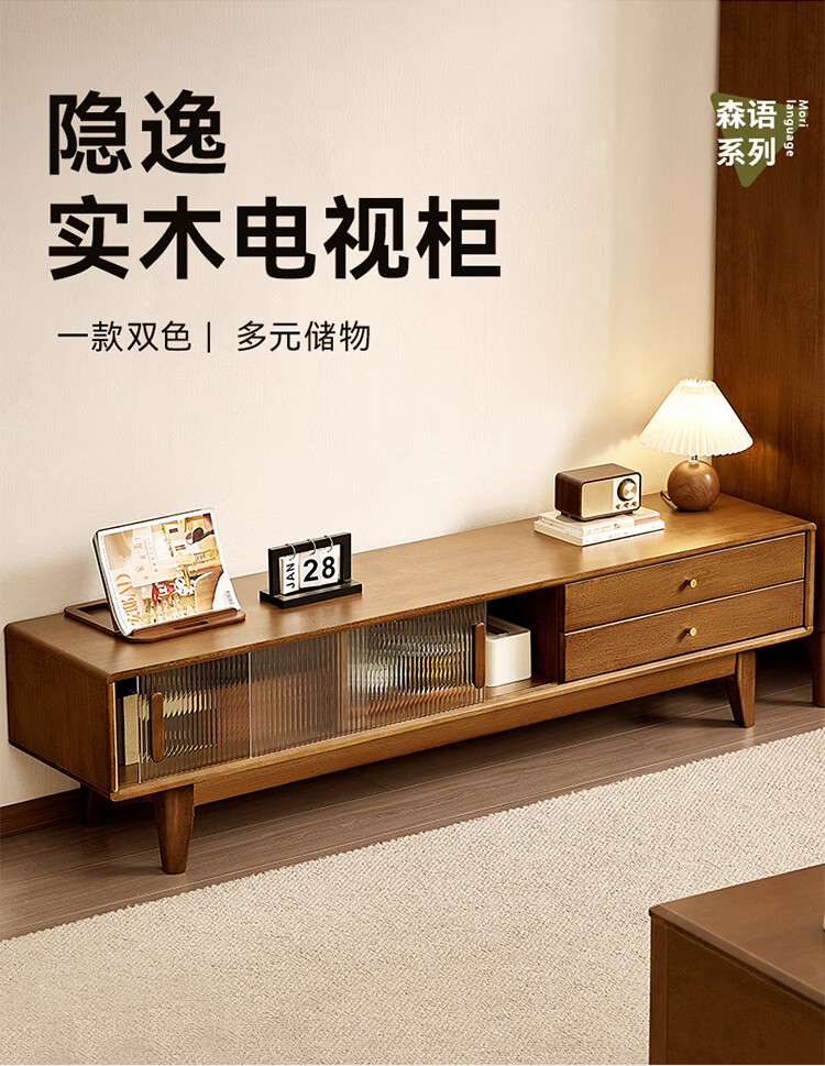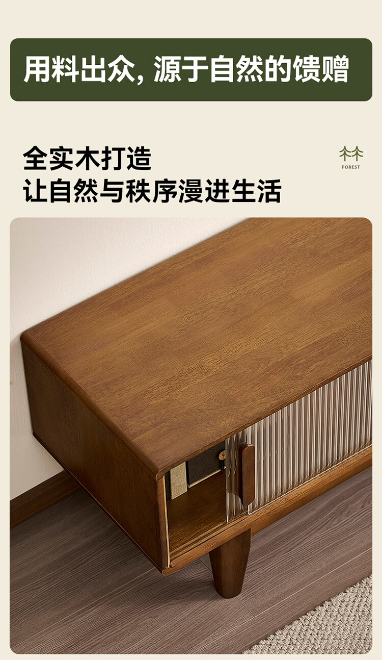 全友家居原木风家具客厅电视柜高款沙发边柜组合储物收纳展示柜 【胡桃色|橡胶木】电视柜