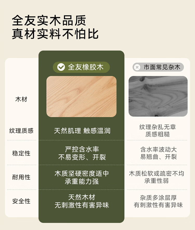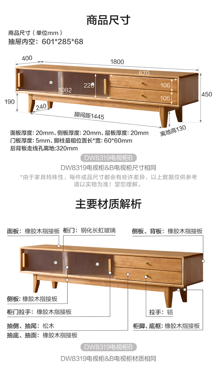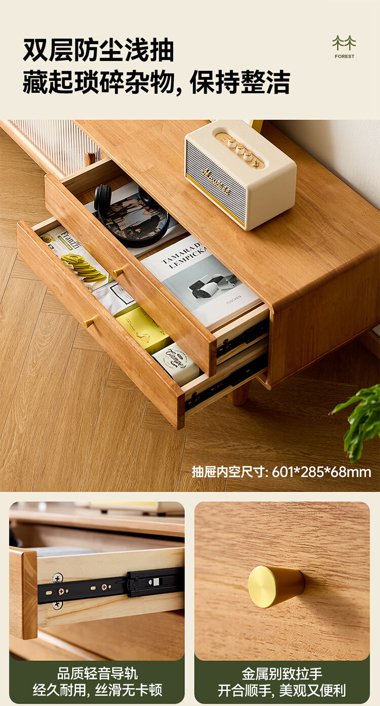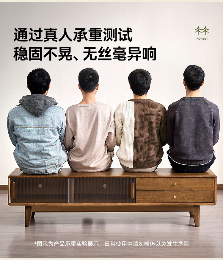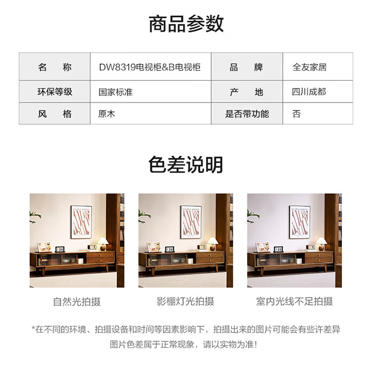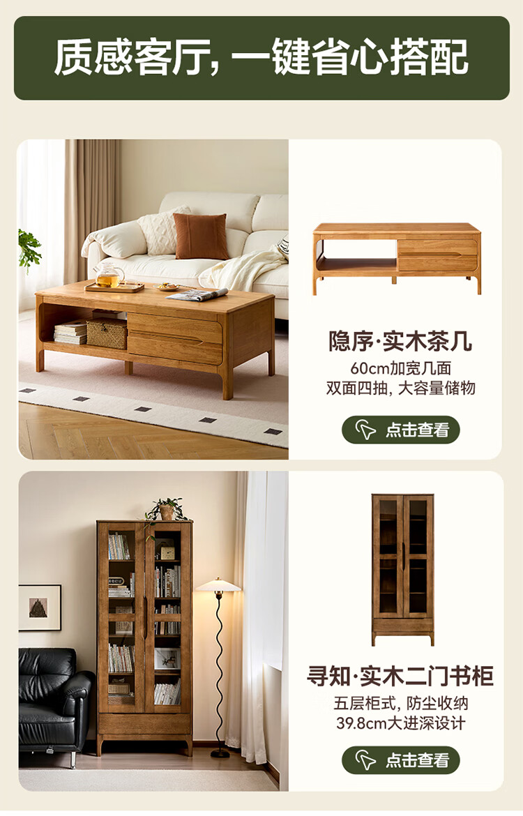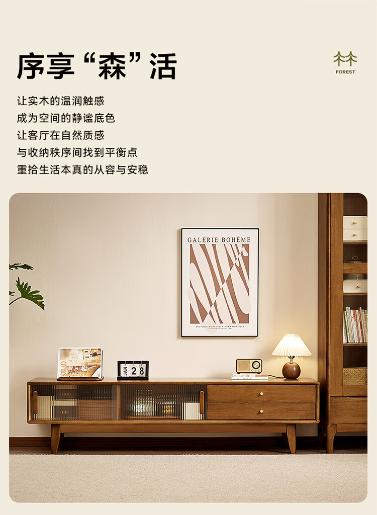 全友家居原木风家具客厅电视柜高款沙发边柜组合储物收纳展示柜 【胡桃色|橡胶木】电视柜