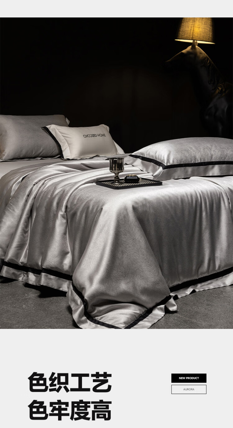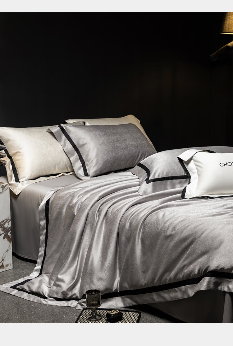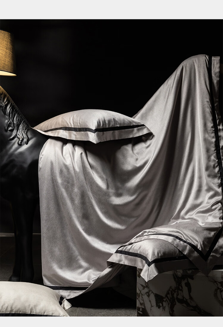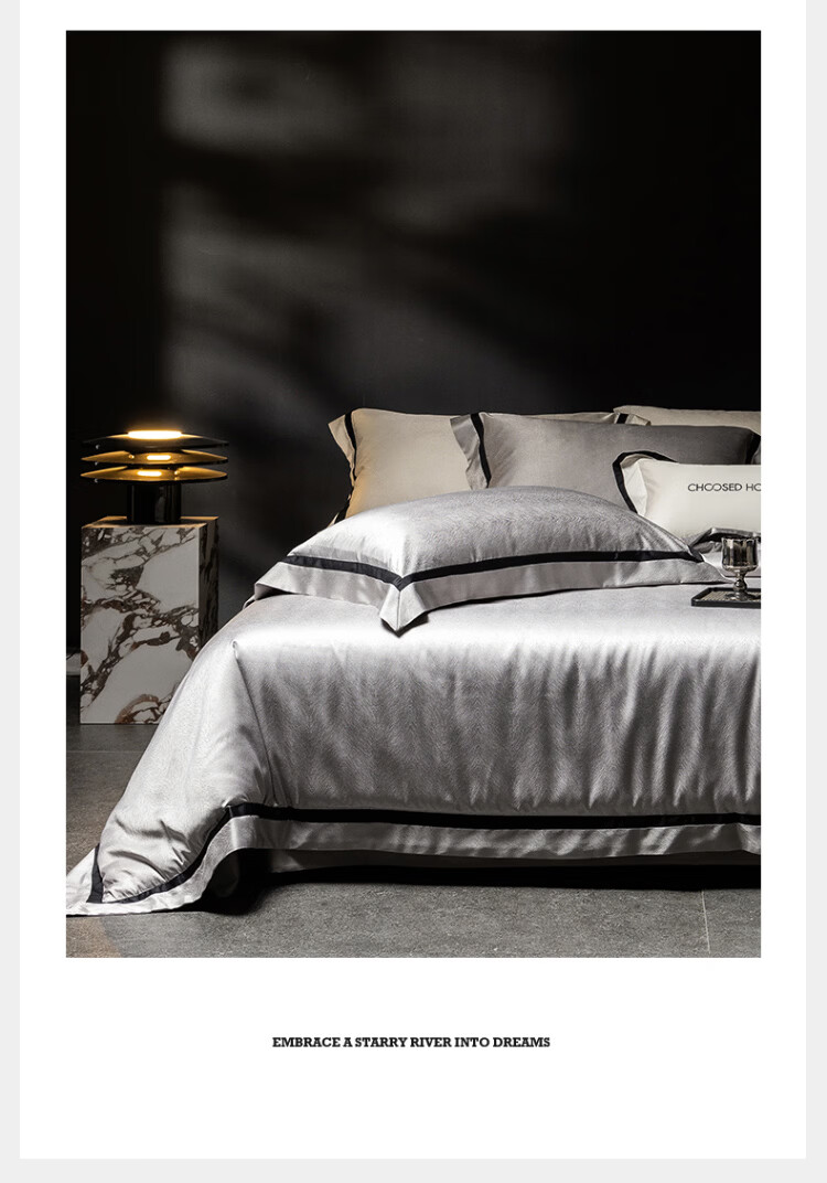 ROLAND LIVE轻奢高级感高精密色织提花四件套透气丝滑AB版被套床单床上用品 CS 高精密提花四件套-玛丽亚星河灰 1.5米床 床单款 【被套200*230cm】