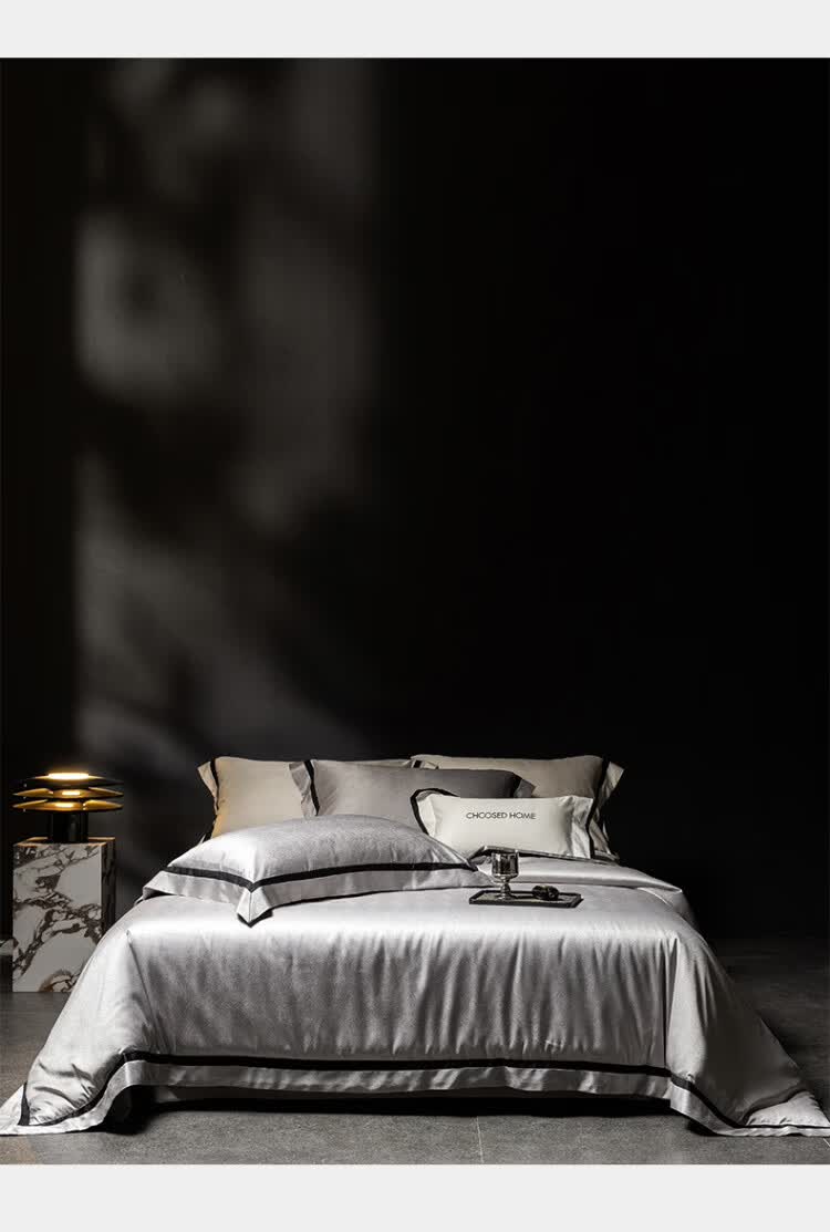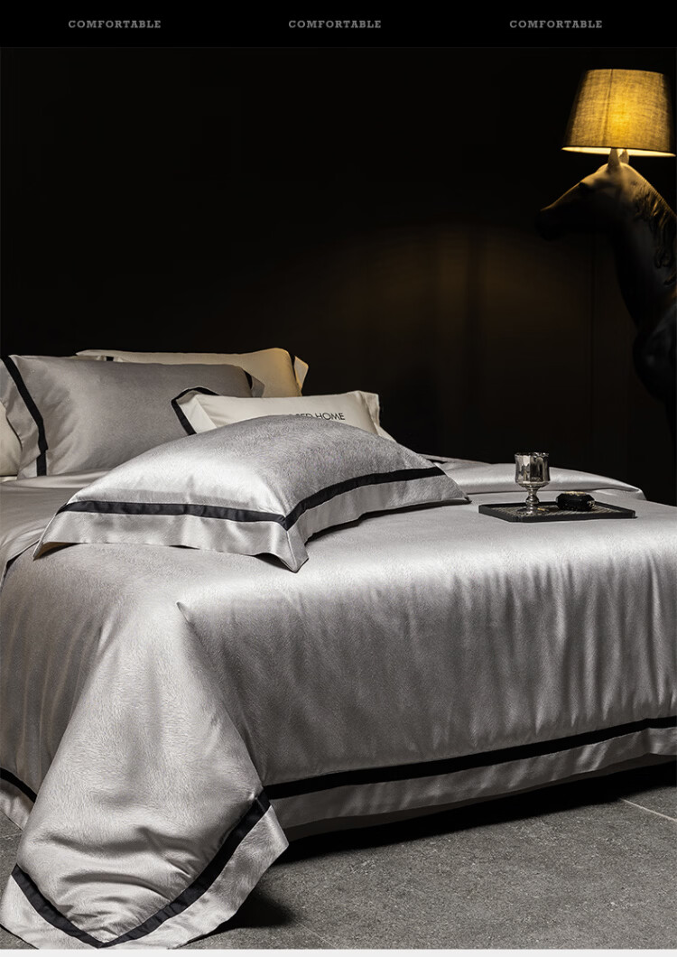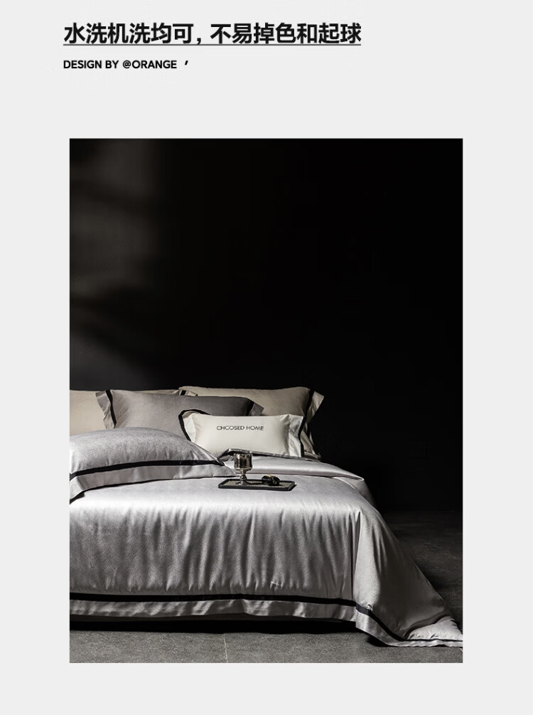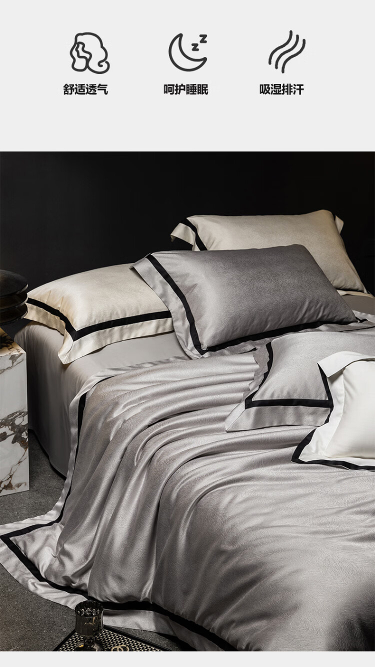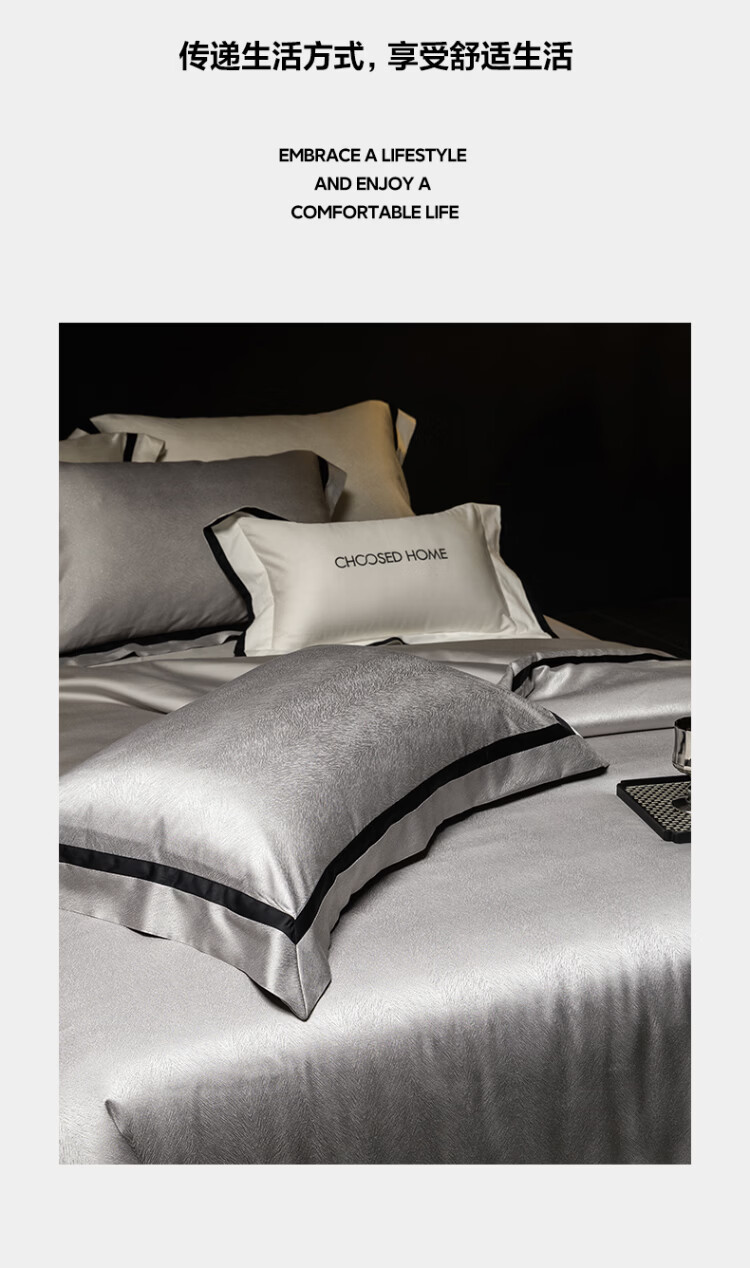 ROLAND LIVE轻奢高级感高精密色织提花四件套透气丝滑AB版被套床单床上用品 CS 高精密提花四件套-玛丽亚星河灰 1.5米床 床单款 【被套200*230cm】