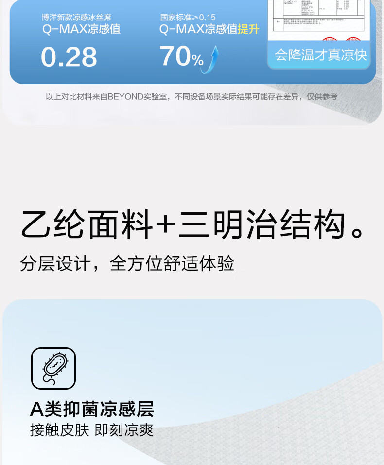 博洋(BEYOND)博洋家纺夏季凉感席二三件套家用单双人可水洗空调席冰丝夏软凉席 凉感席三件套—森屿灰(床笠款)(A类+抑菌) 150*200cm