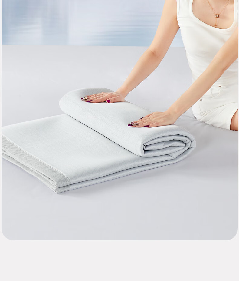 苏萱2026新款热卖水洗冰丝夏被四件套夏季夏凉被空调被可机水洗单双人 亚丁绿+冰川灰 单人夏被-150*200cm