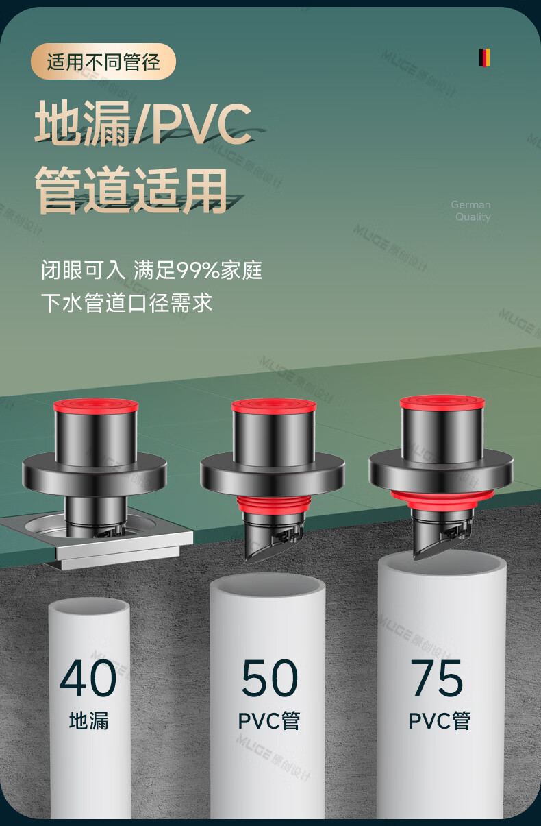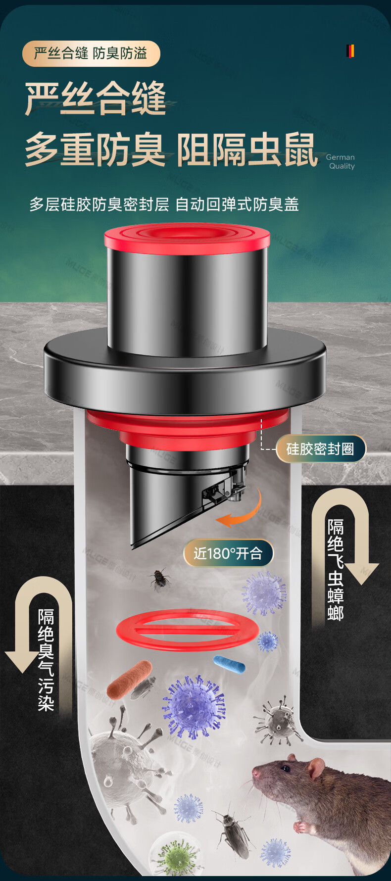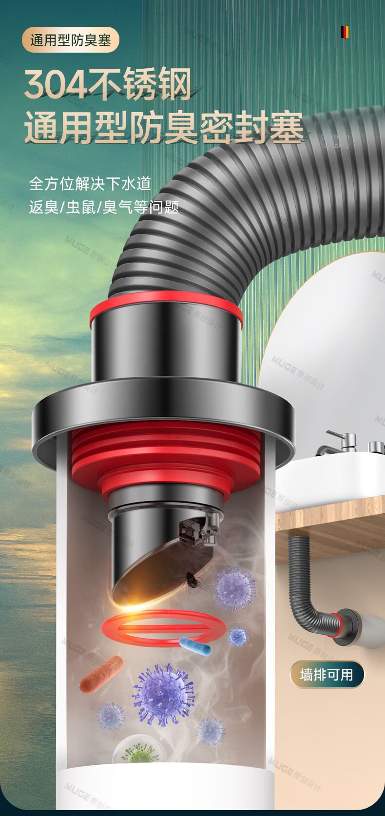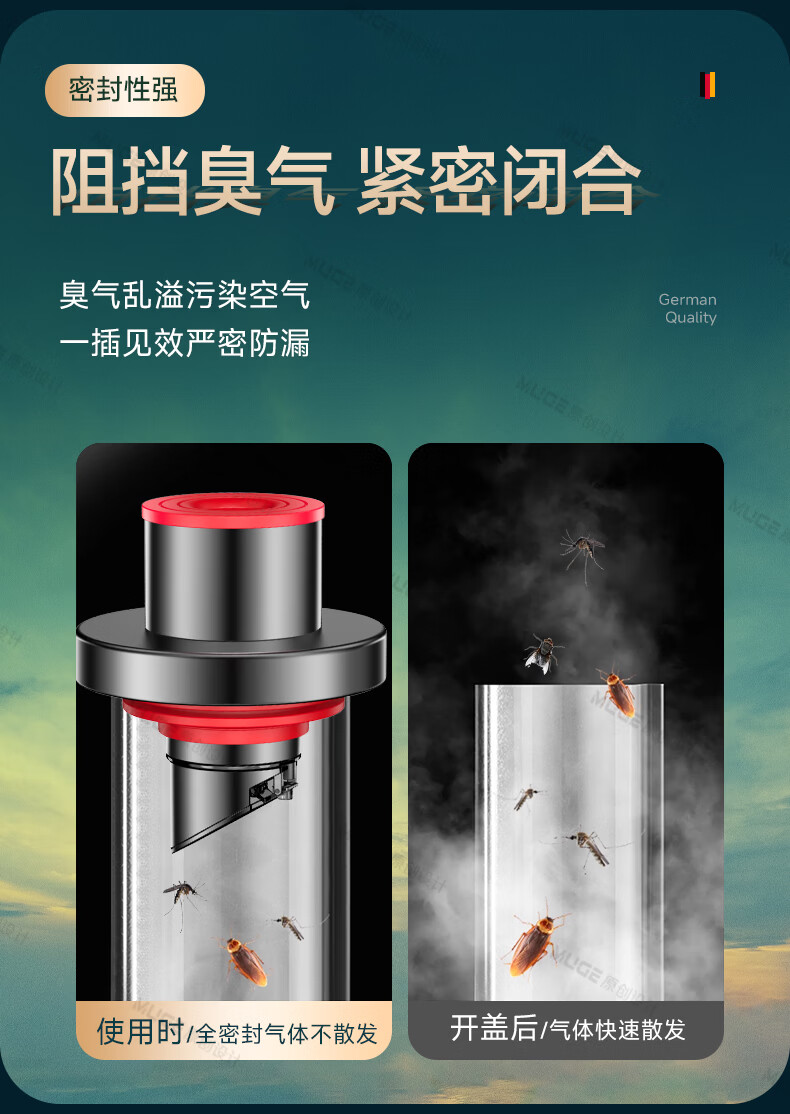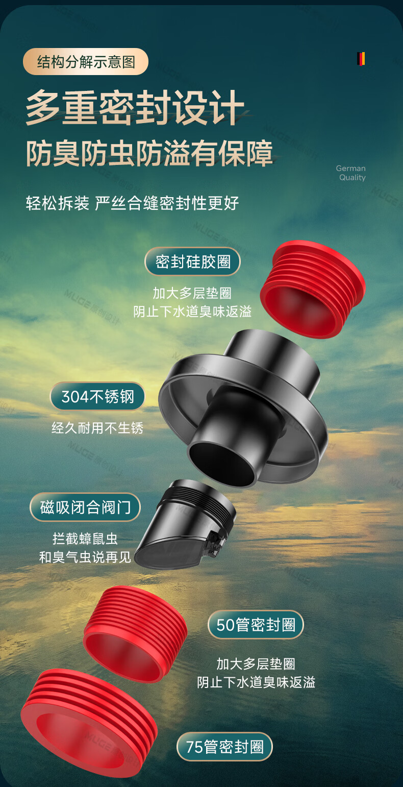 睦歌(MUGE)厨房下水道防返臭神器止逆阀304不锈钢下水管防臭密封塞封口盖 枪灰色304不锈钢【50/75管通用】防臭防虫