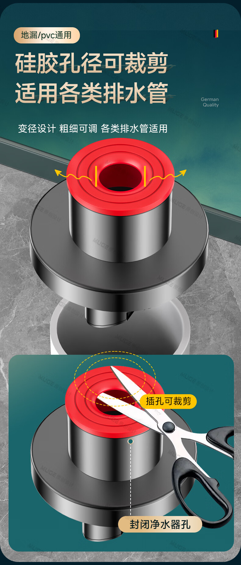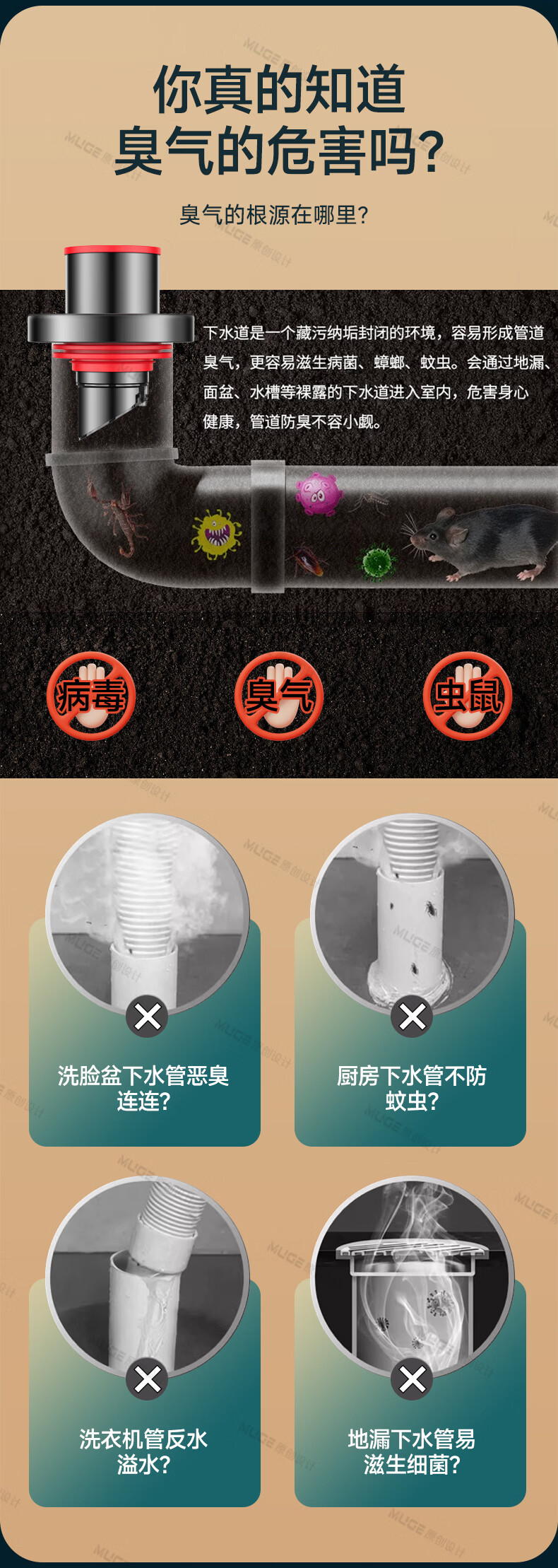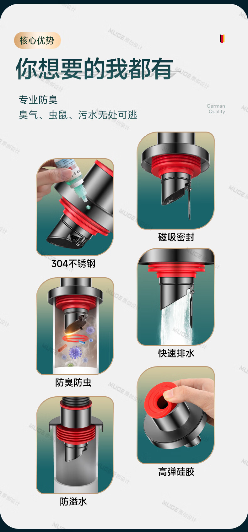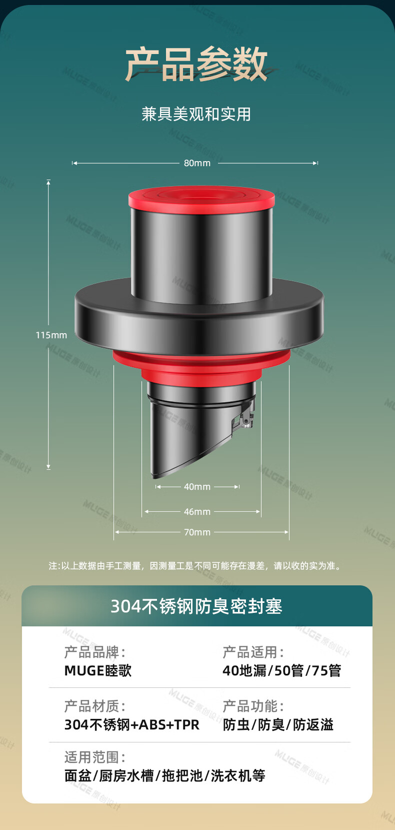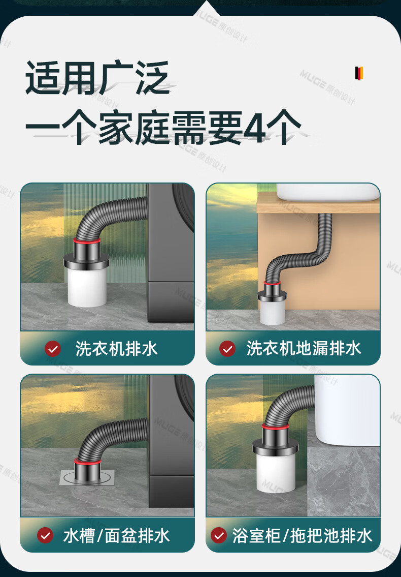 睦歌(MUGE)厨房下水道防返臭神器止逆阀304不锈钢下水管防臭密封塞封口盖 枪灰色304不锈钢【50/75管通用】防臭防虫