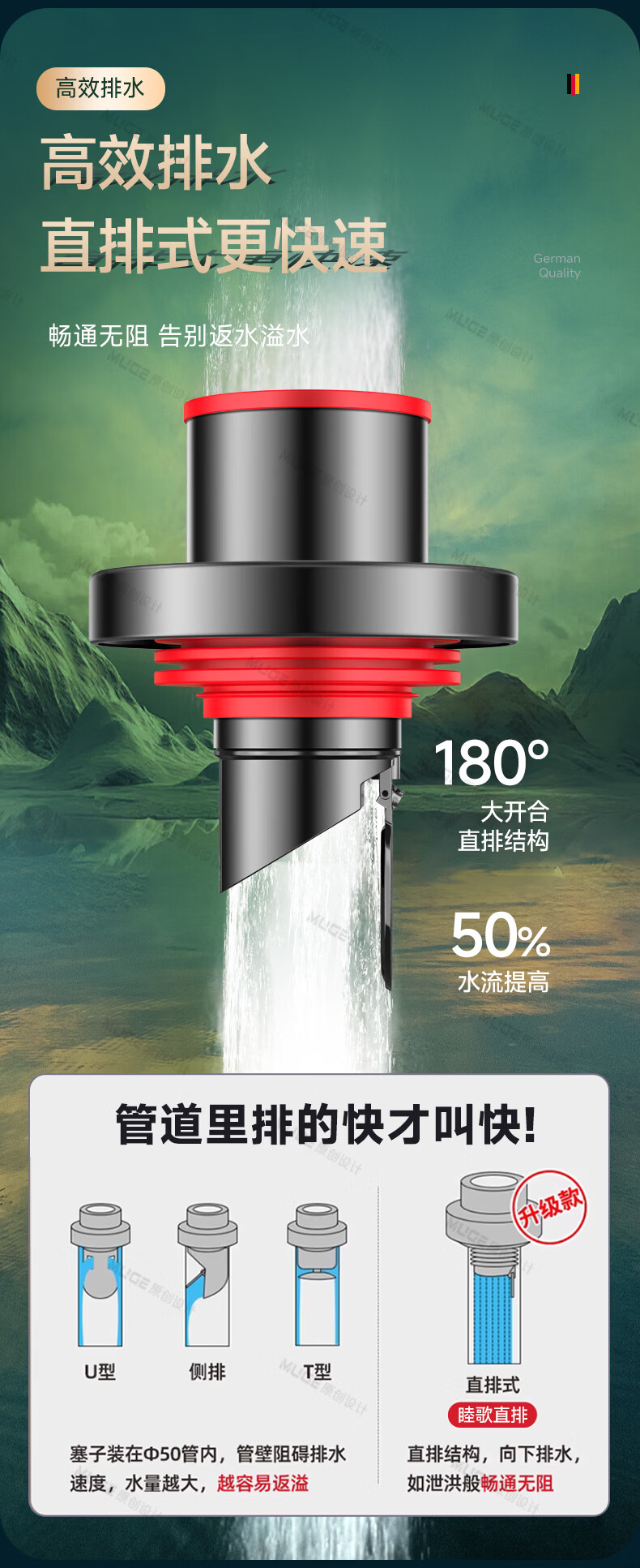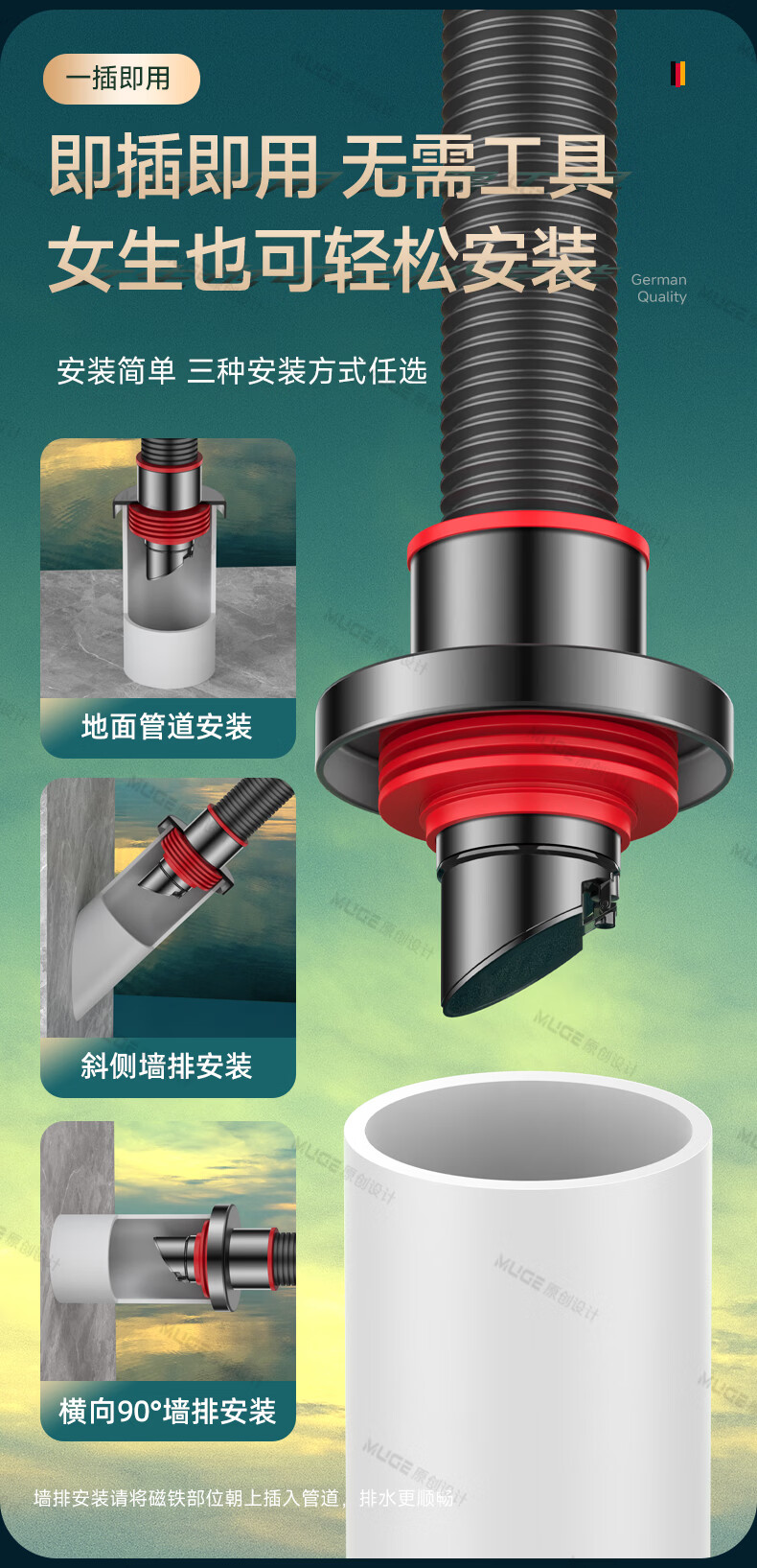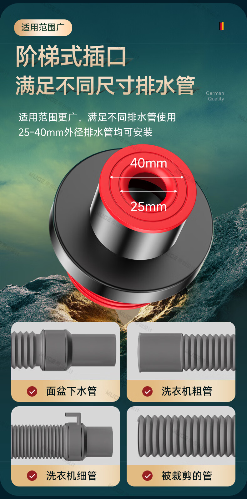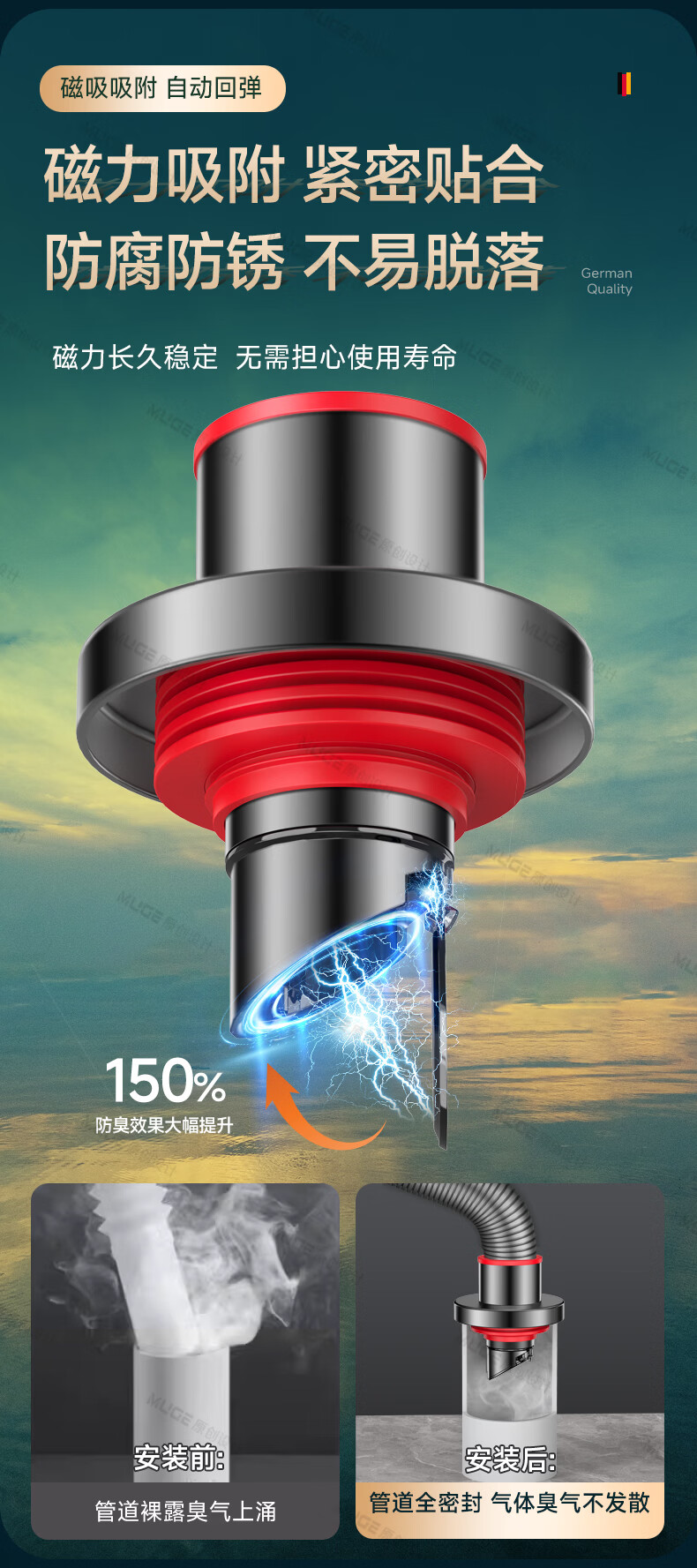睦歌(MUGE)厨房下水道防返臭神器止逆阀304不锈钢下水管防臭密封塞封口盖 枪灰色304不锈钢【50/75管通用】防臭防虫