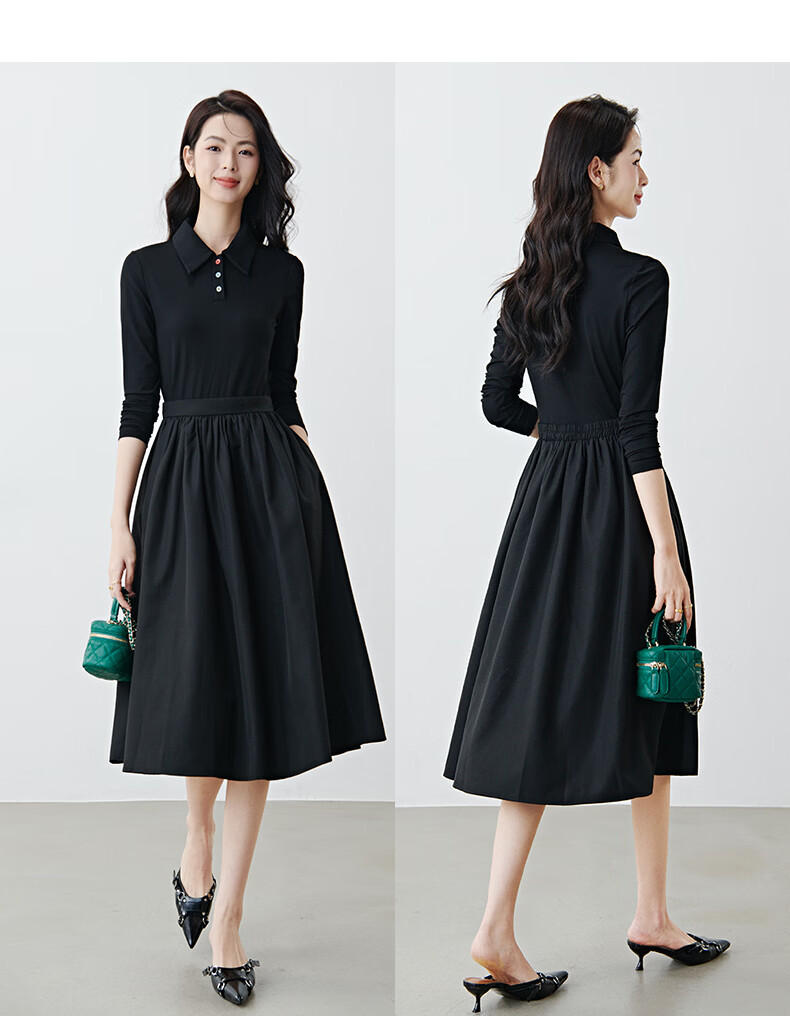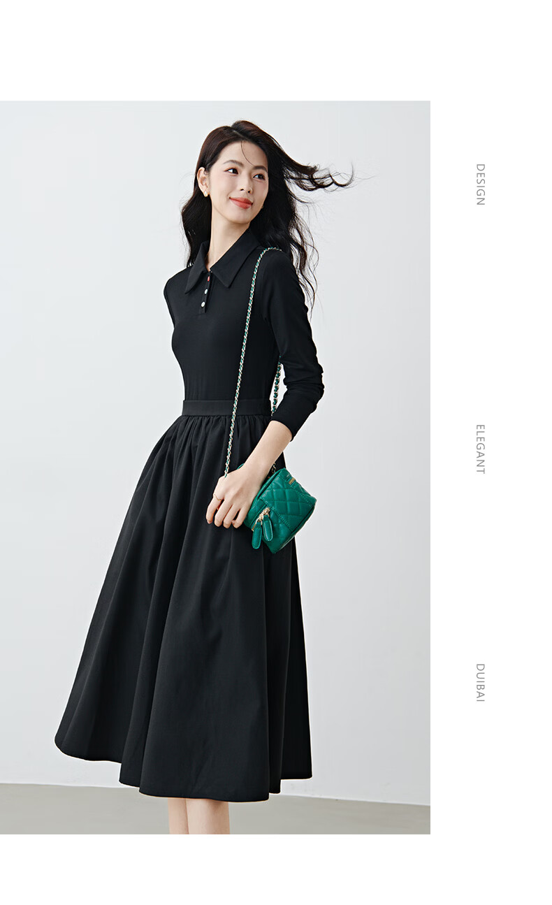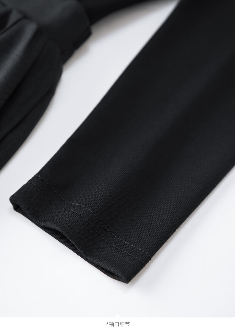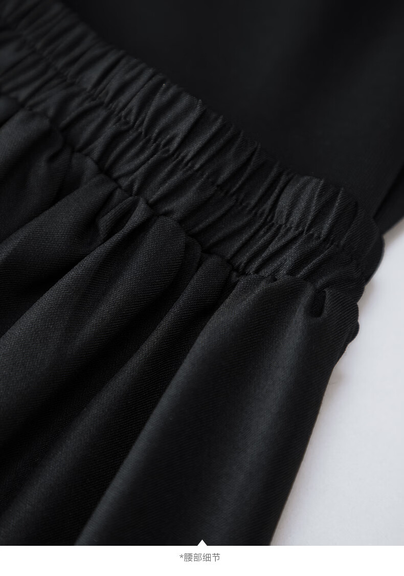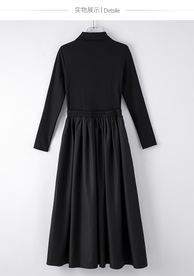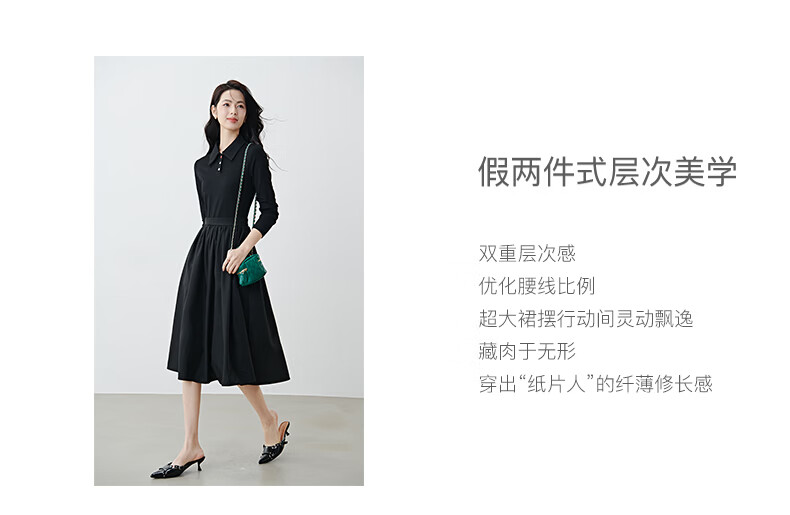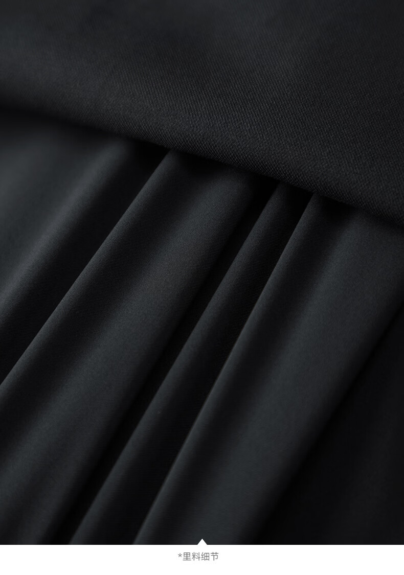 晚白纸片人小黑裙2026春款面试正装假两件收腰显瘦大摆A字伞裙连衣裙 黑色 XL