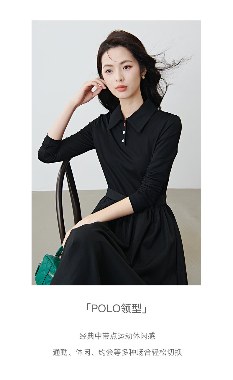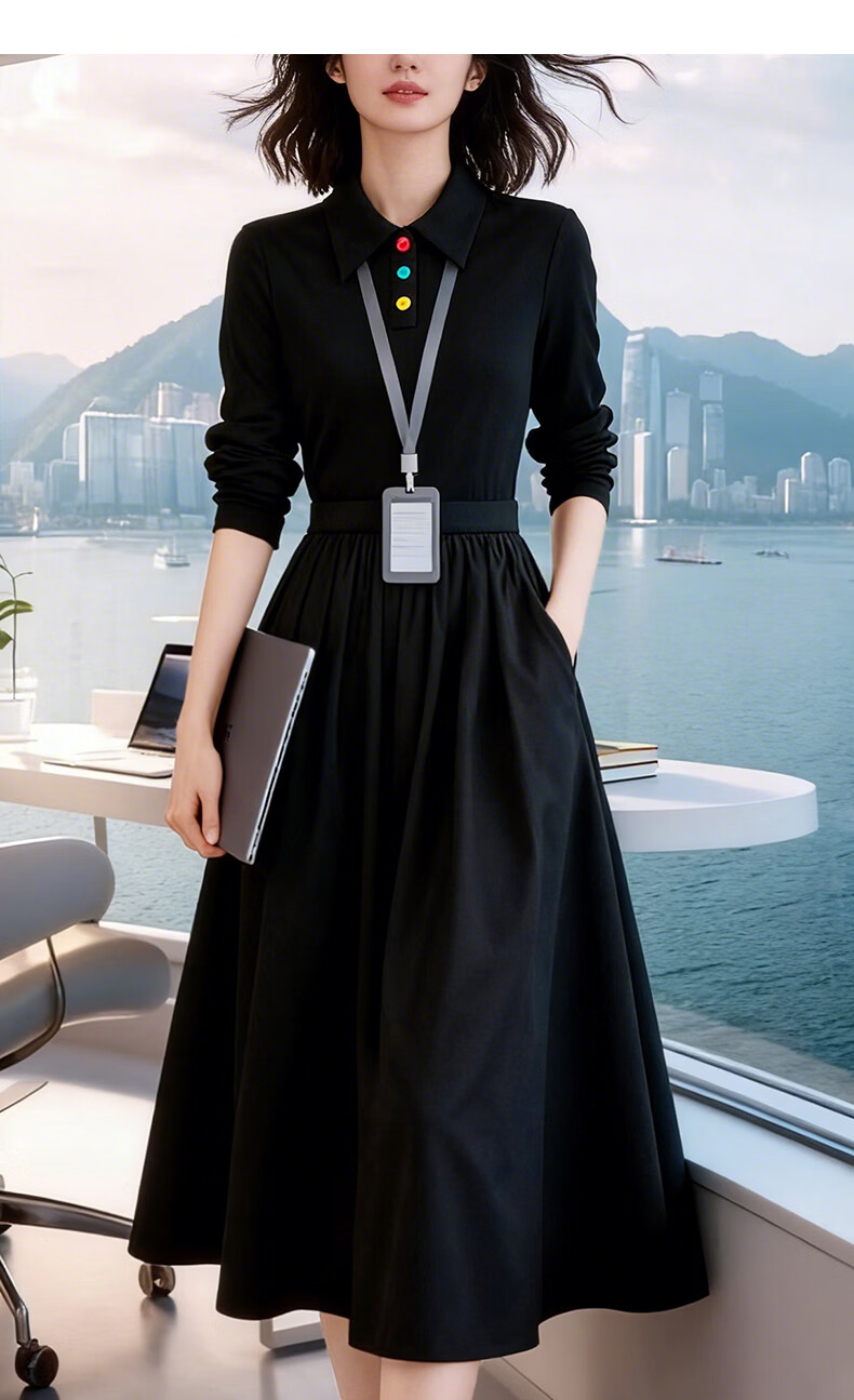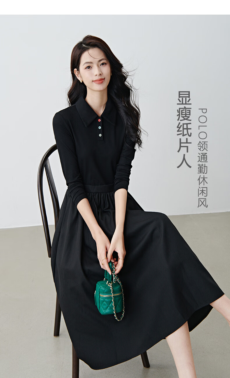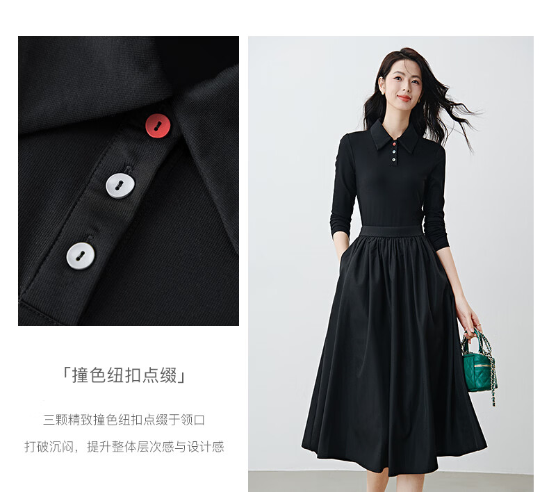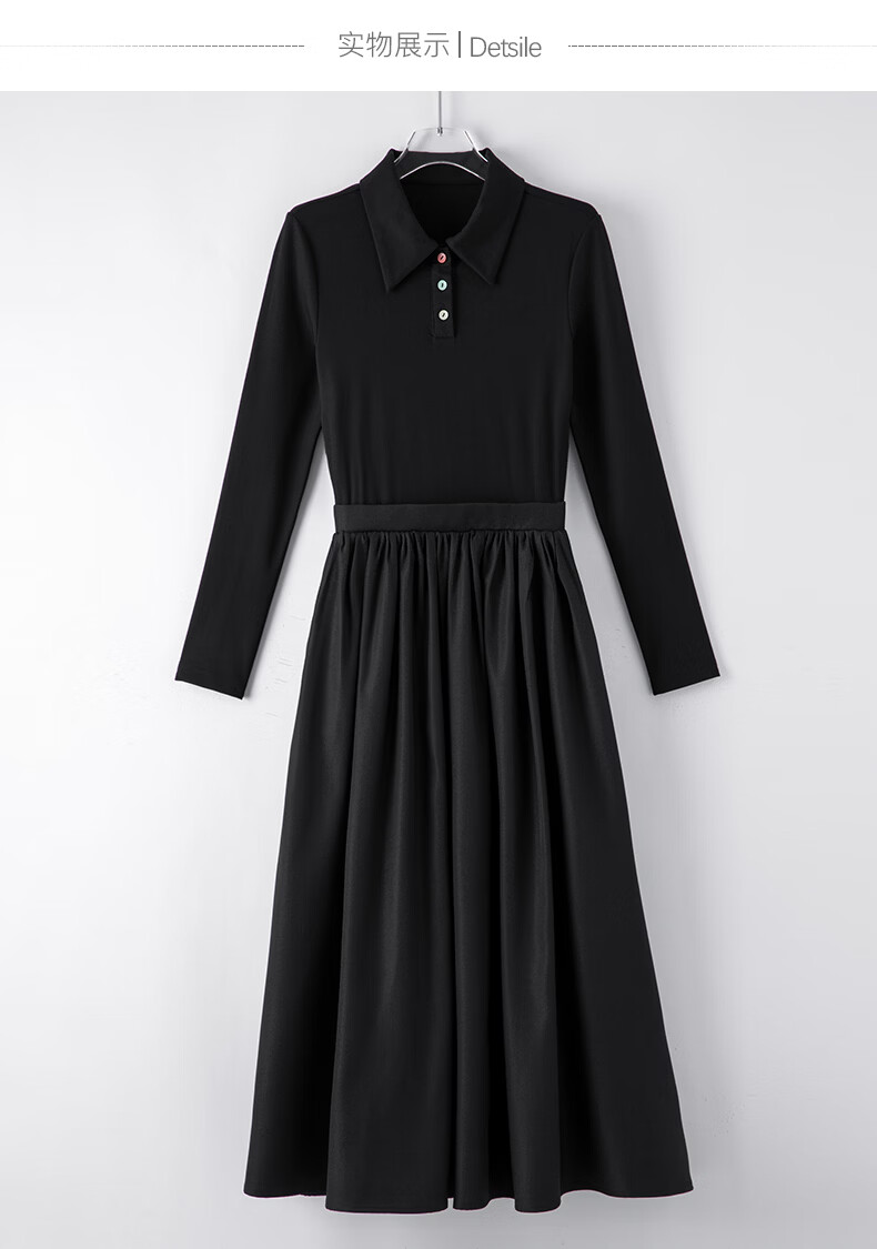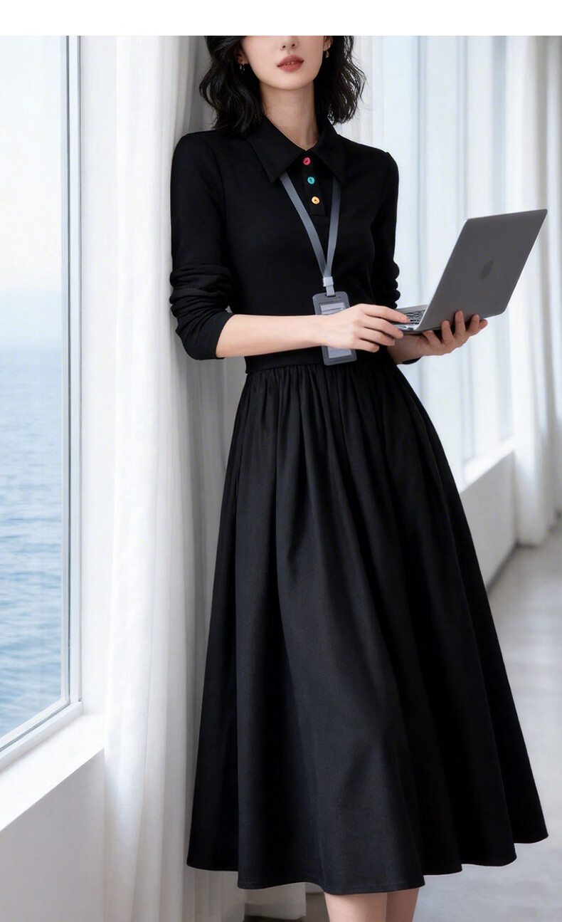 晚白纸片人小黑裙2026春款面试正装假两件收腰显瘦大摆A字伞裙连衣裙 黑色 XL