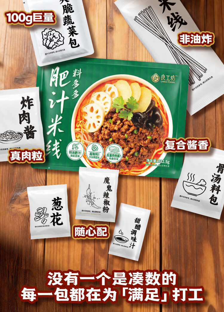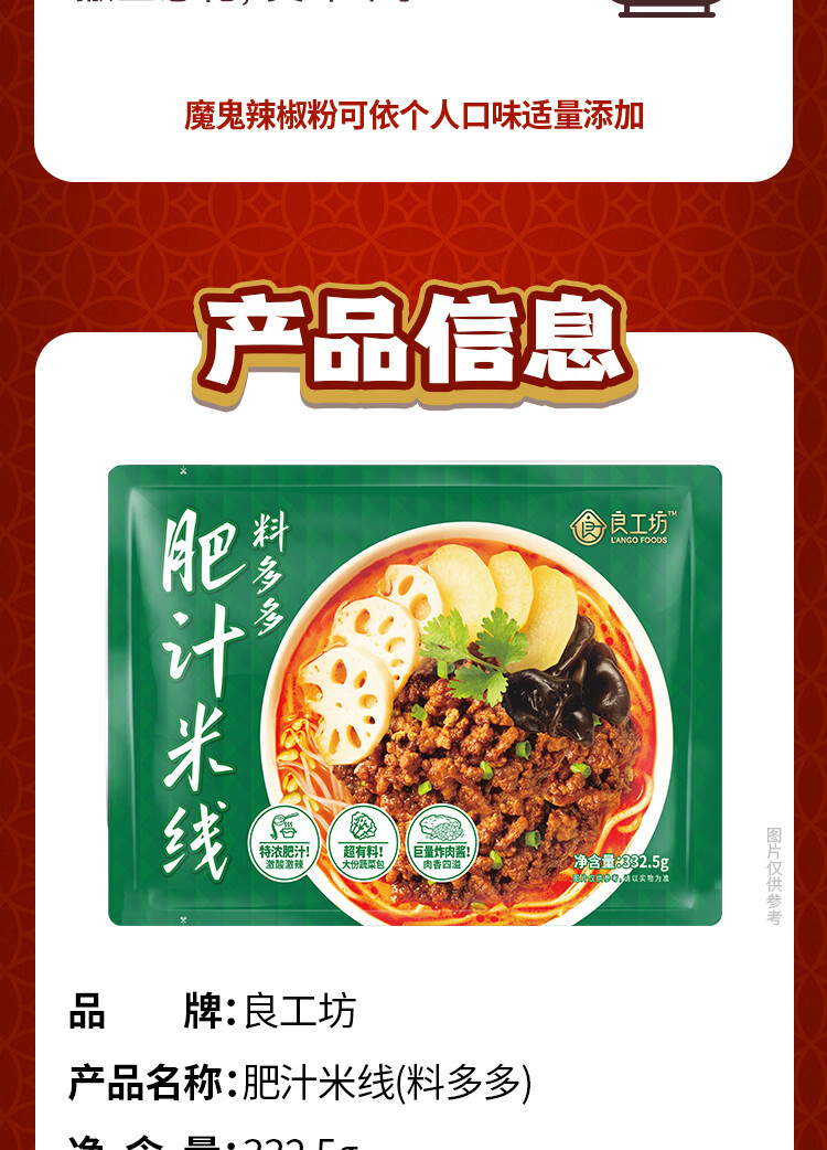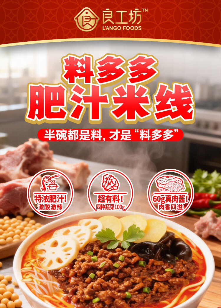 良工坊肥汁米线料多多酸辣粉方便速美食早餐夜宵宿舍螺蛳粉招牌炸酱米粉 肥汁米线(料多多)332.5g*3