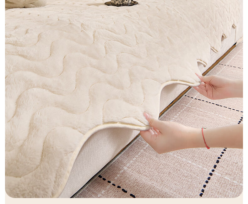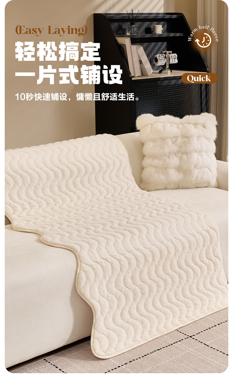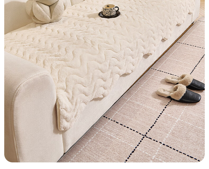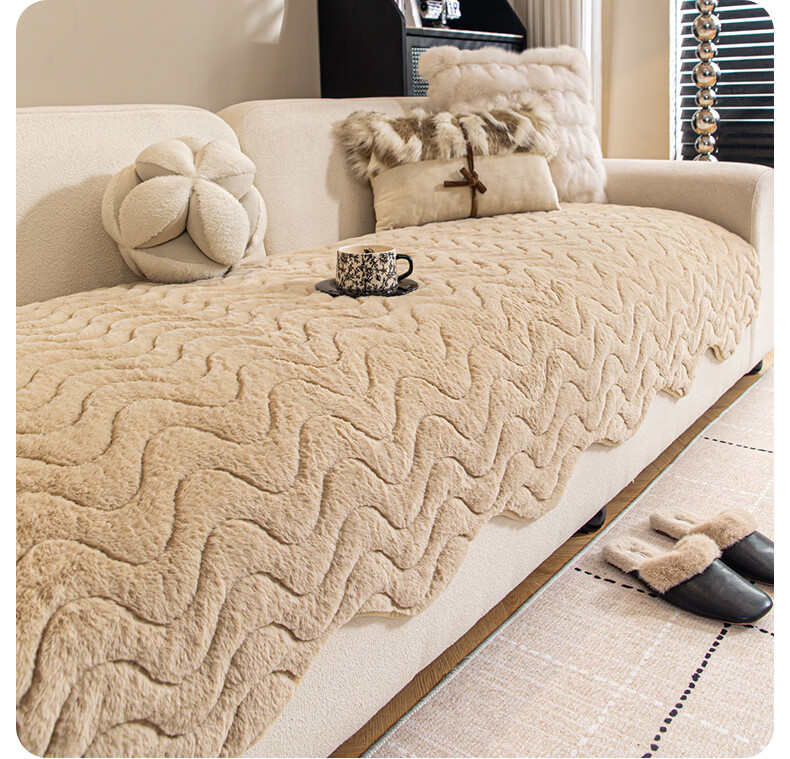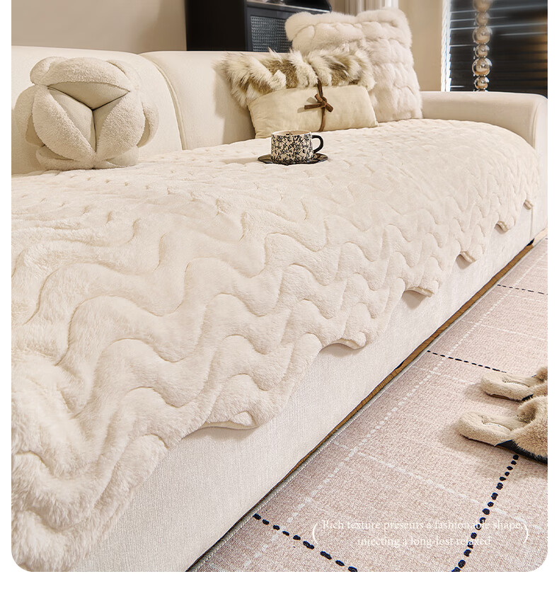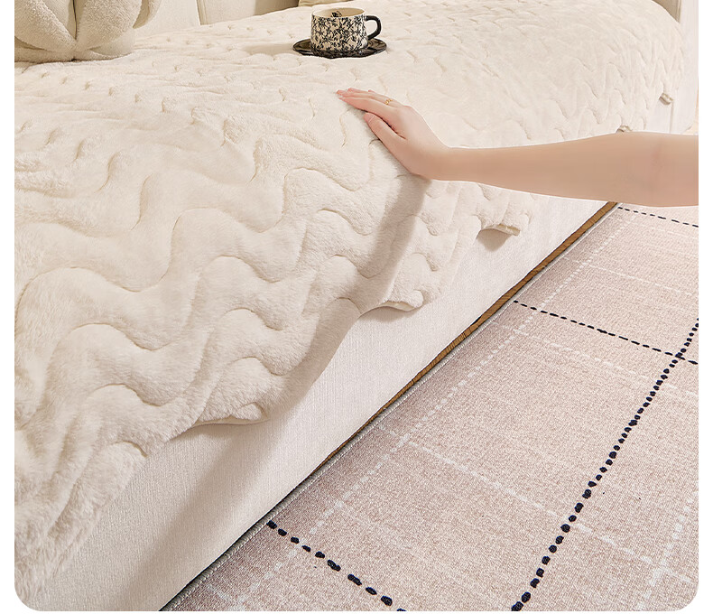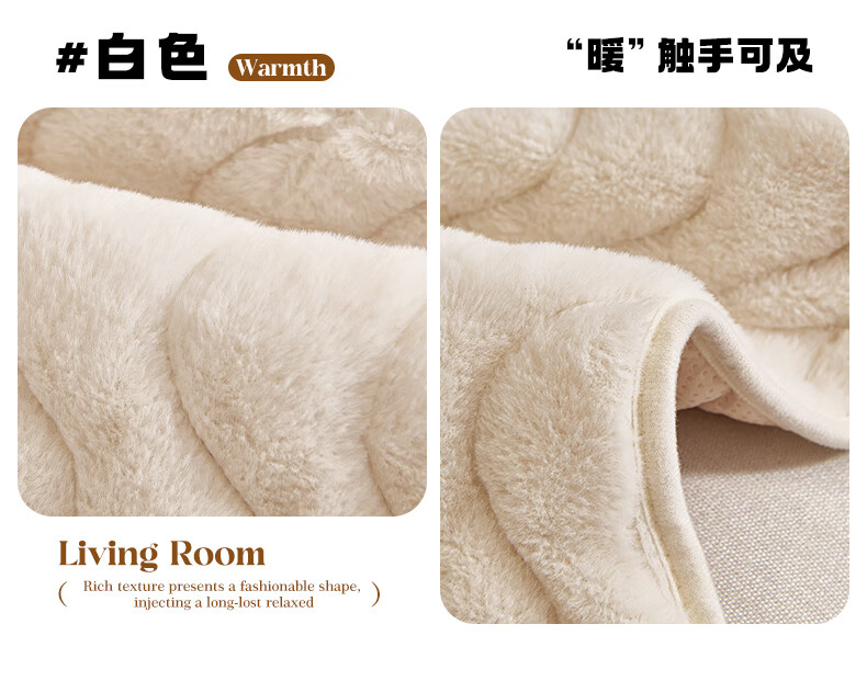 金拾美月兔兔绒沙发垫2026冬季新款加厚盖布冬天直排防滑毛绒沙发坐垫套 异形小兔毛-白色 70cm*70cm