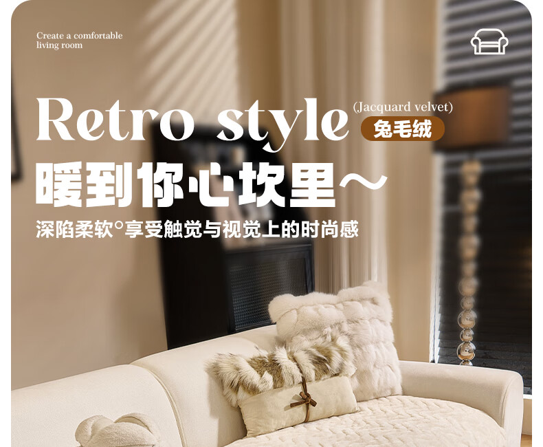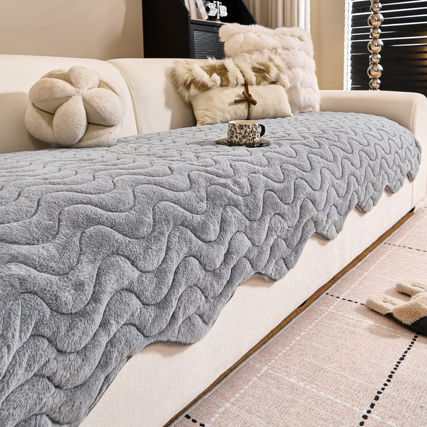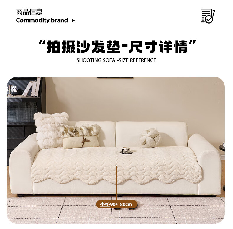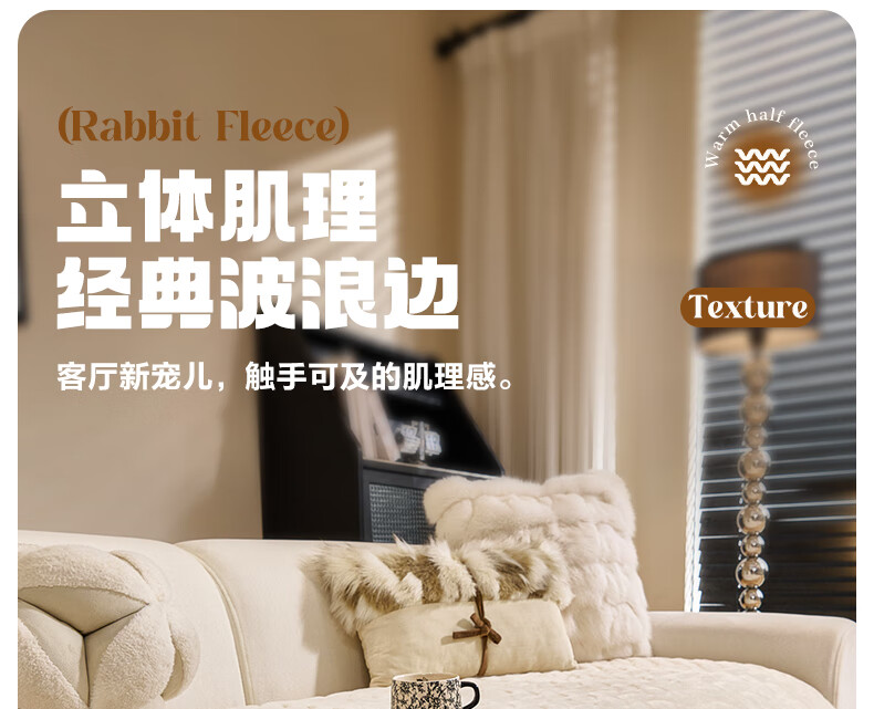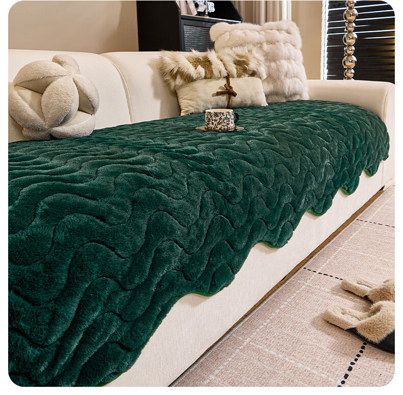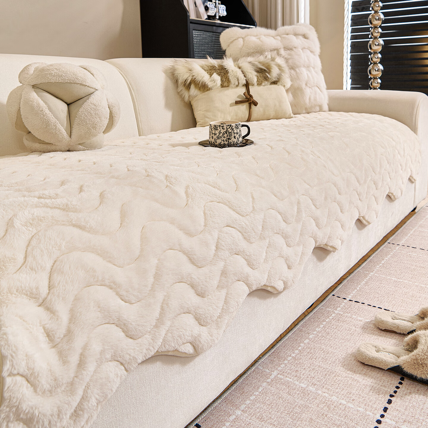 金拾美月兔兔绒沙发垫2026冬季新款加厚盖布冬天直排防滑毛绒沙发坐垫套 异形小兔毛-白色 70cm*70cm