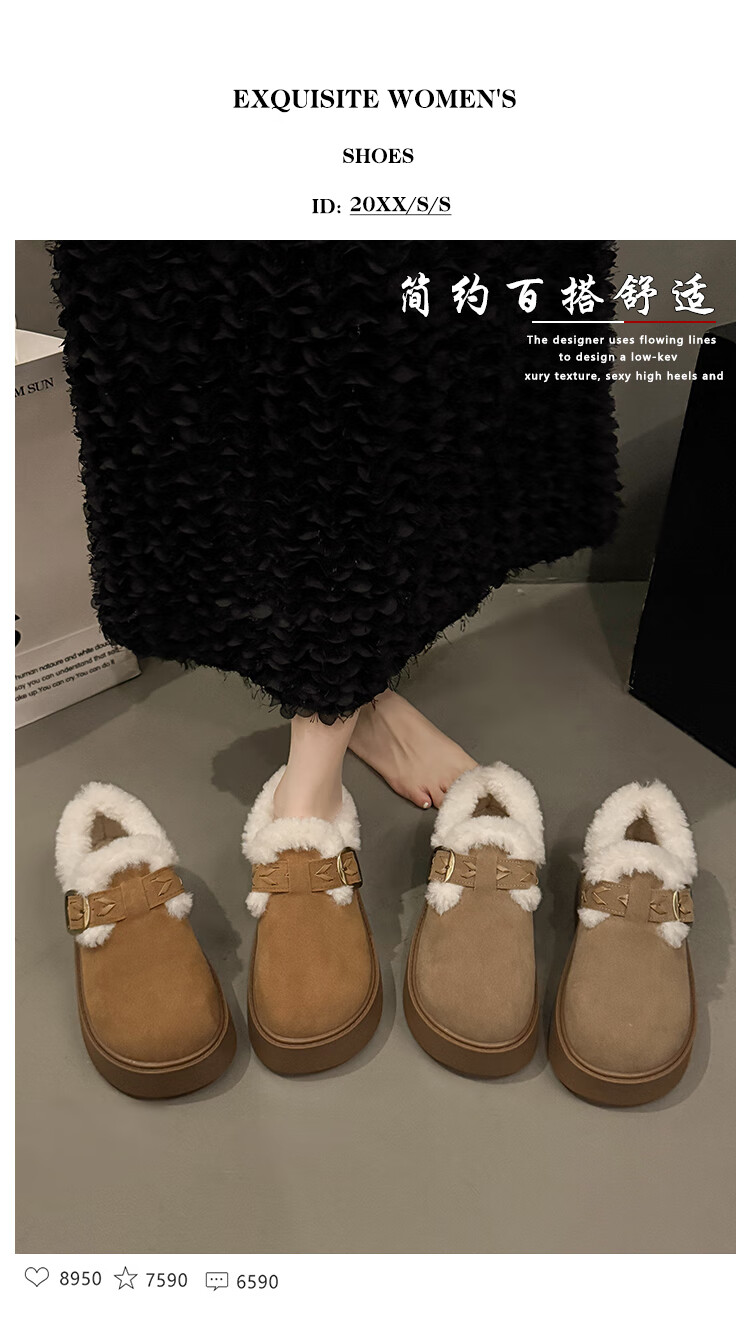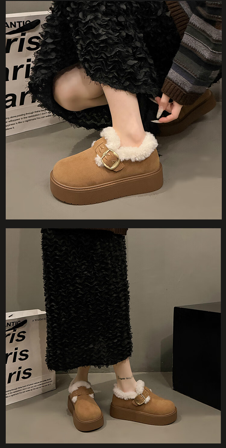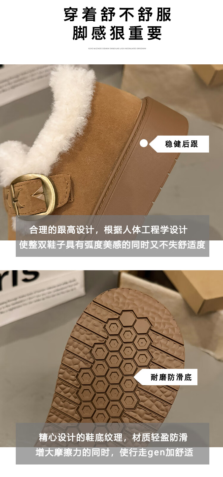 稻草人(MEXICAN)厚底加绒勃肯鞋女2026新款冬季爆款保暖豆豆棉鞋子外穿毛毛雪地靴 黄棕色.【专柜版】 店主推荐95%买家选择 35