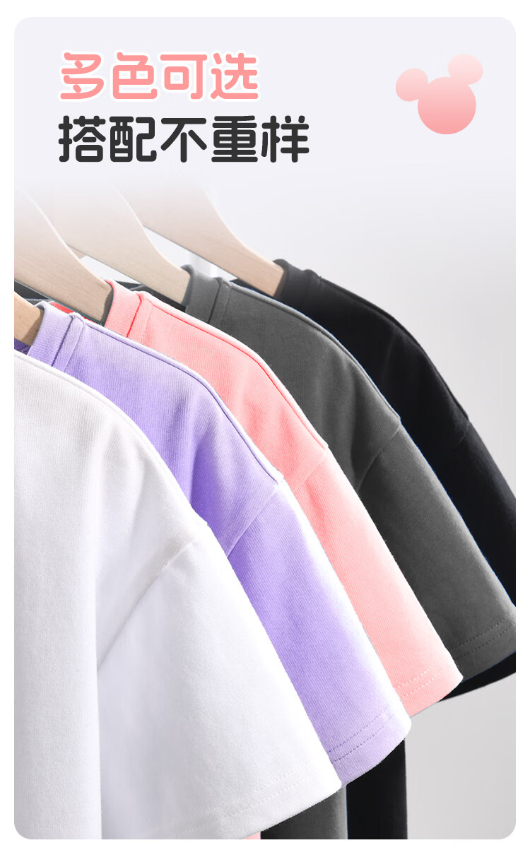 迪士尼(Disney)童装儿童夏季运动套装2026新款休闲百搭女童短袖T恤潮酷男童夏装 迪悠闲柿子红+纯色黑 170