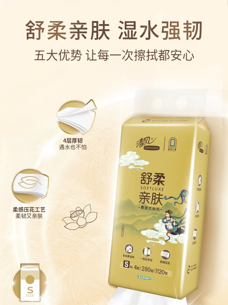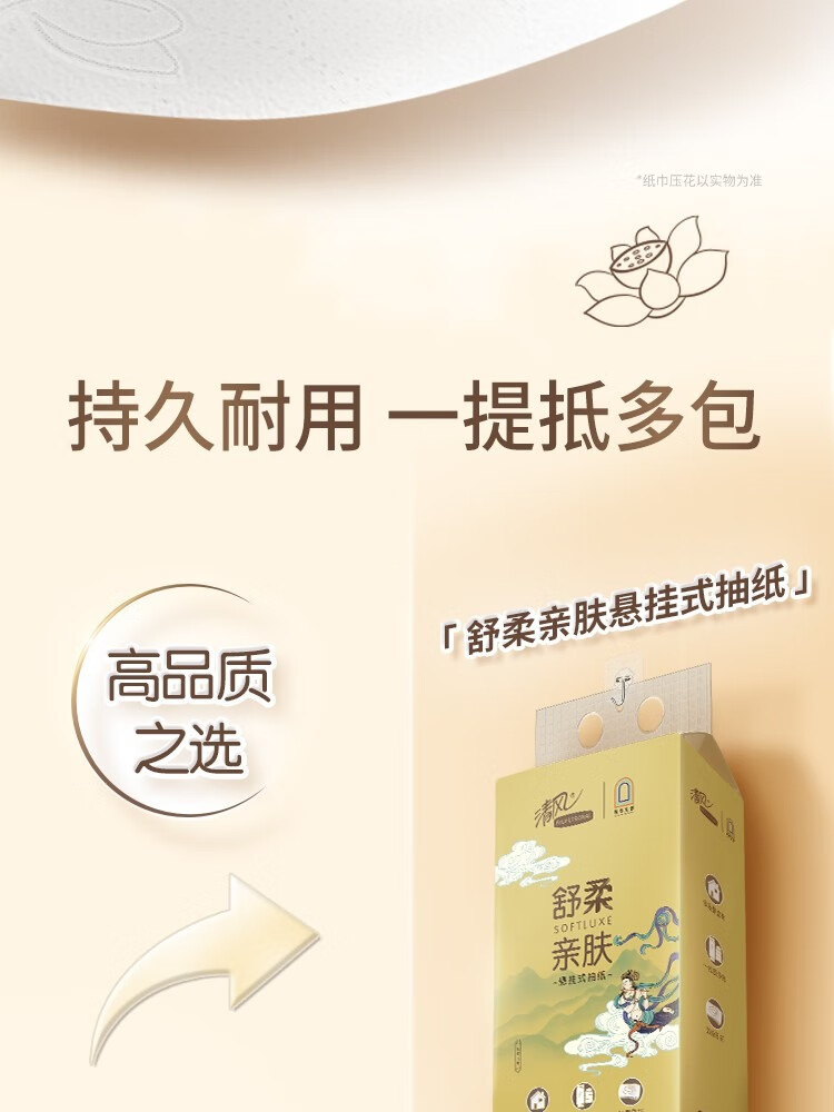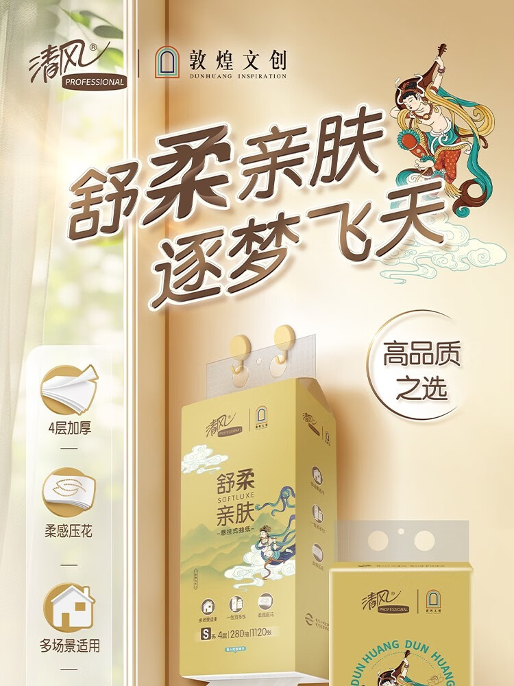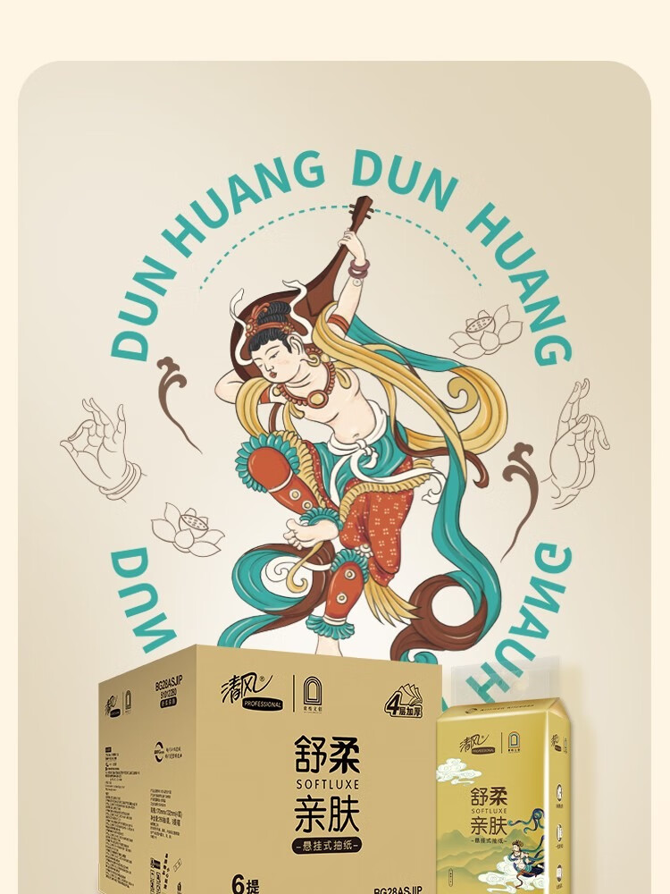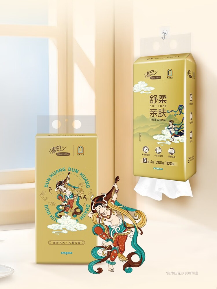 清风敦煌文创联名 金装系列悬挂式抽纸立体压花 4层280抽6包整箱 BG28ASJIP