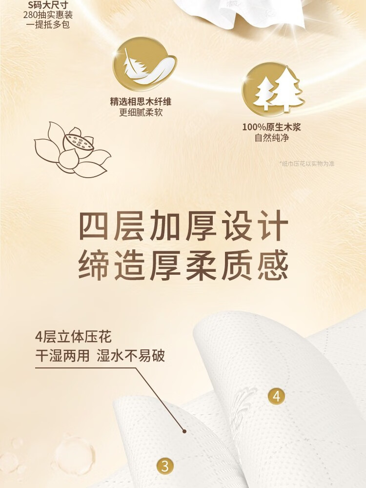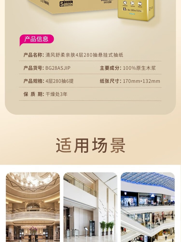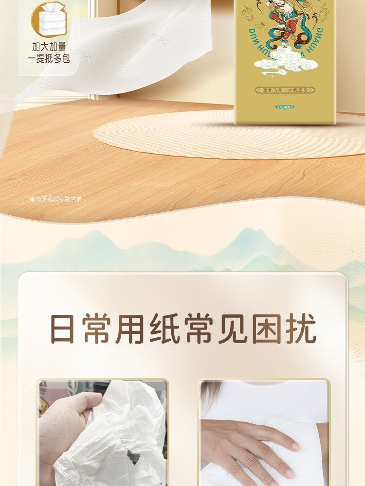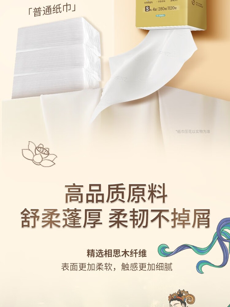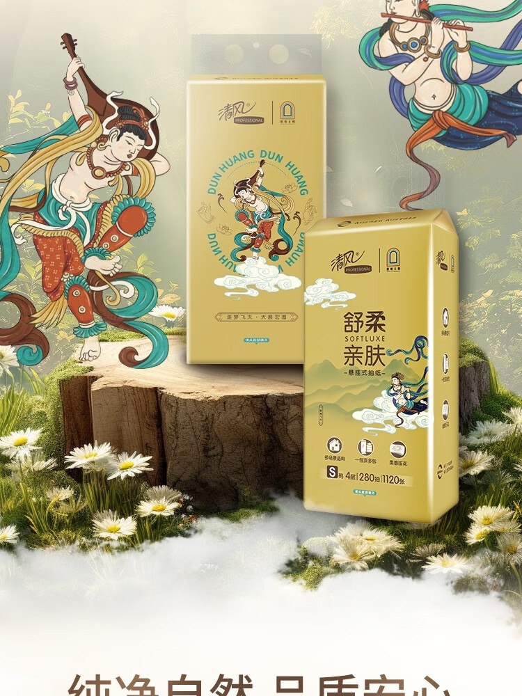 清风敦煌文创联名 金装系列悬挂式抽纸立体压花 4层280抽6包整箱 BG28ASJIP