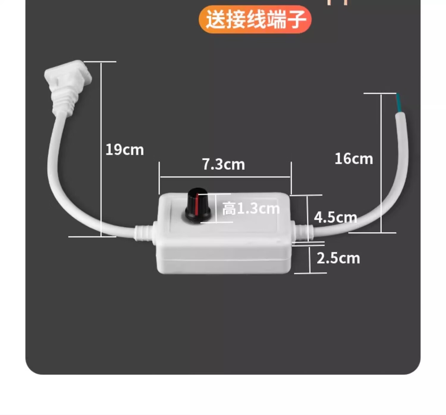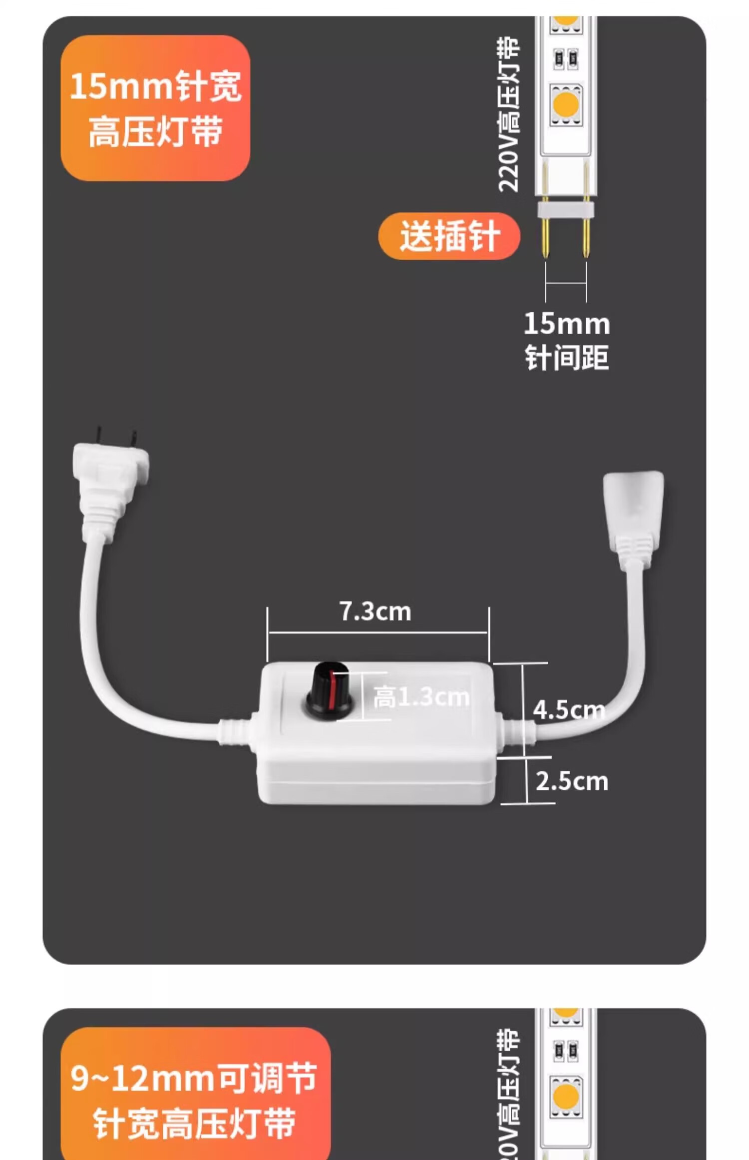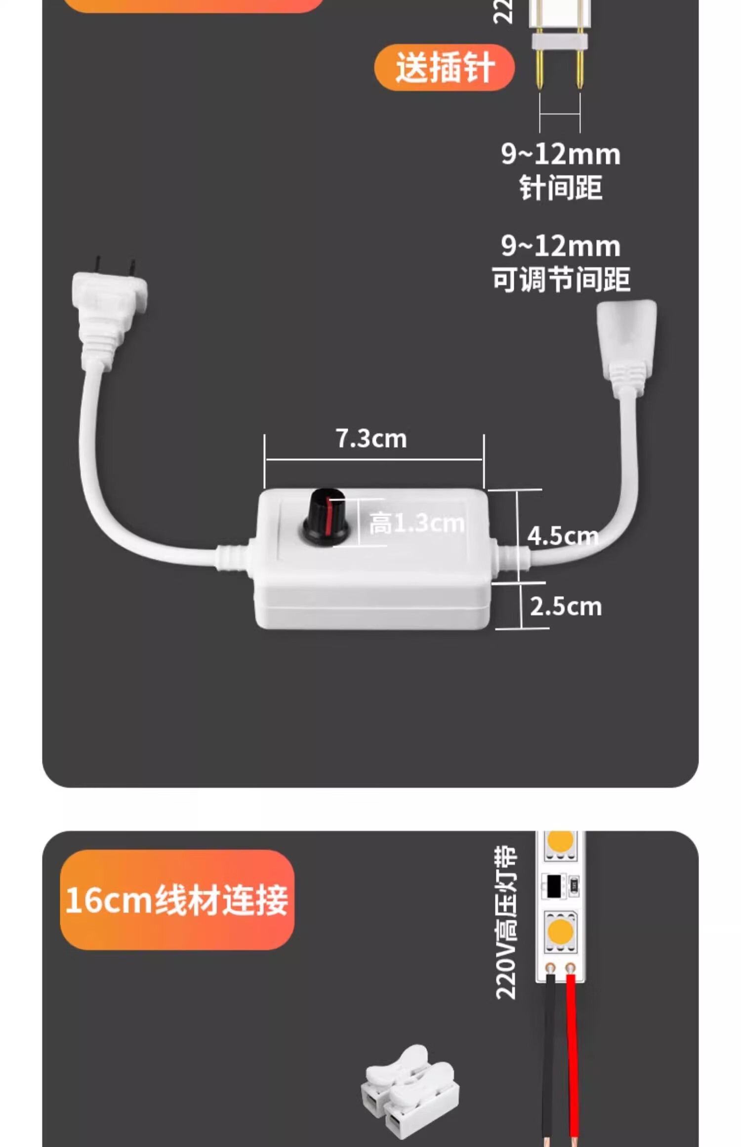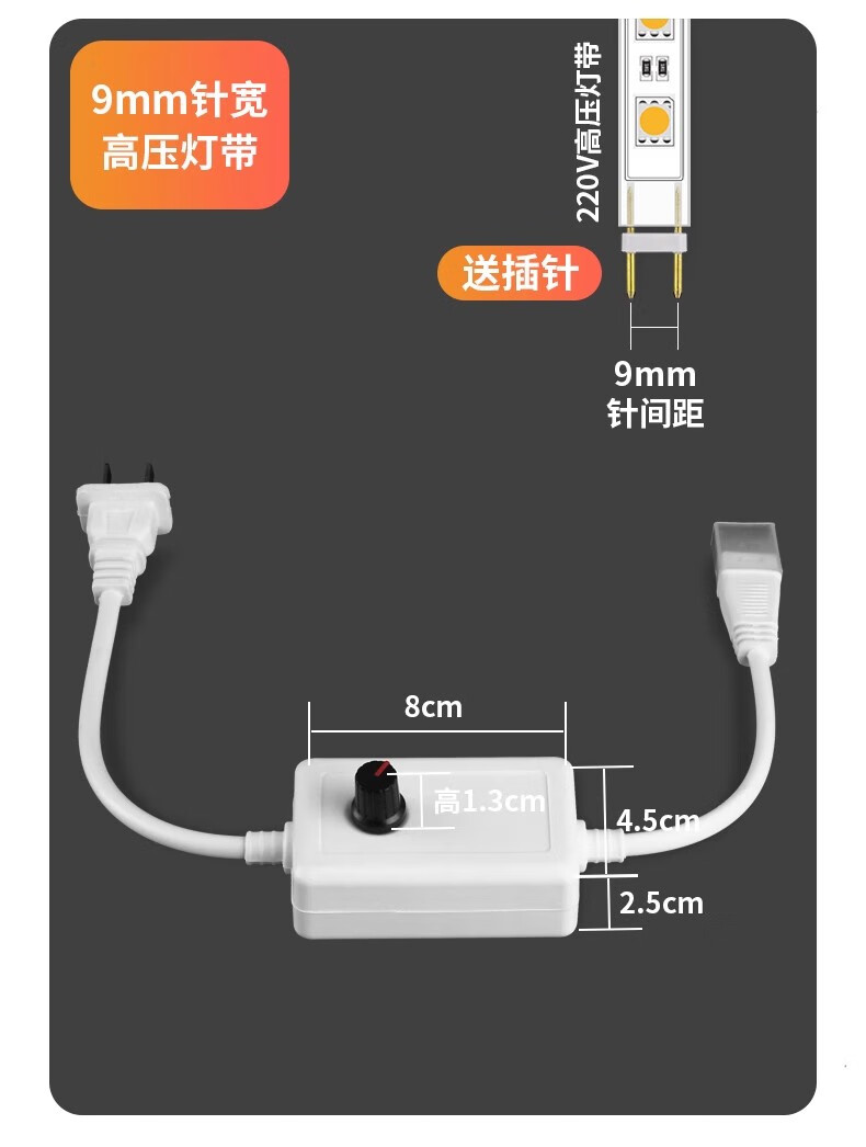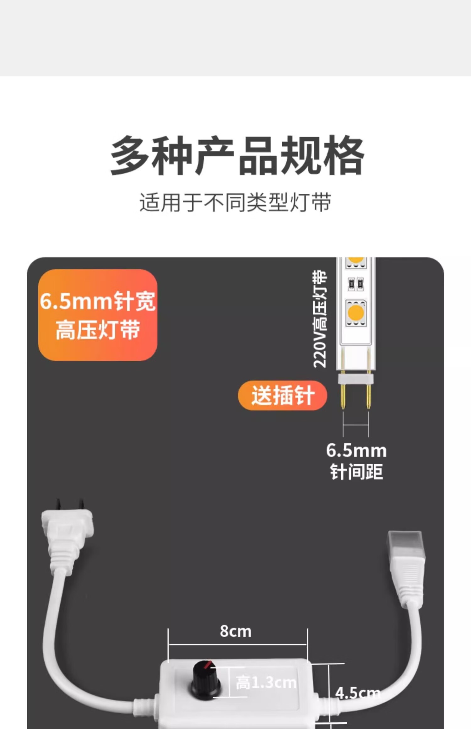 拉伯塔220V高压灯带专用调光器LED灯条插头单色亮度无极调压控制器 针间距6.5mm(最长可带500w)