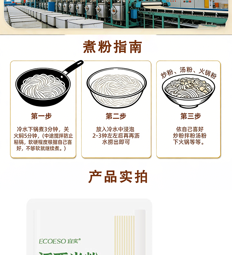 宜实(ECOESO)江西米粉正宗无添加干米线螺蛳粉炒粉汤粉南昌拌粉免泡即煮不含胶 【免泡无胶无淀粉】江西米粉2斤