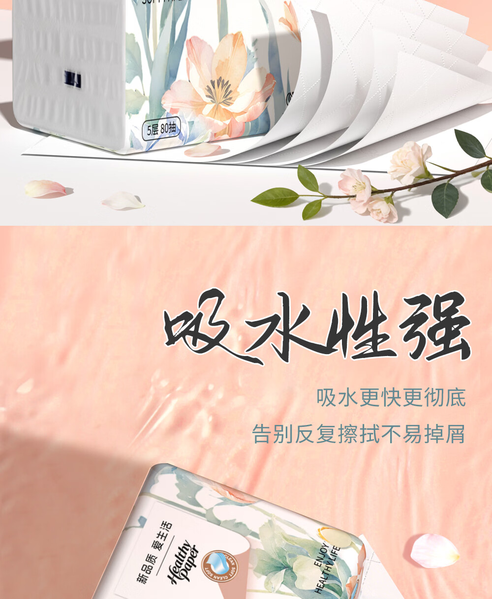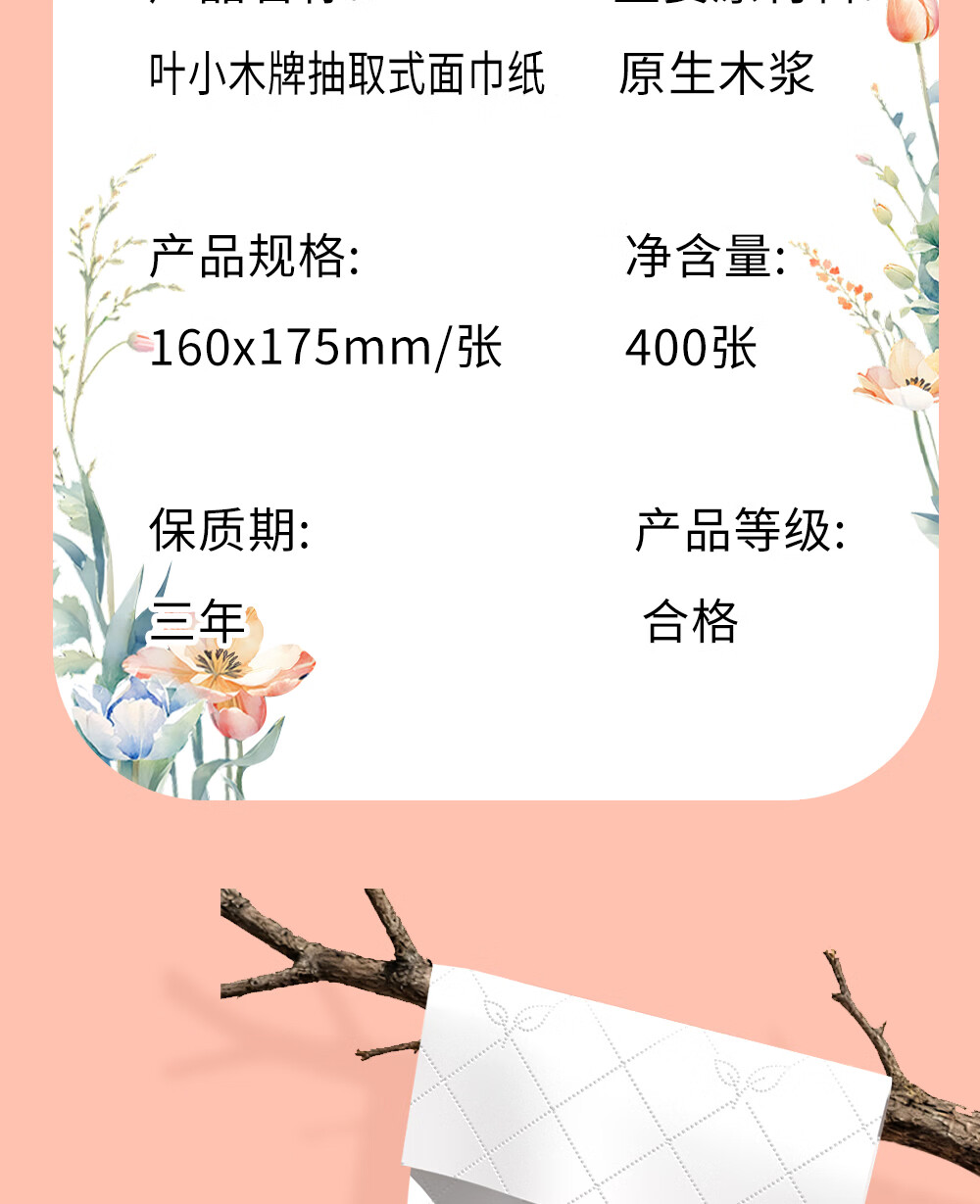叶小木抽纸纸巾加厚大尺寸整箱家用批发纸抽餐巾纸擦手纸卫生纸巾 【175*160】 5层 400张*6包
