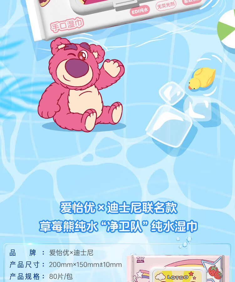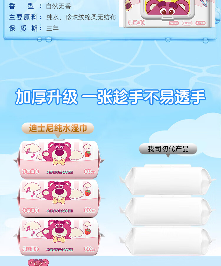 迪士尼正版授权手口湿巾EDI纯水无敏珍珠纹加大加厚婴儿湿巾 手口湿巾80抽1包【新品尝鲜】