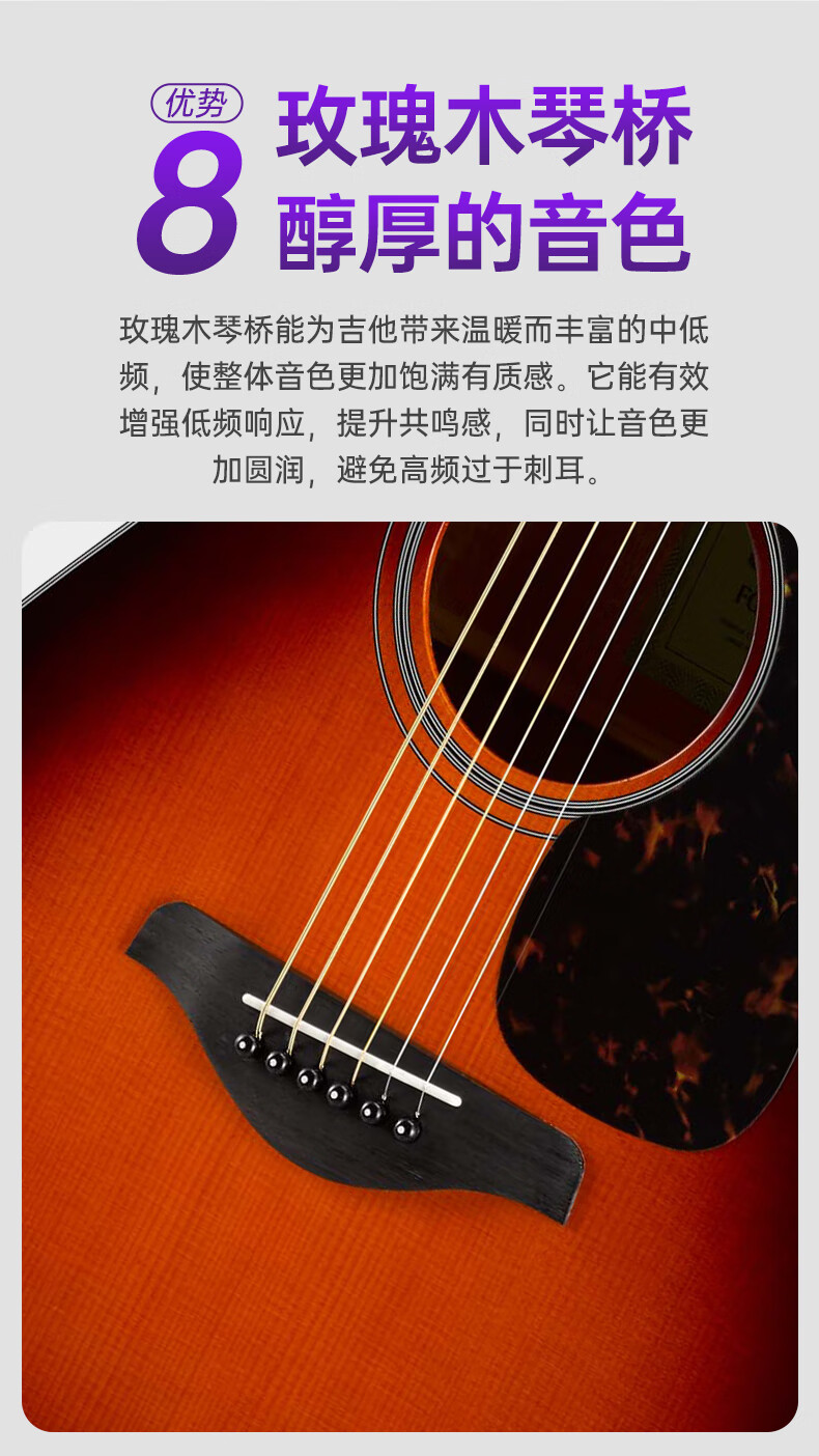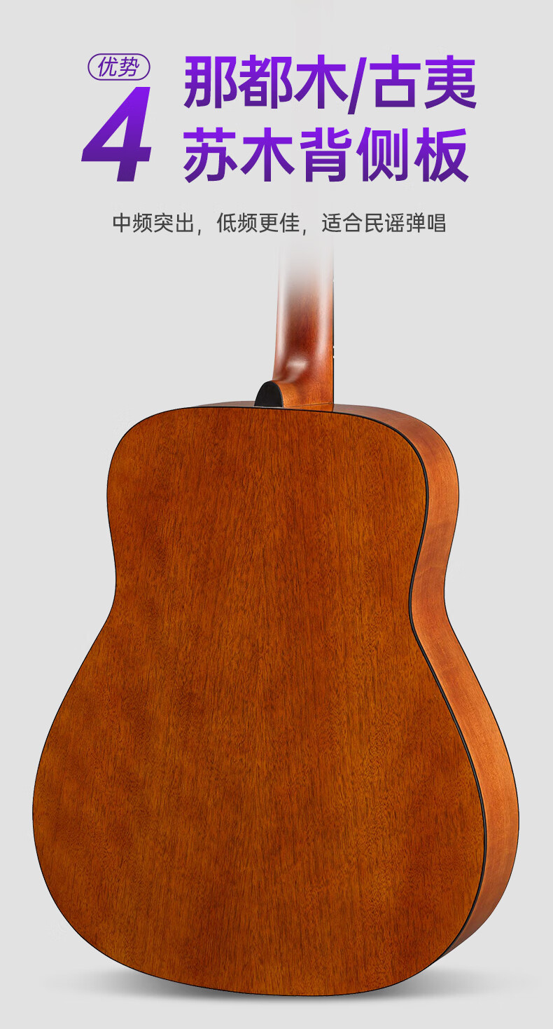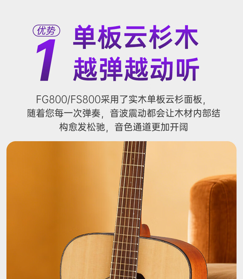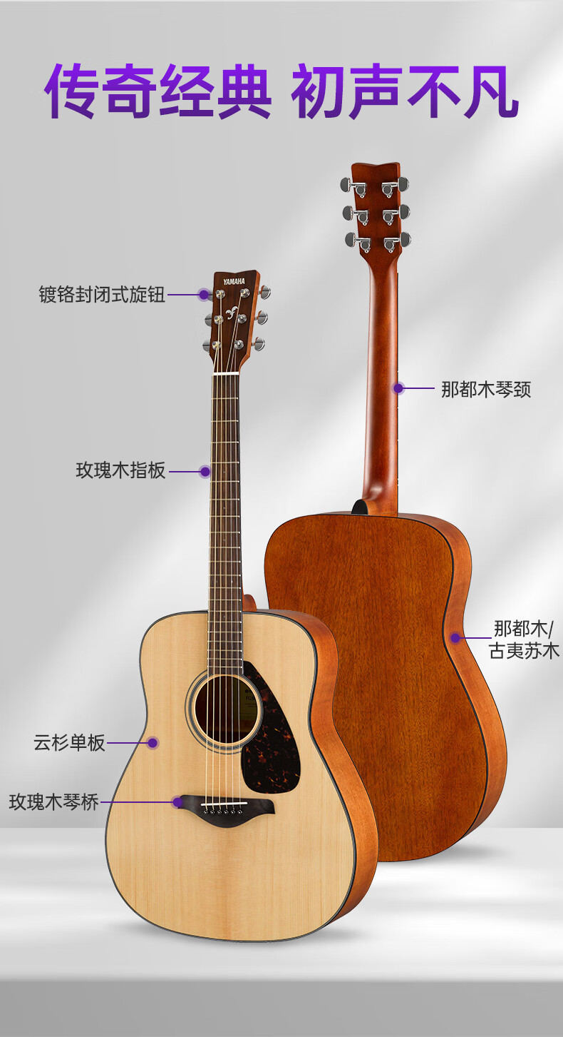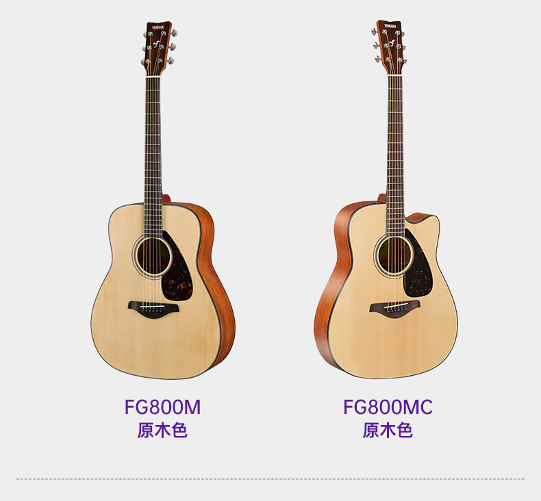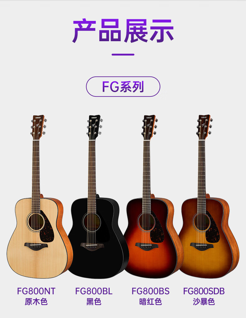 雅马哈(YAMAHA)FG800M 原声款 实木单板 初学者民谣吉他 圆角吉它 41英寸原木色