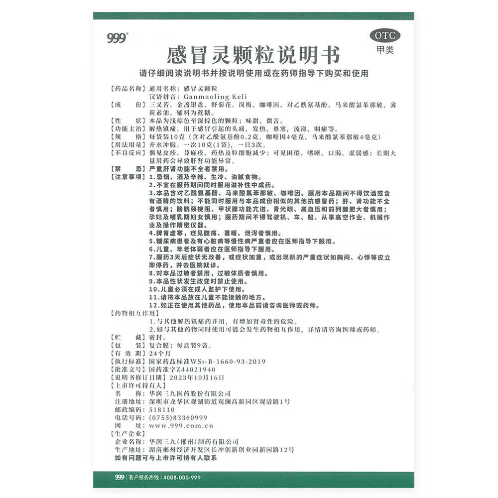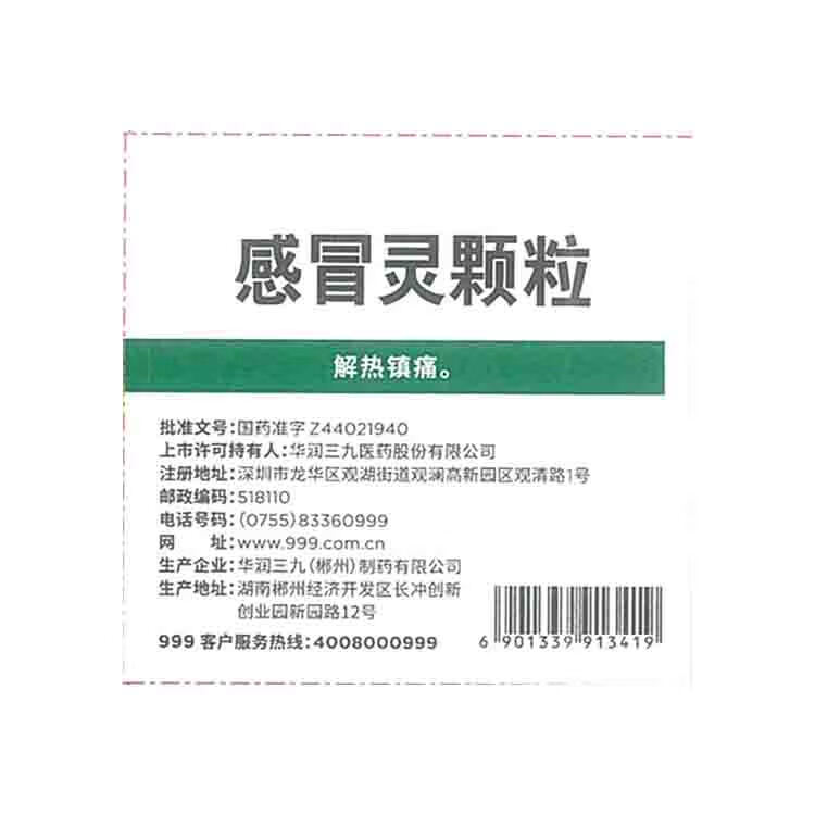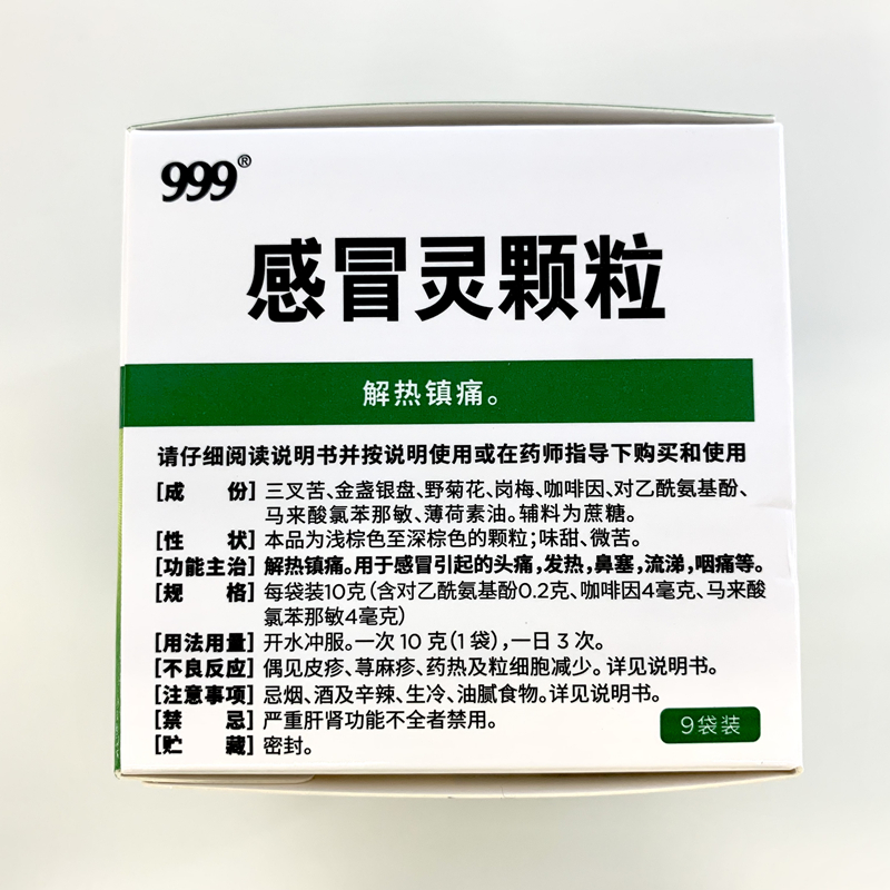 999 三九感冒灵颗粒 10g*9袋解热镇痛用于感冒引起的头痛发热鼻塞流涕咽痛,缓解感冒症状