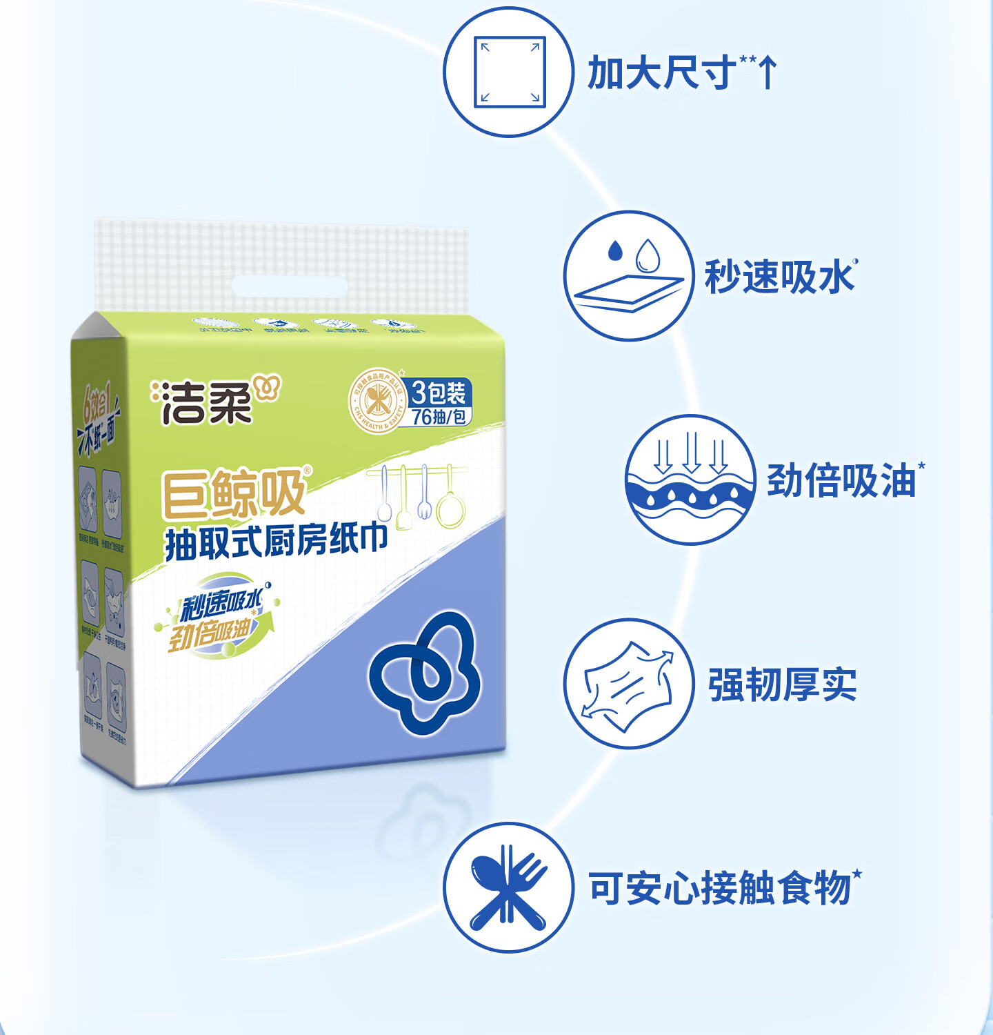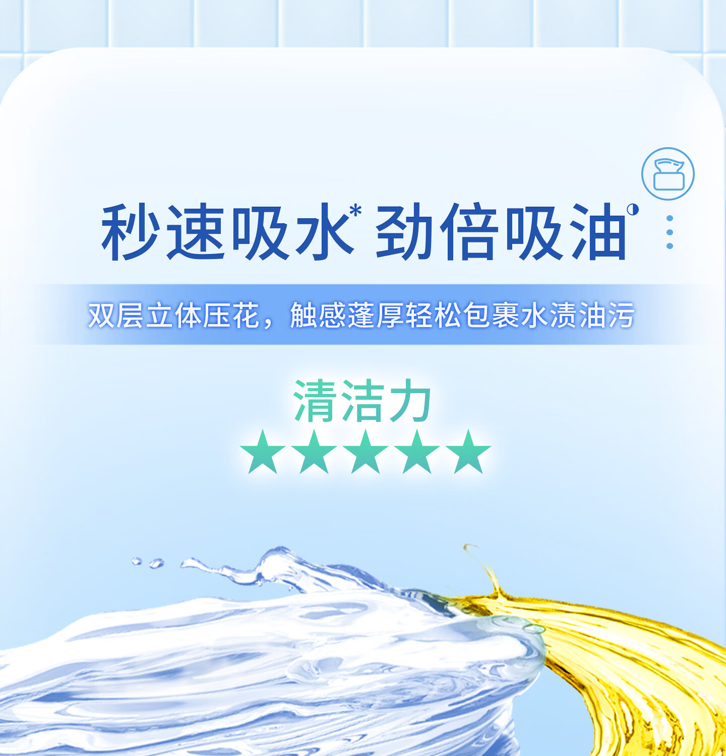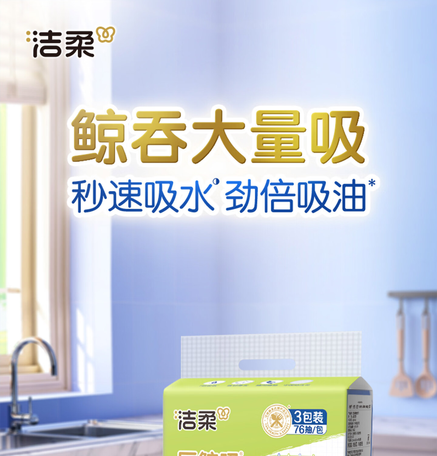 洁柔厨房用纸75抽*3包擦手纸开学清洁加厚吸水吸油污一次性懒人抹布
