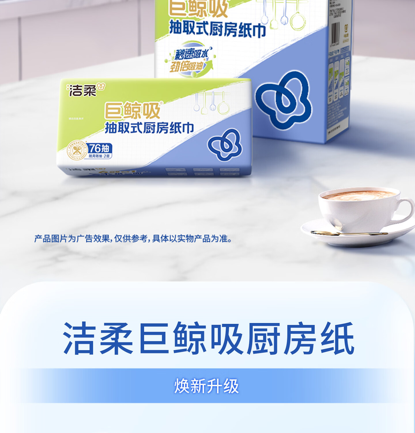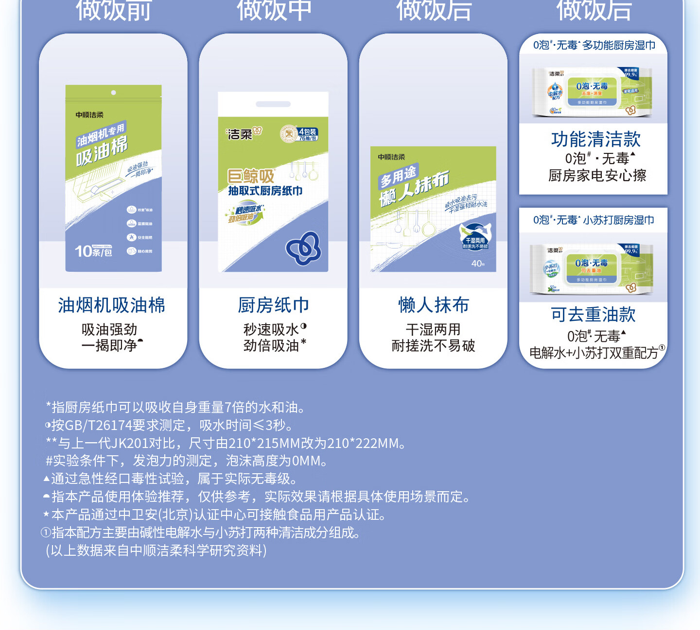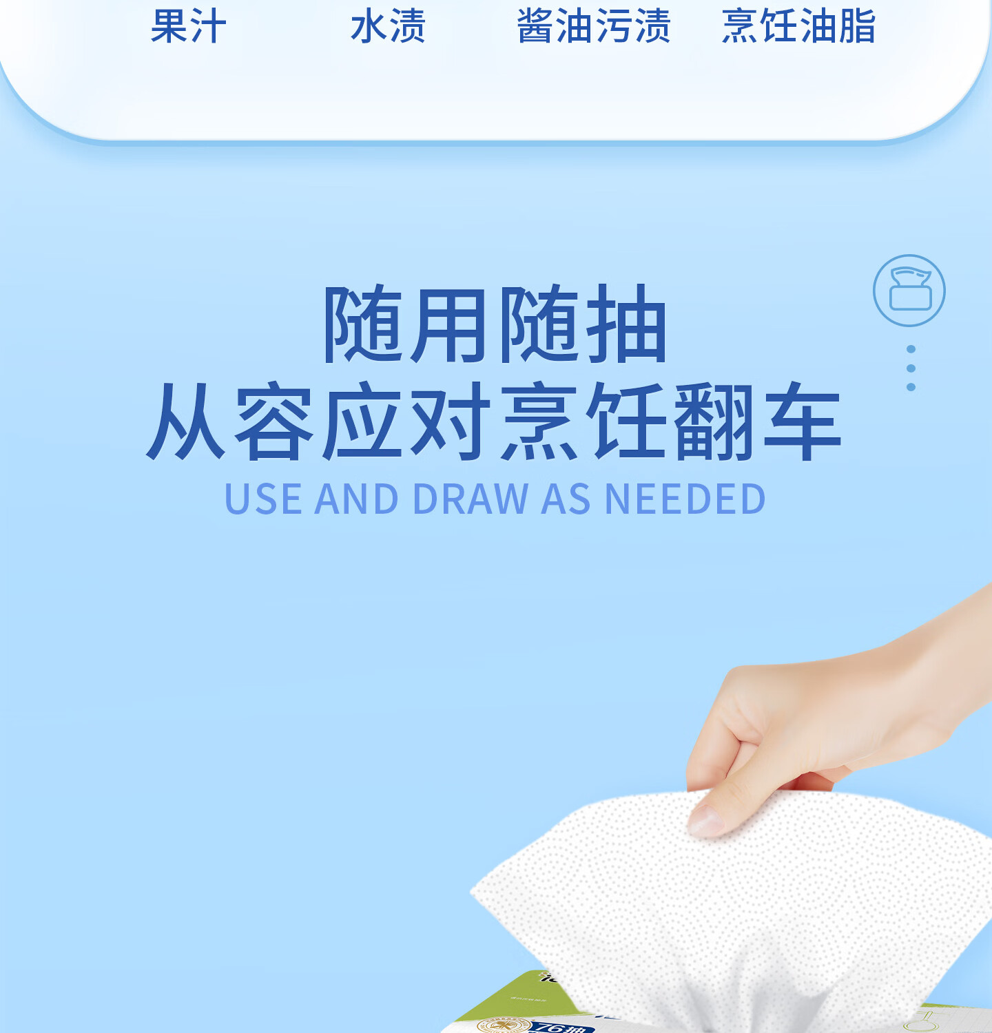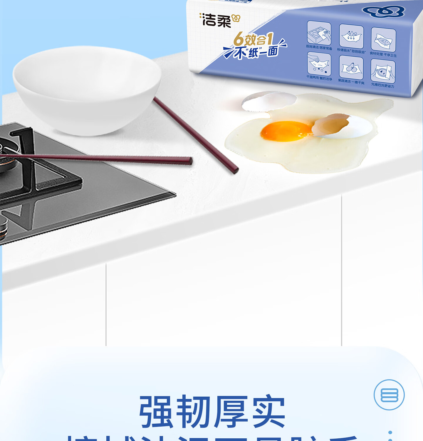 洁柔厨房用纸75抽*3包擦手纸开学清洁加厚吸水吸油污一次性懒人抹布