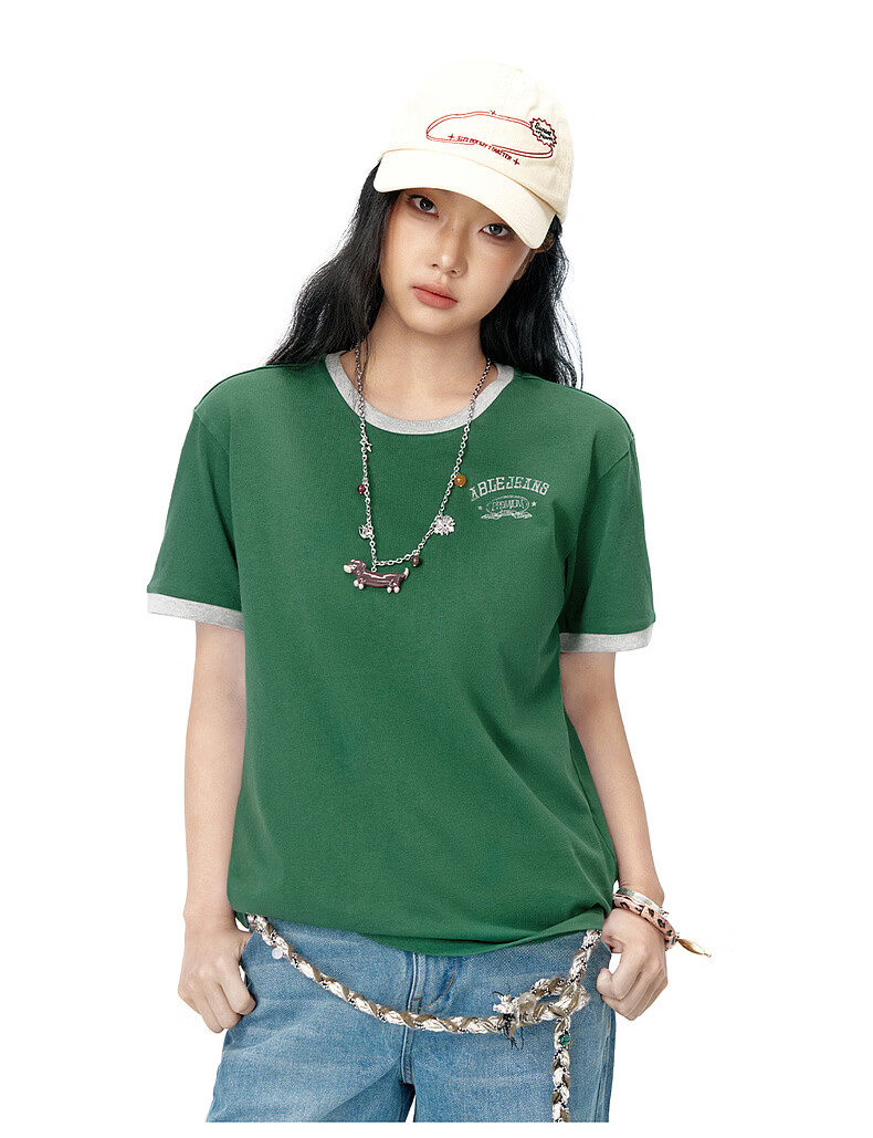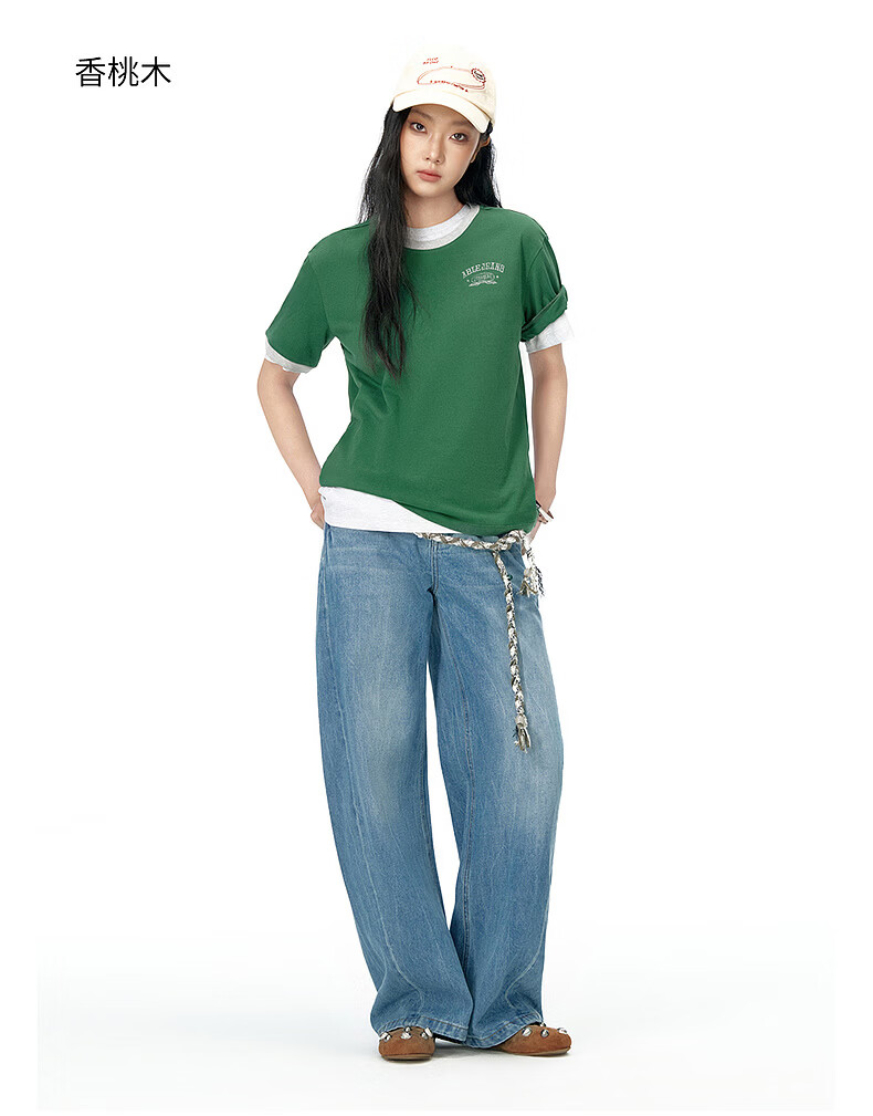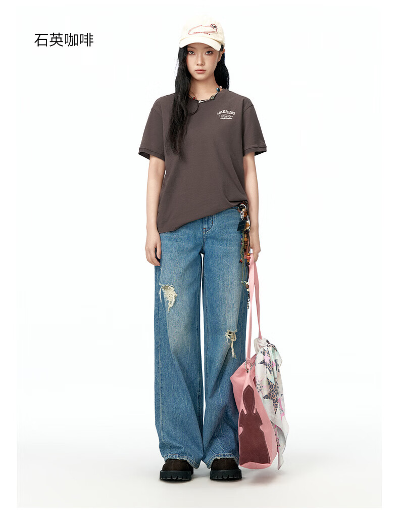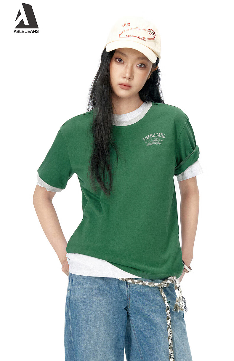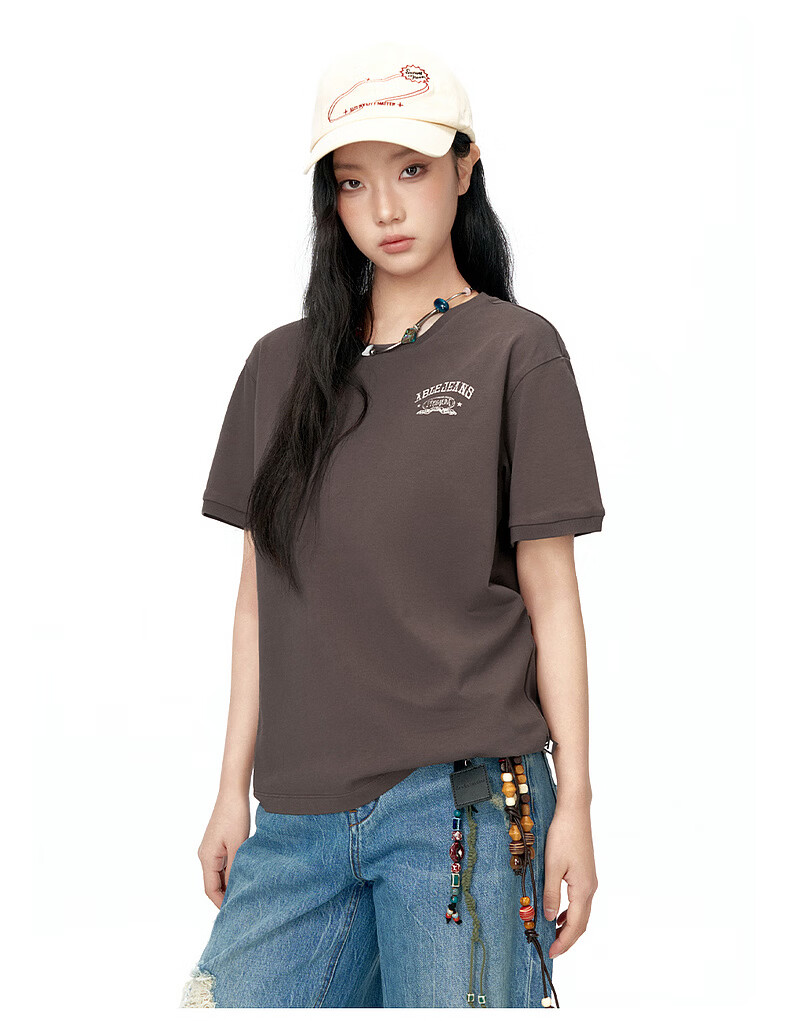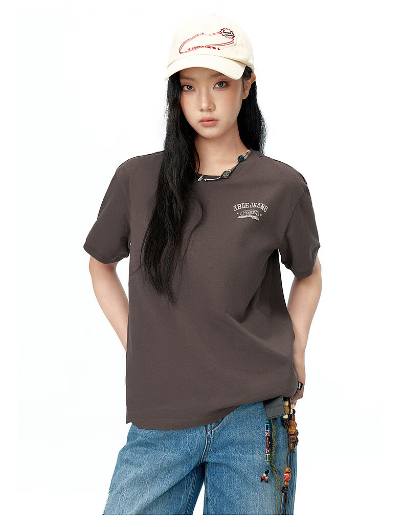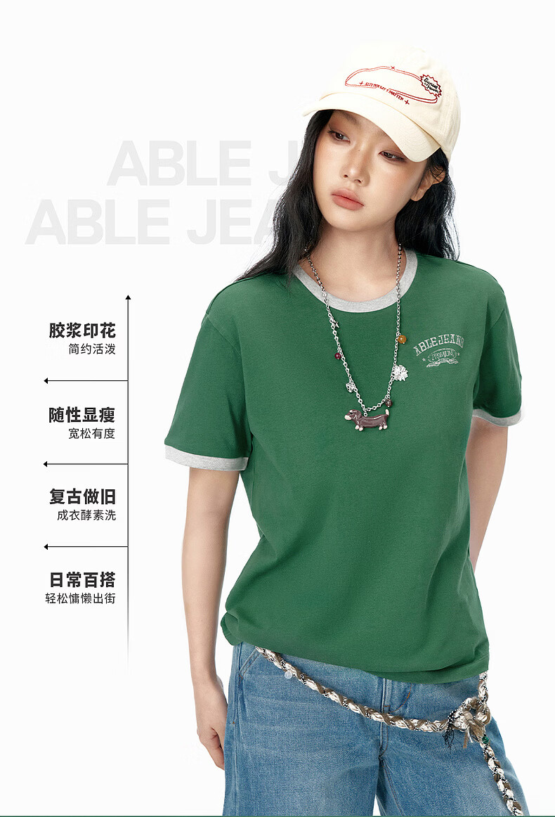 ABLE JEANS 26春夏新款女士T恤都市旷野复古百搭宽松显瘦全棉透气短袖 香桃木 XS