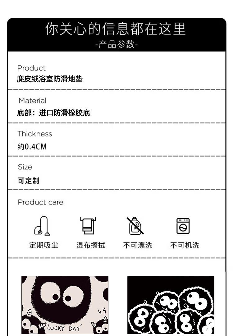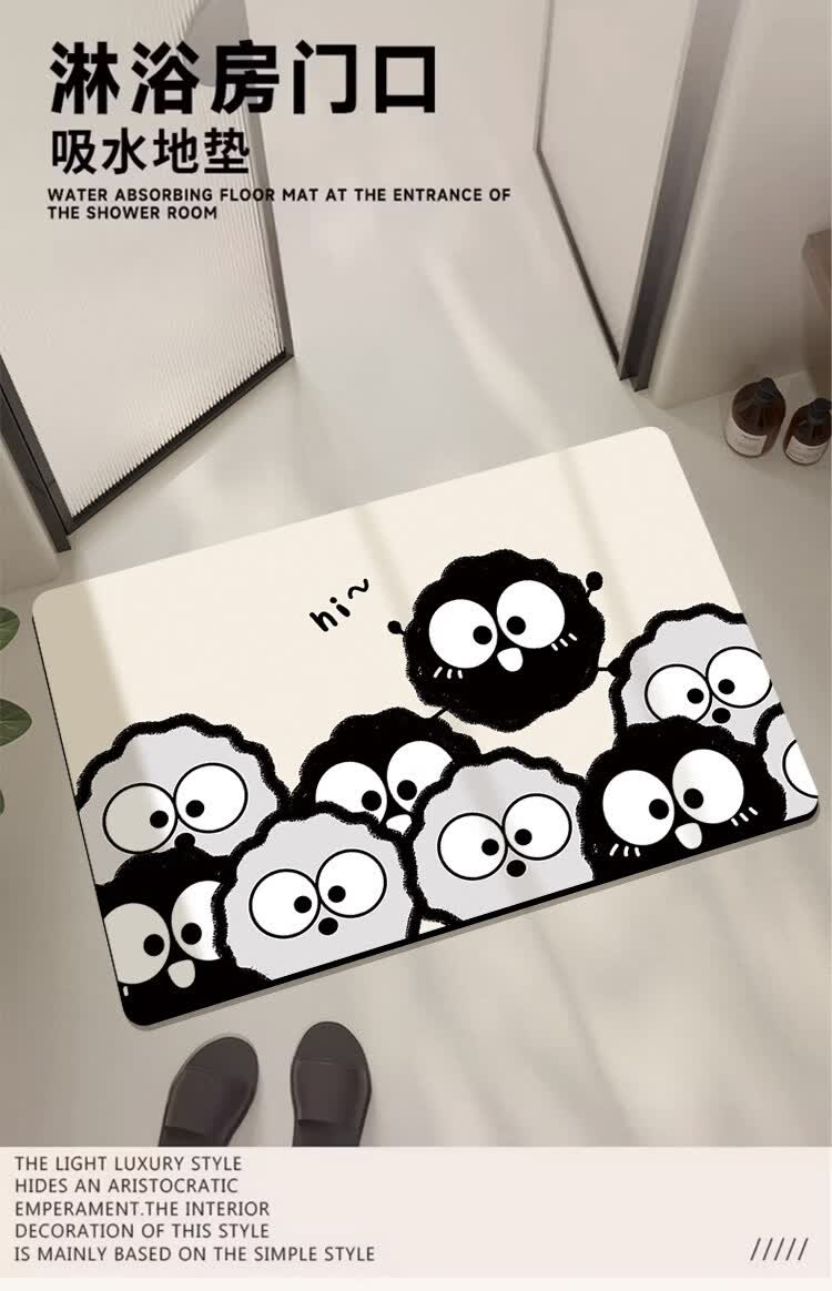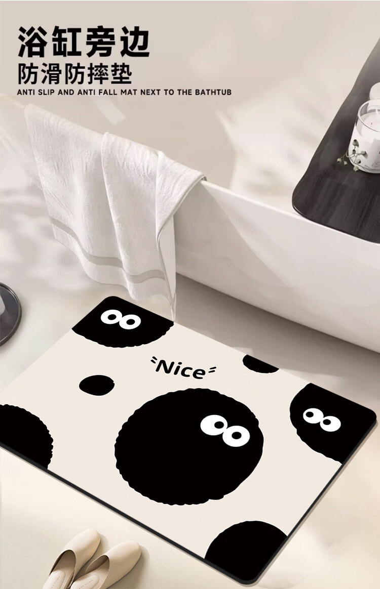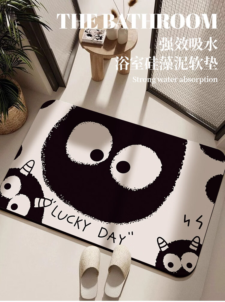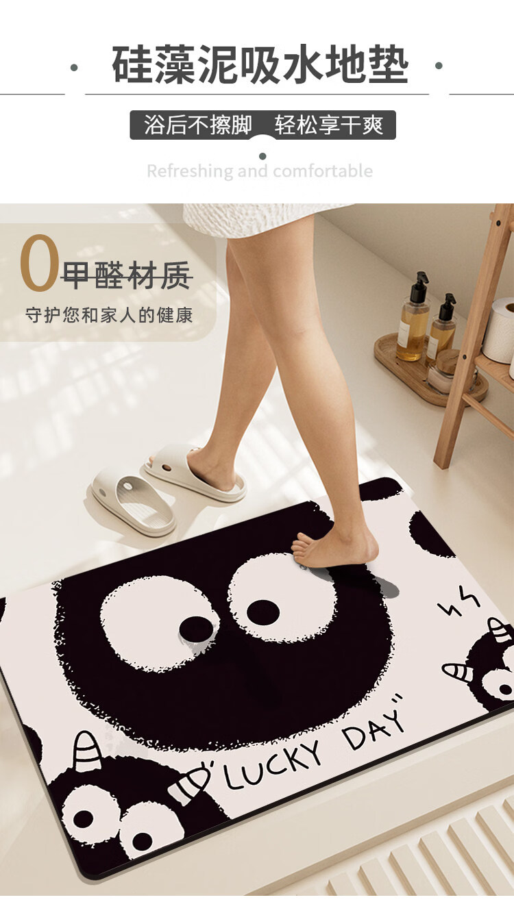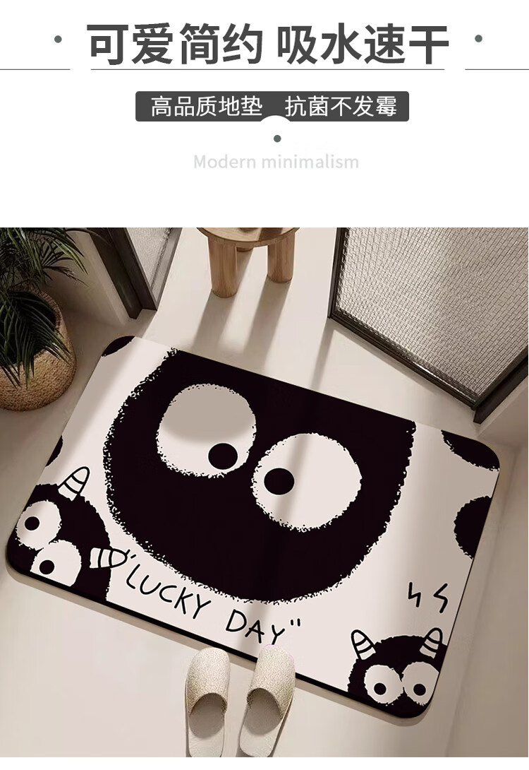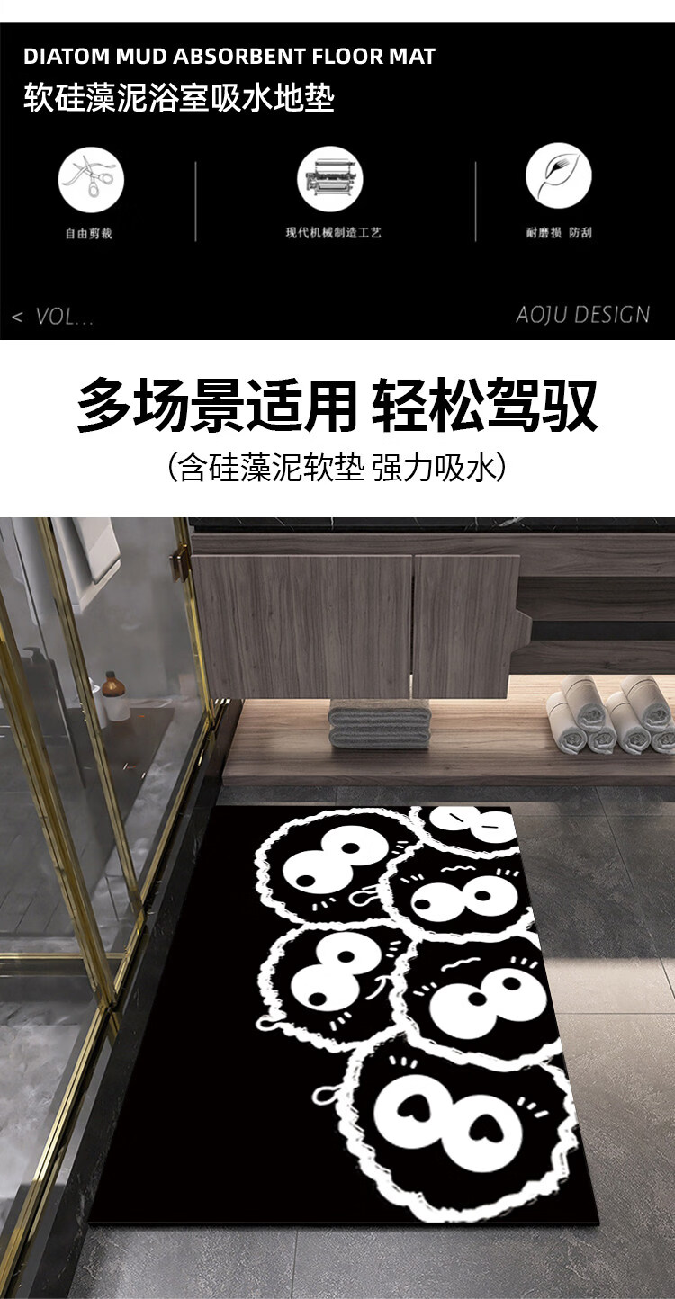 DONOYA 多罗亚硅藻泥卫生间地垫浴室门口吸水地垫2026新款浴室厕所防滑垫脚垫 三只黑煤球 1cm*1cm 【定制尺寸联系客服小姐姐哦】