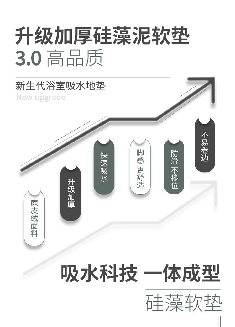DONOYA 多罗亚浴室硅藻泥卫生间地垫浴室门口吸水地垫卫生间门口吸水防滑垫脚垫 波沿律动-椭圆(硅藻泥吸水) 40cm*60cm 【速干强吸水 浴室】