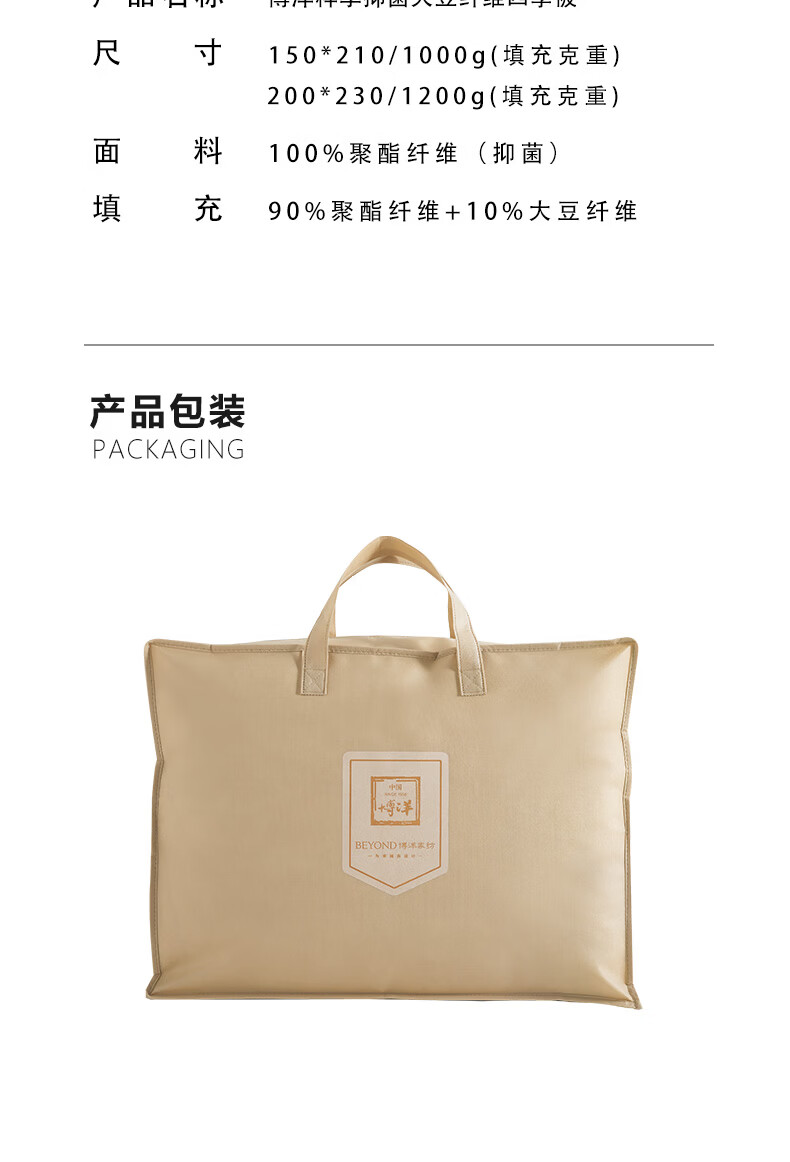 博洋(BEYOND)博洋粹享抑菌大豆纤维被 四季被 150*210cm/1000g