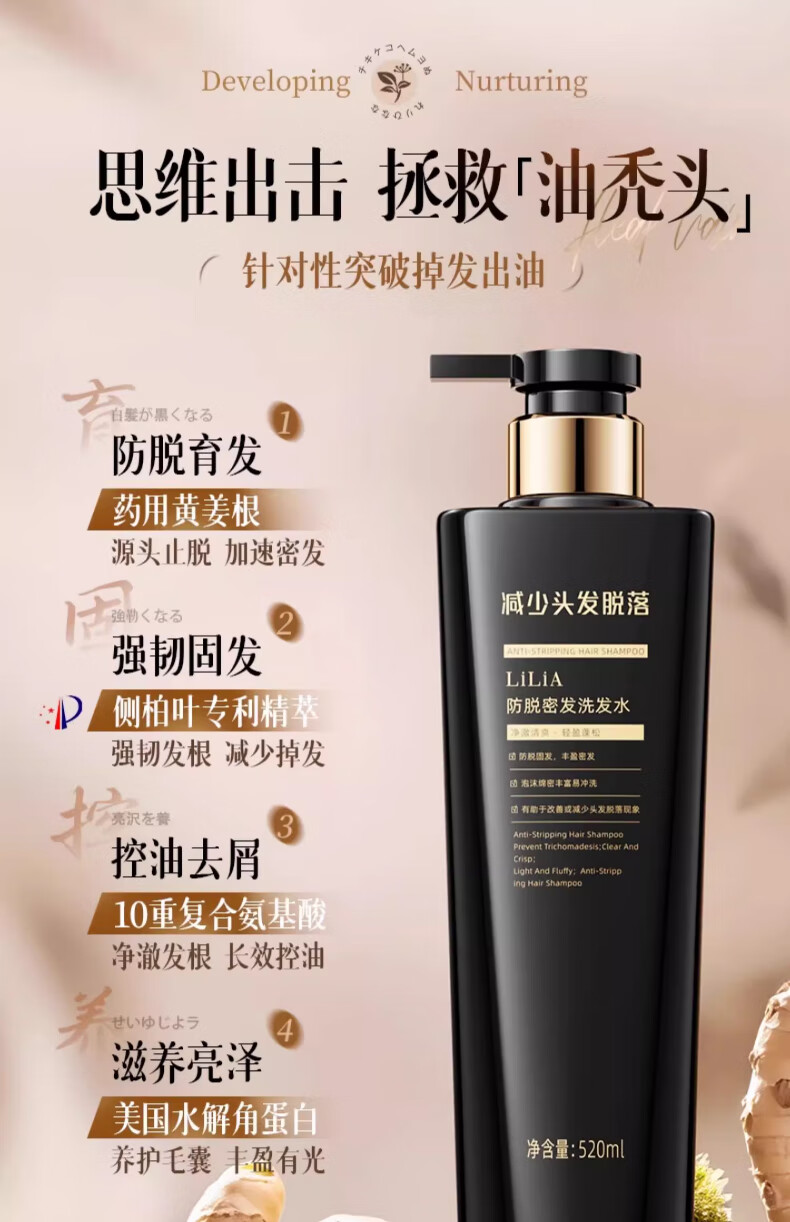 LiLiA准孕妇防脱洗发水固发控油蓬松柔顺止痒去屑产后育发膏洗发露 【防脱周期装】孕产妇防脱洗发乳520ml*3