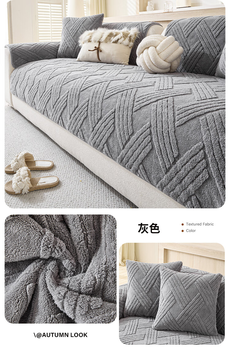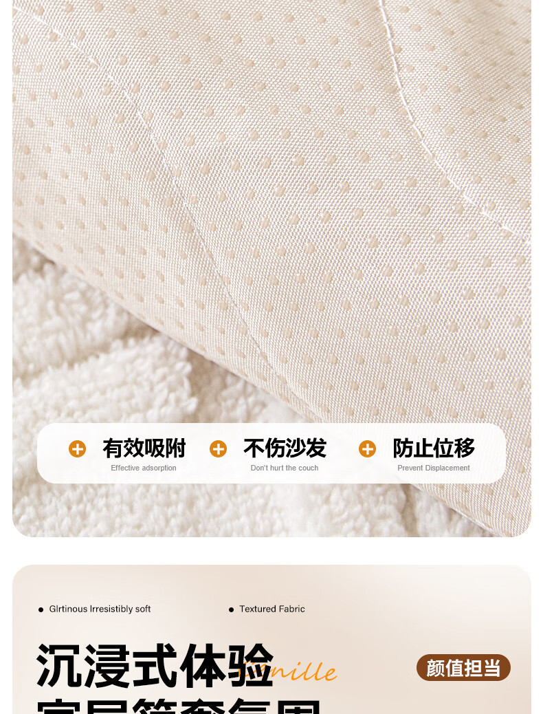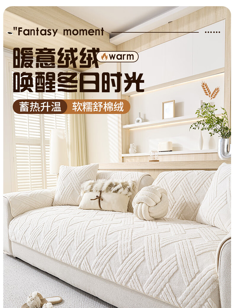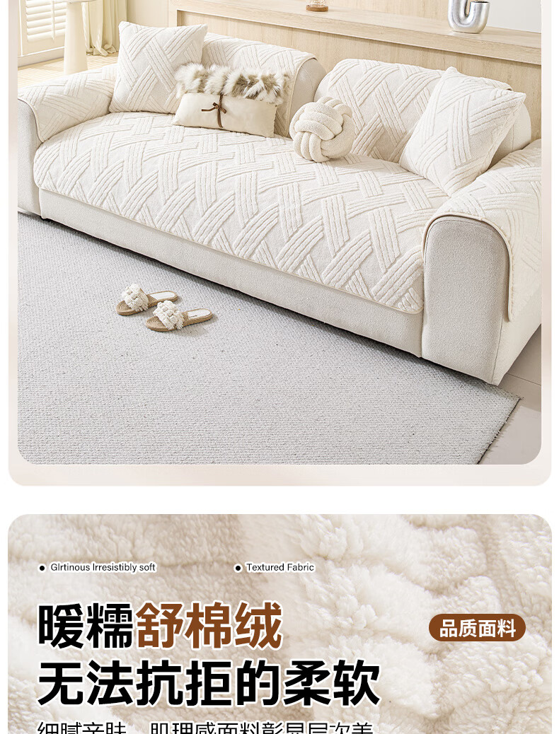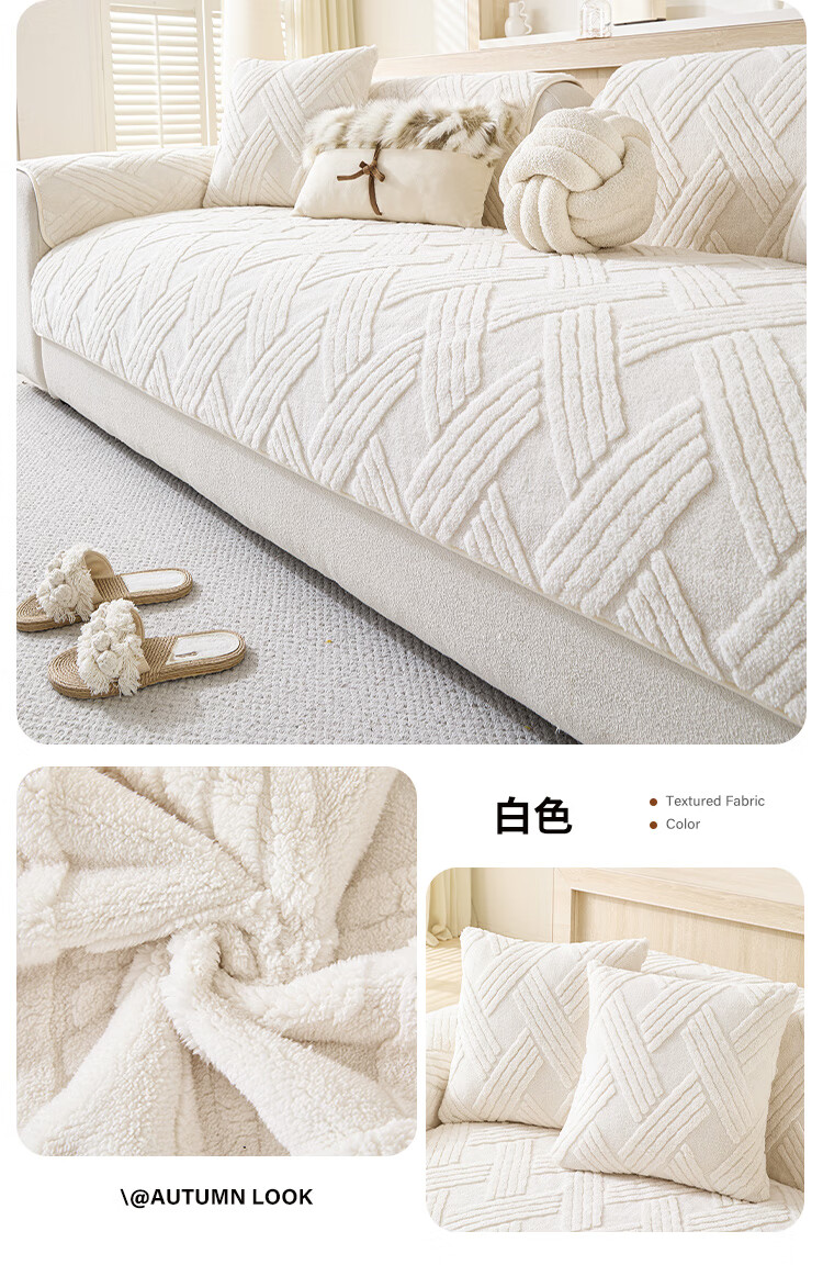 金拾美月秋冬奶油风沙发垫2026新款一片式毛绒套罩防滑高级感沙发盖布巾 直边贝栖-白色 70cm*70cm