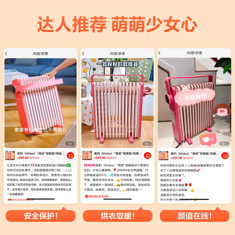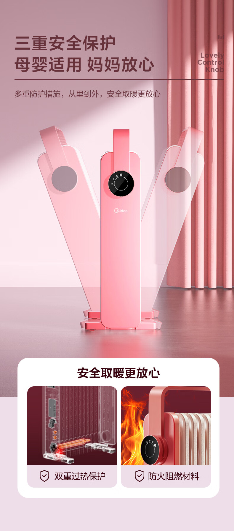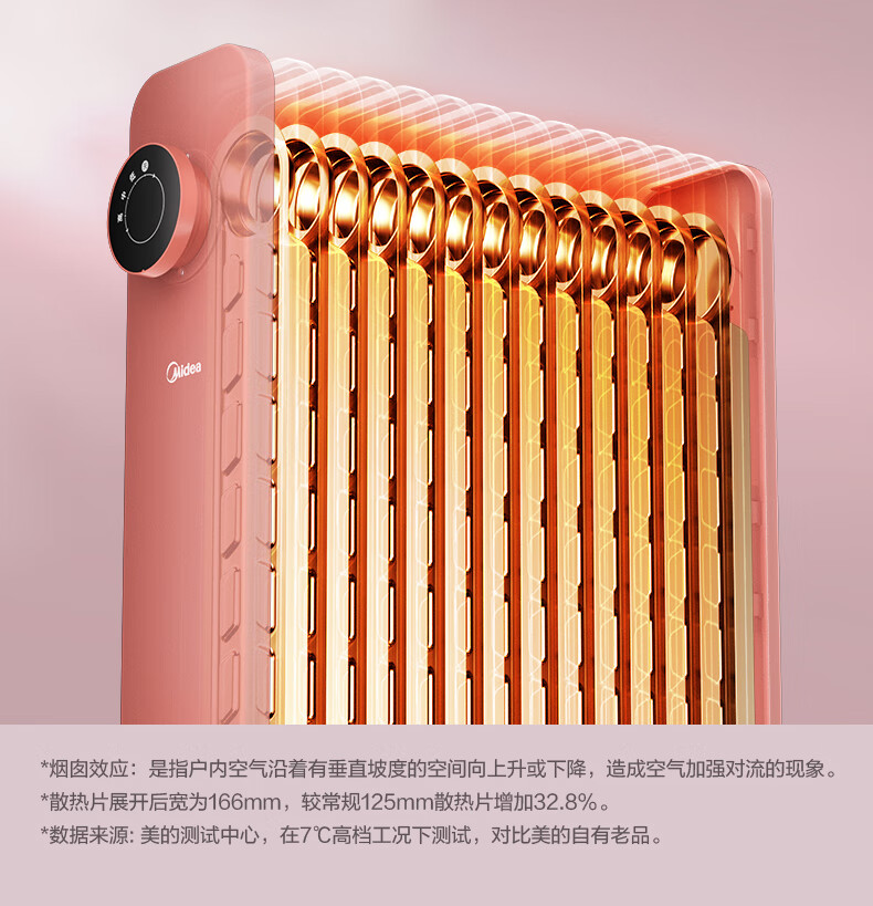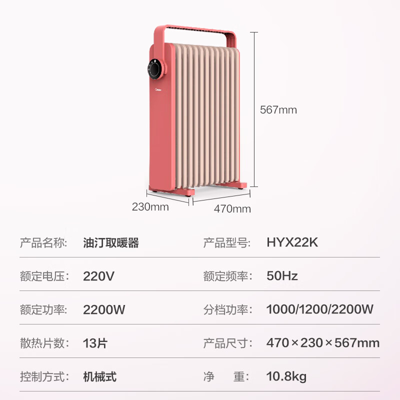 美的(Midea)【樱落】取暖器/电热油汀/油酊电暖器/电暖气家用/烤火炉/13片全屋升温速热/电热器烘衣加湿HYX22K