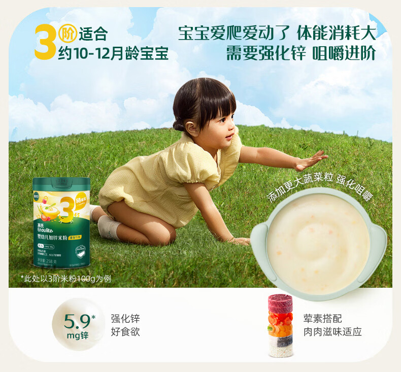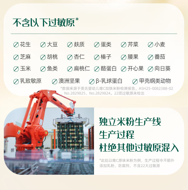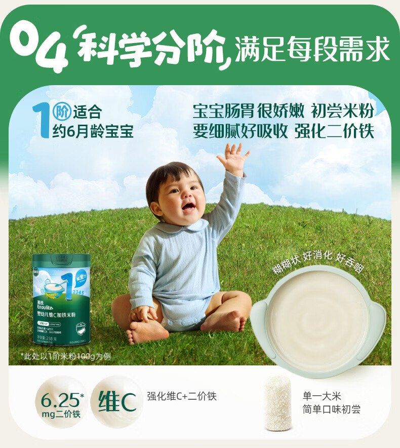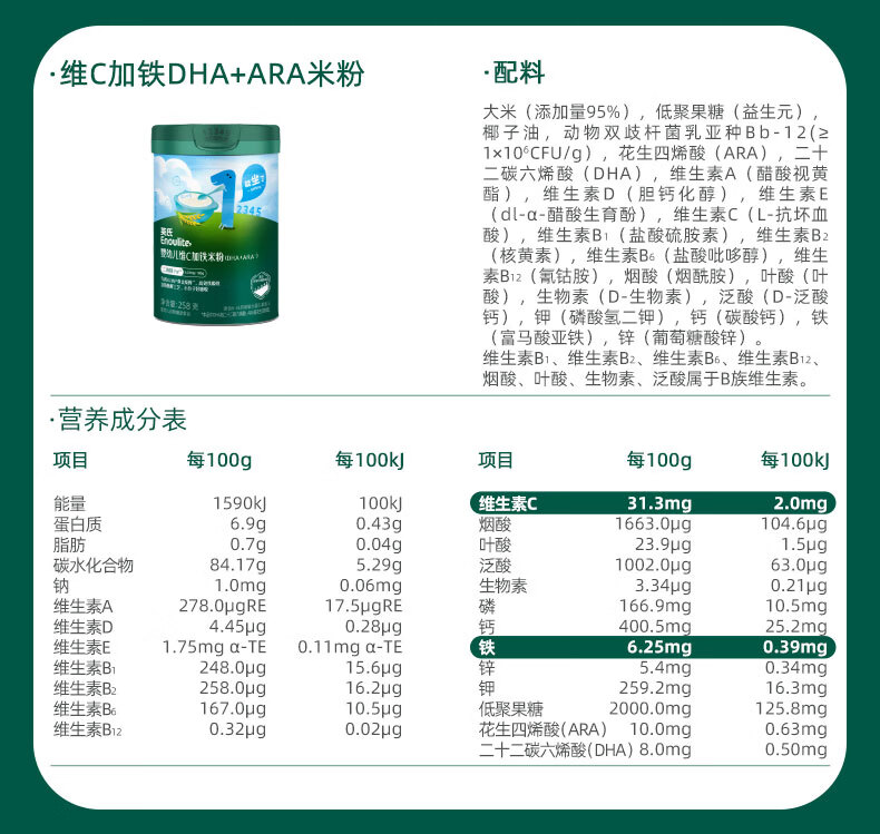 英氏婴幼儿米粉维C加铁DHA+ARA米粉258g营养宝宝辅食加铁米糊6月+
