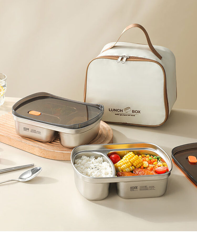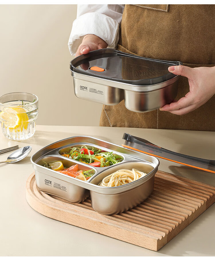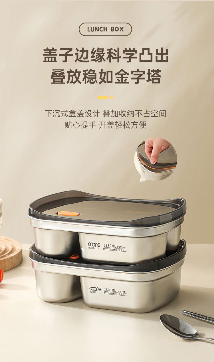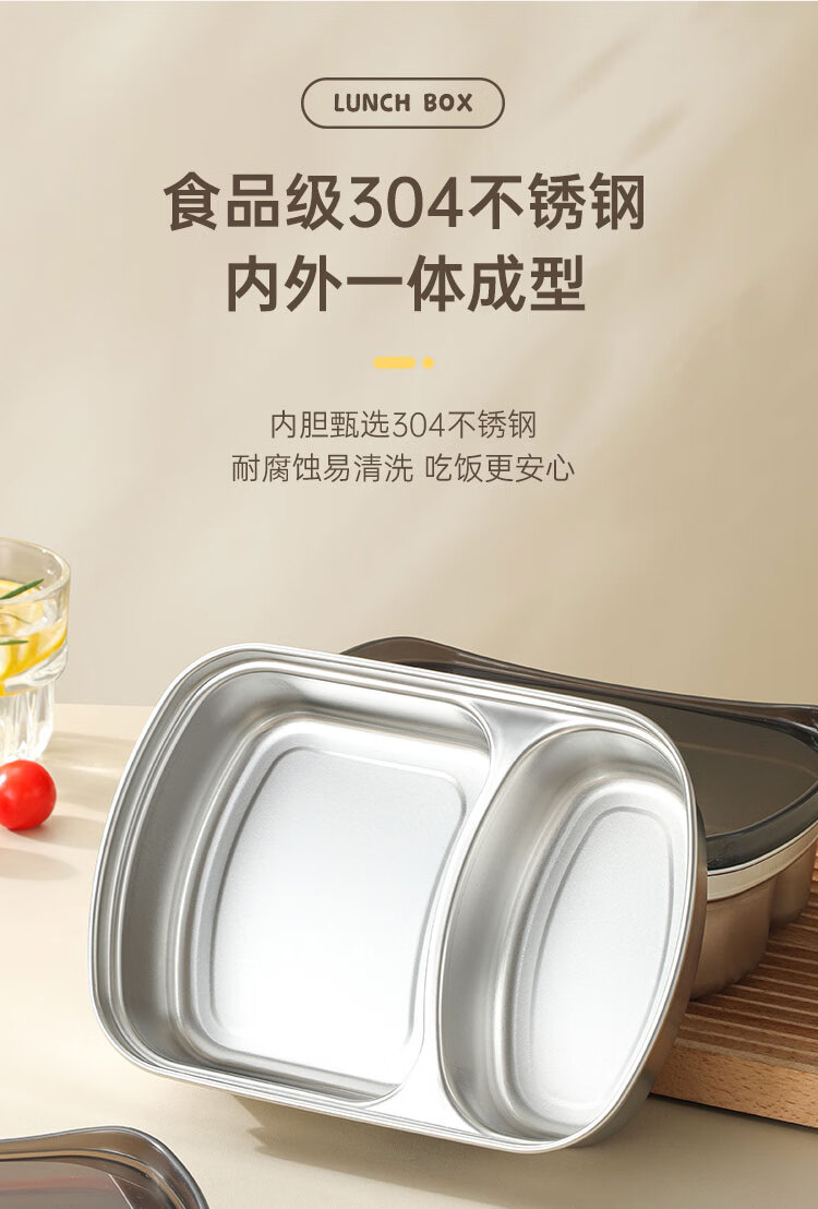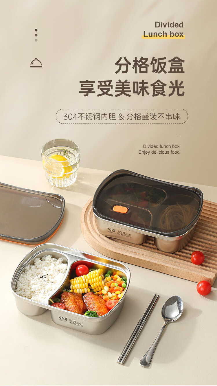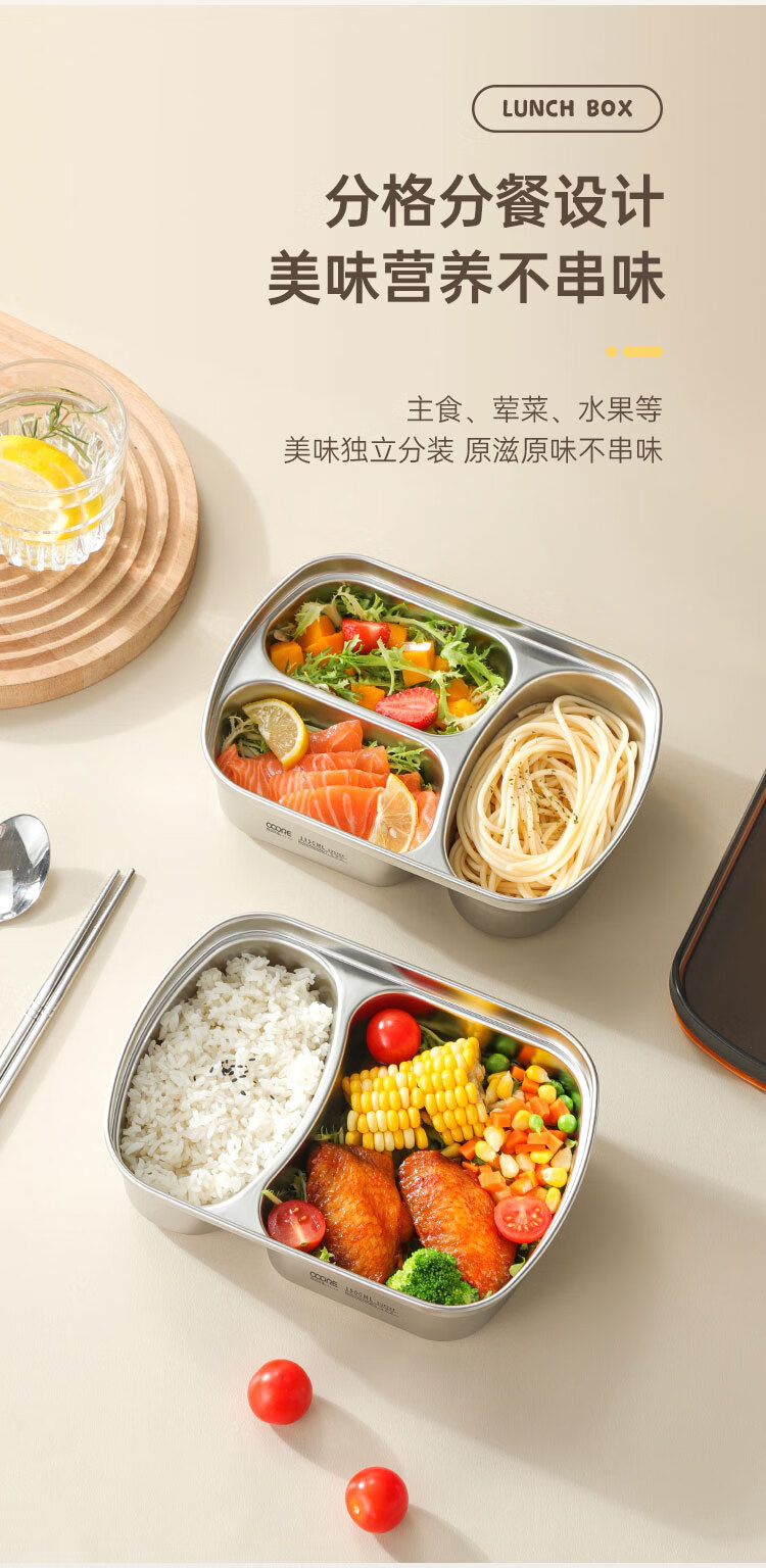 物芯质造304不锈钢保鲜饭盒分格带饭可微波加热上班族便当盒 双格1500ml