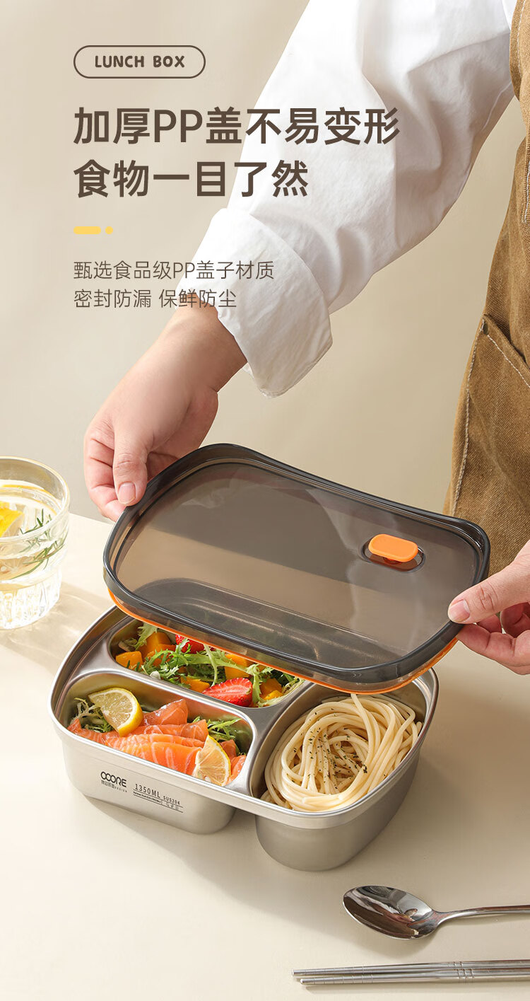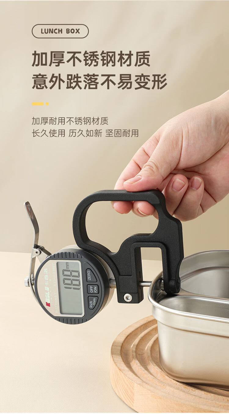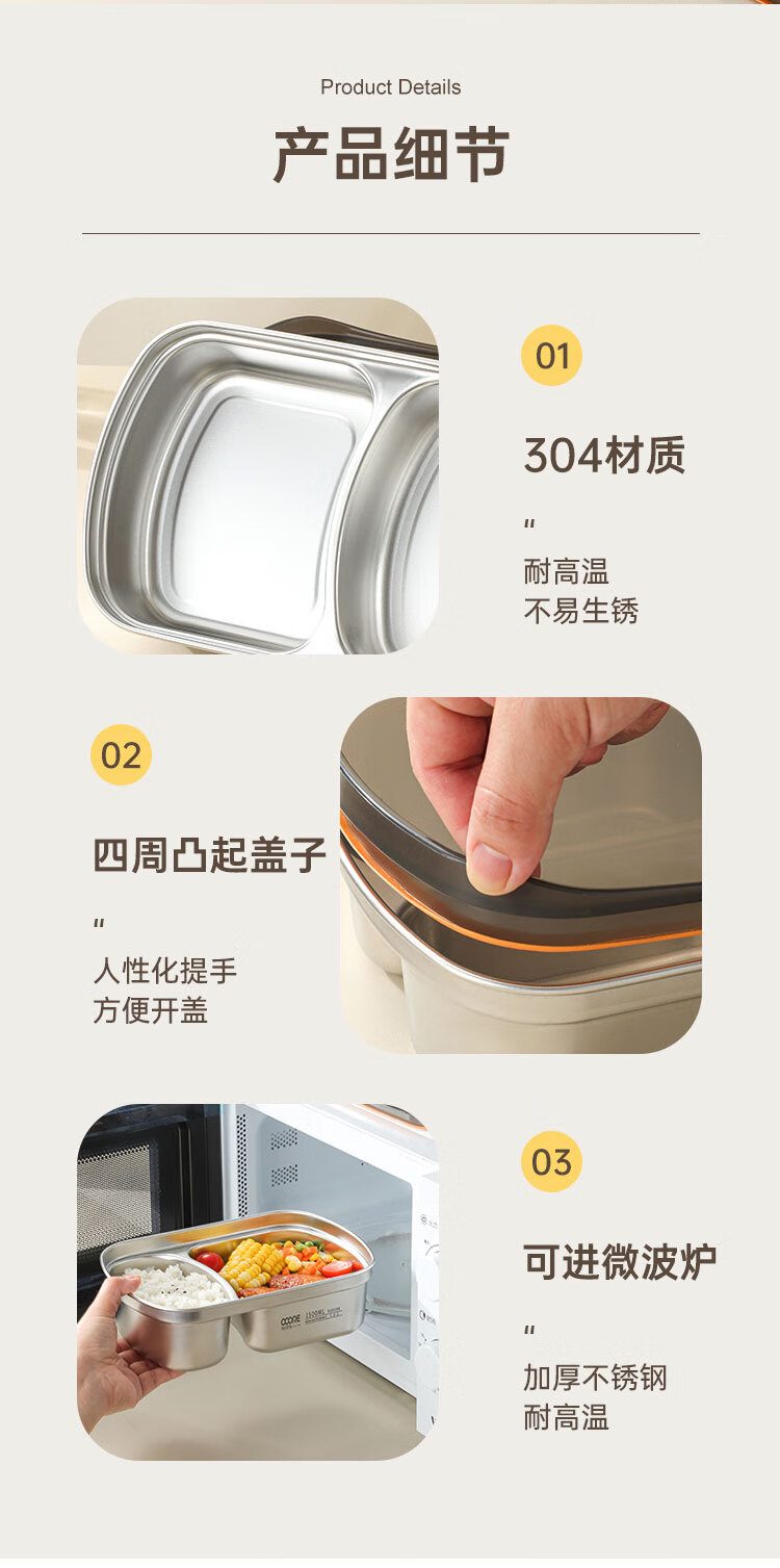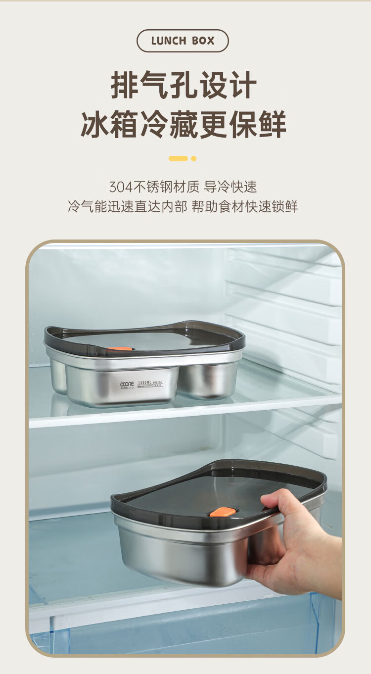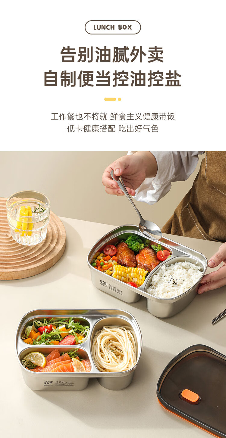 物芯质造304不锈钢保鲜饭盒分格带饭可微波加热上班族便当盒 双格1500ml