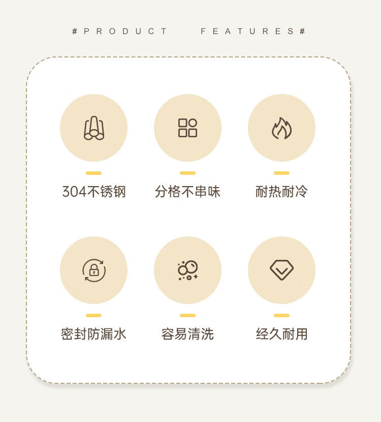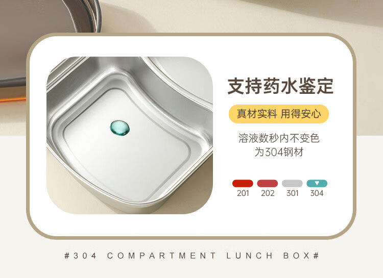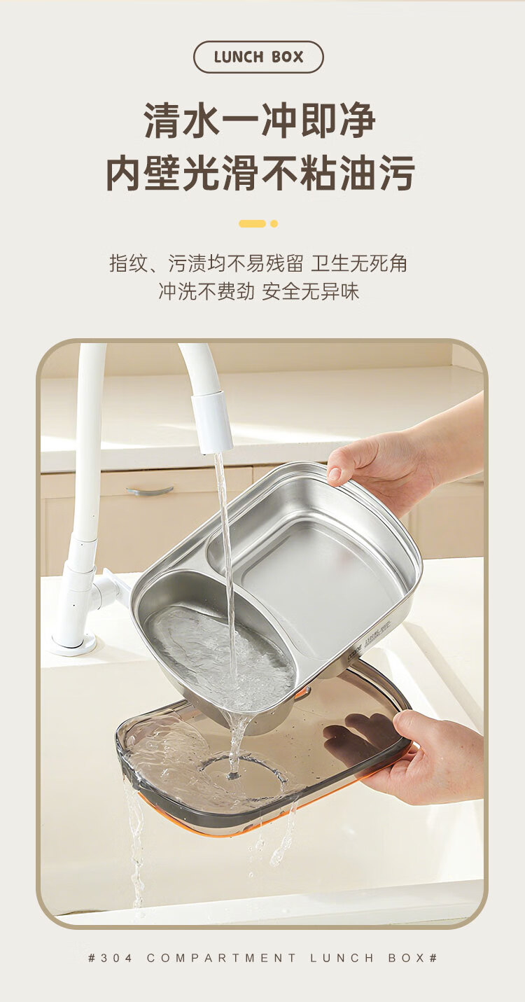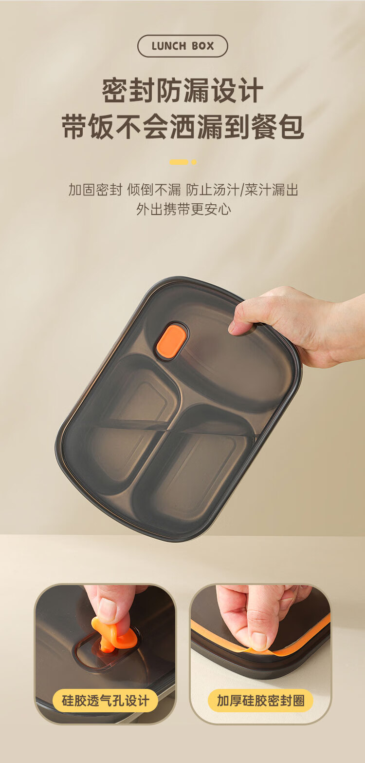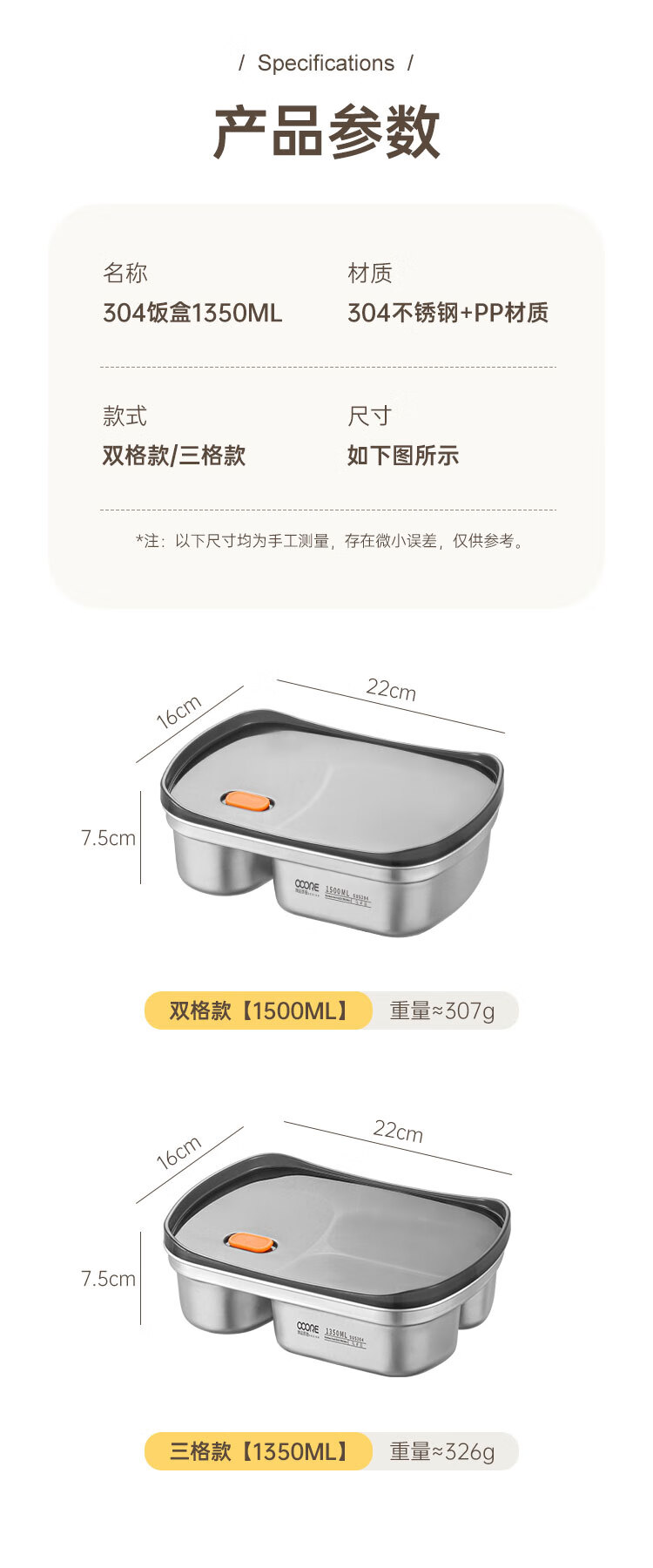 物芯质造304不锈钢保鲜饭盒分格带饭可微波加热上班族便当盒 双格1500ml