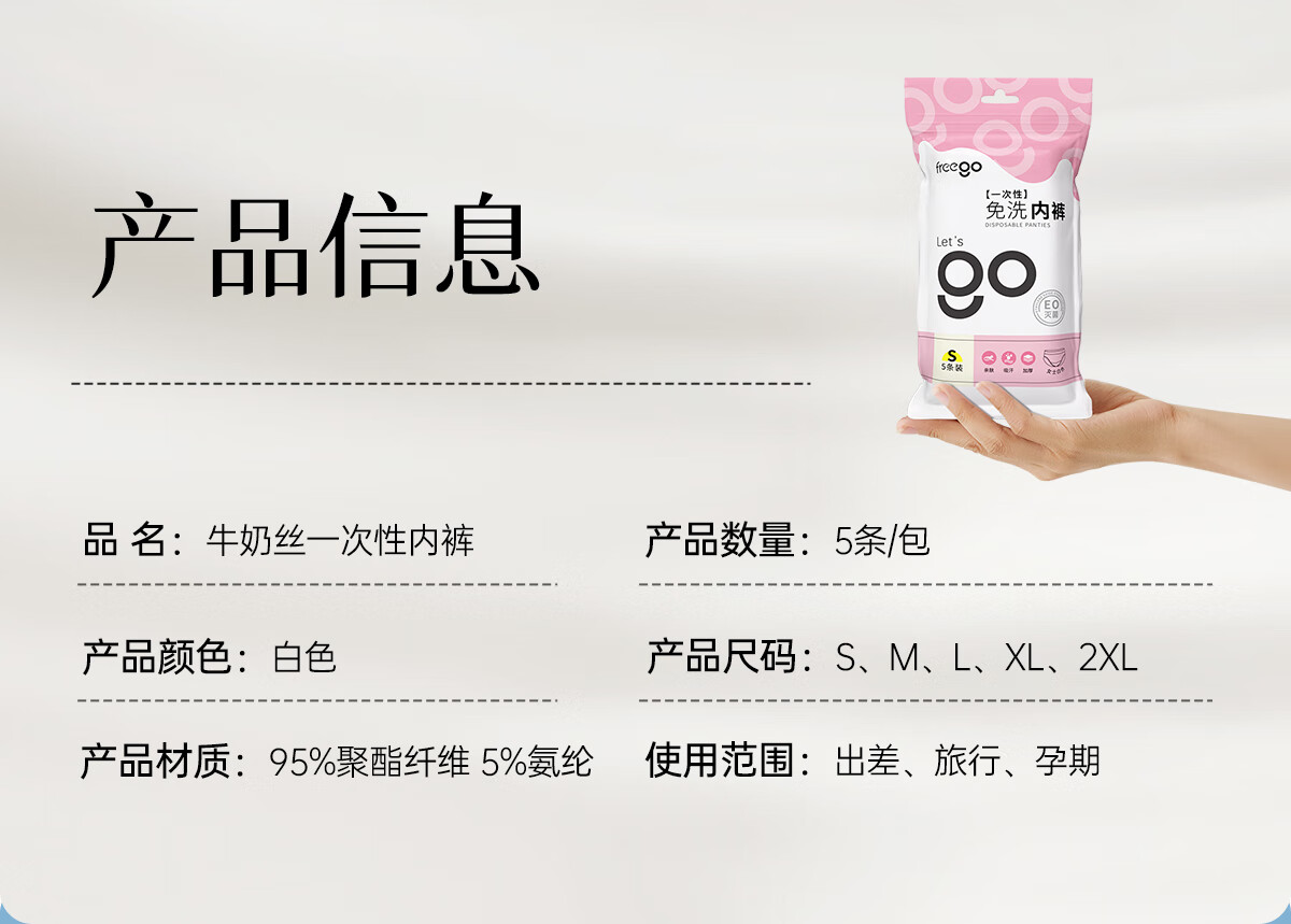 Freego牛奶丝一次性内裤女士灭菌产妇月子透气免洗日抛独立装L码10条装